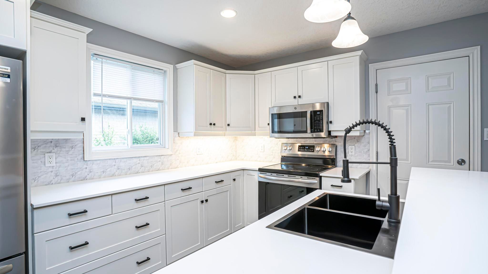 Breakfast Bar Quartz Counter Stainless Steel Appl