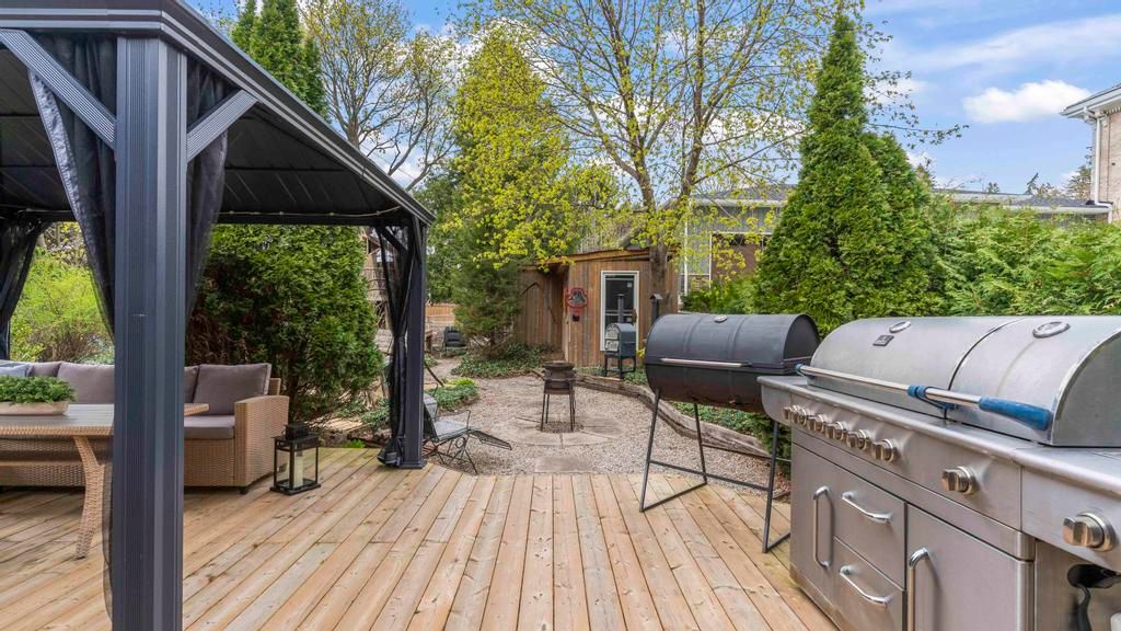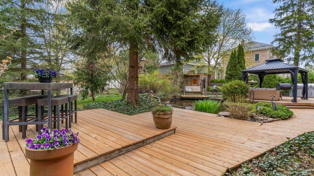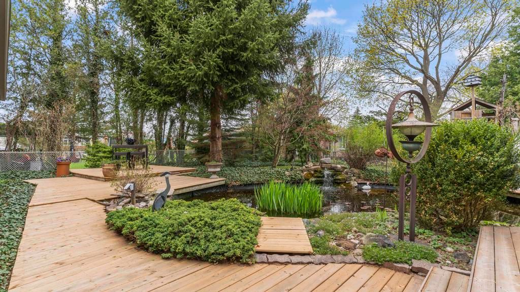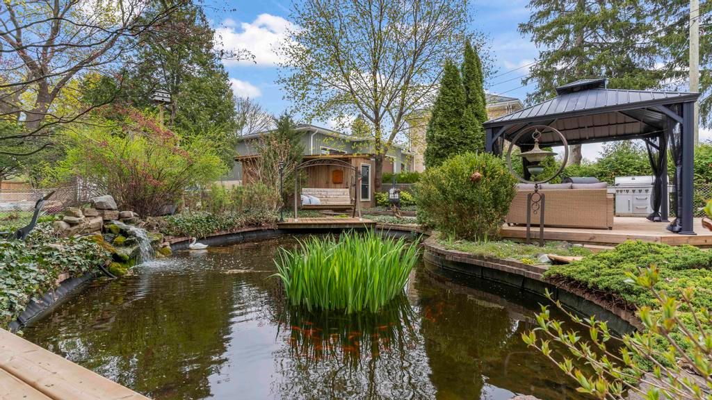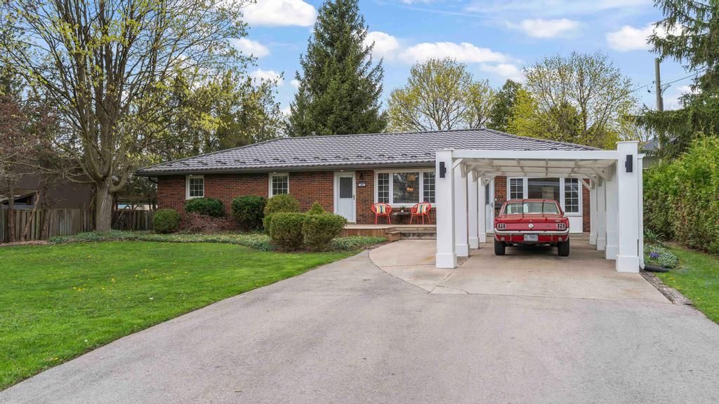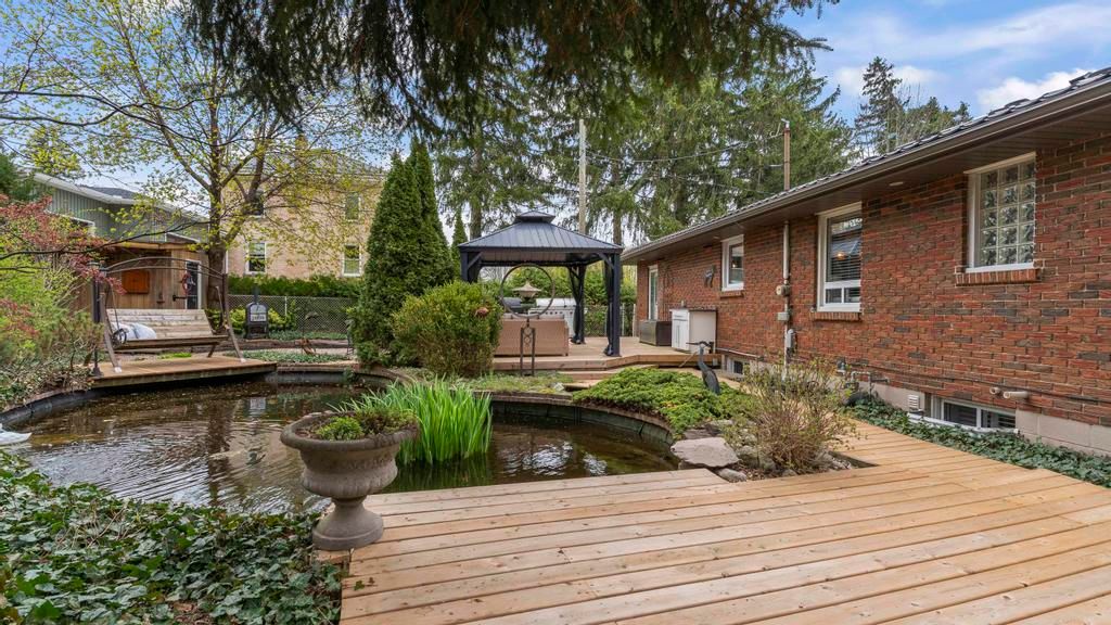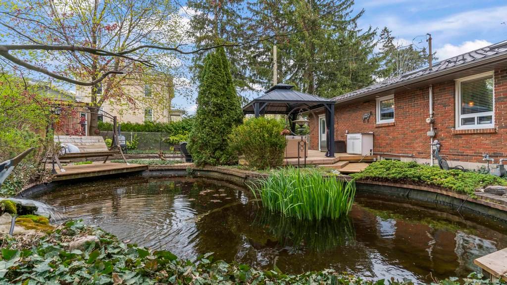 Move right into this beautifully appointed, fully finished 3-bedroom bungalow with 2 full bathrooms, thoughtfully updated inside and out! You'll appreciate the many recent upgrades including: a metal roof, skylights, and a Sono Tube in the bathroom (2022); new decks (2024); quartz countertops in the kitchen; main floor bathroom with tiled shower and heated floors. Step inside and be welcomed by soaring ceilings, a striking brick feature wall, and a bright, open-concept dining/family room with direct access to both the front and backyard spaces. The kitchen offers an abundance of cabinetry and built-in storage, designed to keep everything organized and within reach. This home provides an impressive amount of living space on both the main floor and lower level, with a huge recreation room, hobby room, and additional 3-piece bath in the lower level, plus ample storage throughout.The exterior is just as inviting. The fully fenced backyard boasts a beautiful pond, multiple new decks perfect for entertaining, a large shed, and even a charming playhouse. Enjoy relaxing on the spacious front deck while taking advantage of plenty of parking. Located close to scenic trails, conservation areas, parks, and schools, and just a short drive to London and Highway 401, this is a home that offers both tranquility and convenience. Don't miss the opportunity to make this wonderful property yours. Welcome Home!