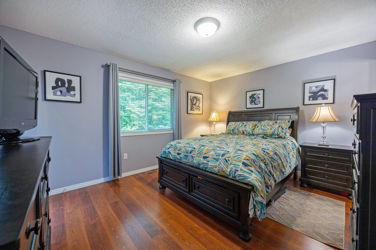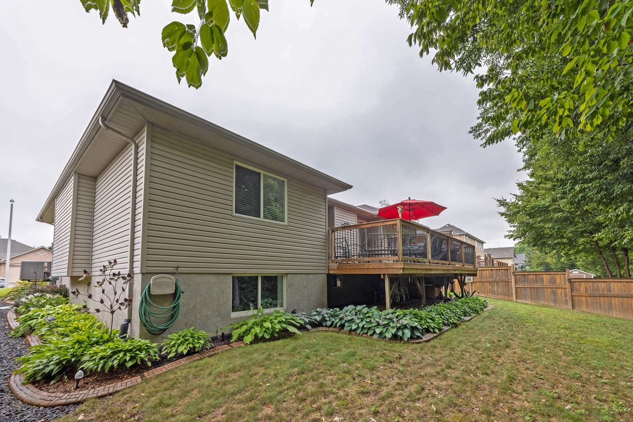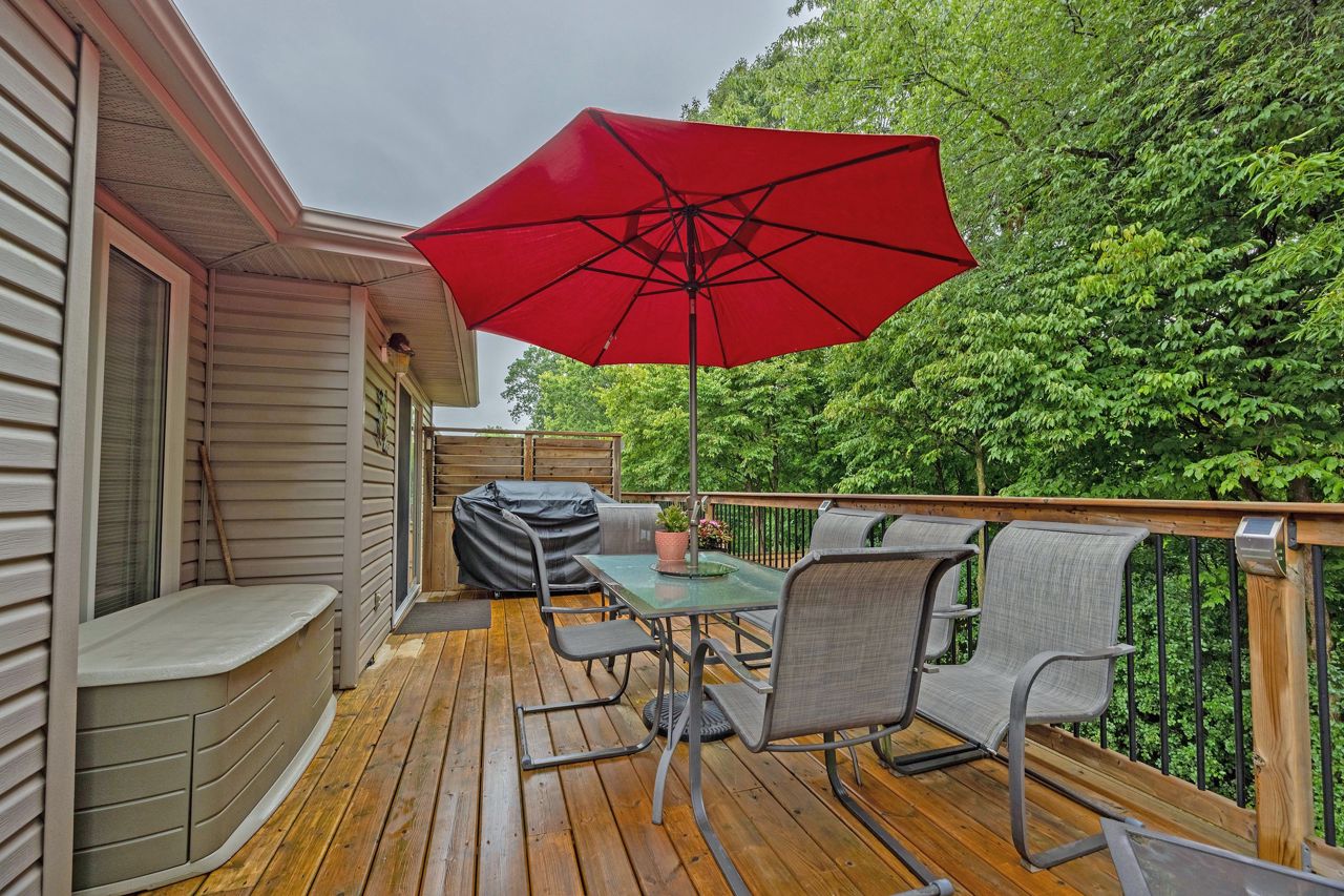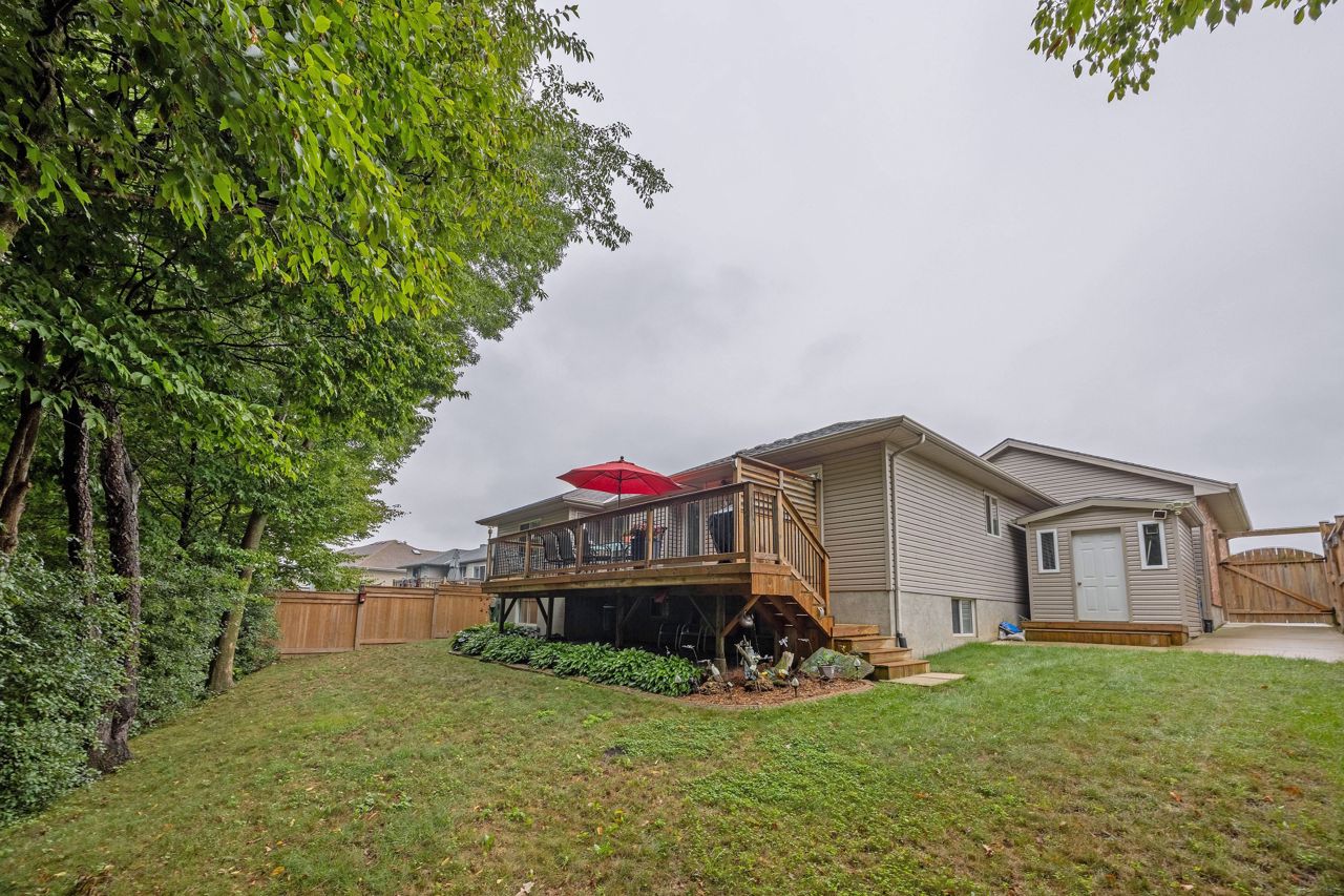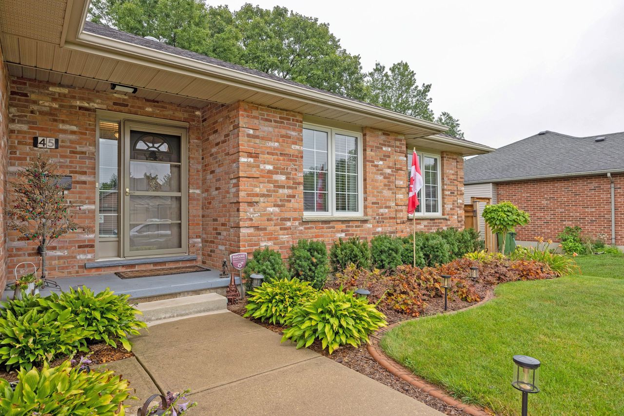 Welcome to 45 McGregor Court, backing onto a peaceful ravine setting on a cul-de-sac. This bungalow has a 2-car attached garage (24'x24' fully insulated) This spacious home boasts the following on the main level (approx 1579 sqft as per MPAC), a large eat-in kitchen (with access to rear deck) with updated quartz countertops which is open to the living room with a gas fireplace, 3 generous bedrooms, the primary bedroom offers a 3pc ensuite and a garden door giving access to the large rear deck (updated deck boards 2019) where you can enjoy the tranquil setting of natures natural beauty, also on the level is the laundry room, 4pc bathroom and 3 sun tunnels (2020). Moving to the lower level, which features the following: Large rec-room, a huge games room with a built-in dart board (stays), pool table with a custom built-in rack (stay), mounted TV in game room (stays), 2pc bathroom, lots of storage and oversized basement windows complete this level. There is an irrigation system for easy lawn maintenance. Additional highlights area furnace and central air (approx 8 years) insulated garage door and openers, shed, a concrete sidewalk along the west side of the home, fencing on both sides of the rear yard, bathroom countertop (main level). The home shows beautifully! Don't miss out!
