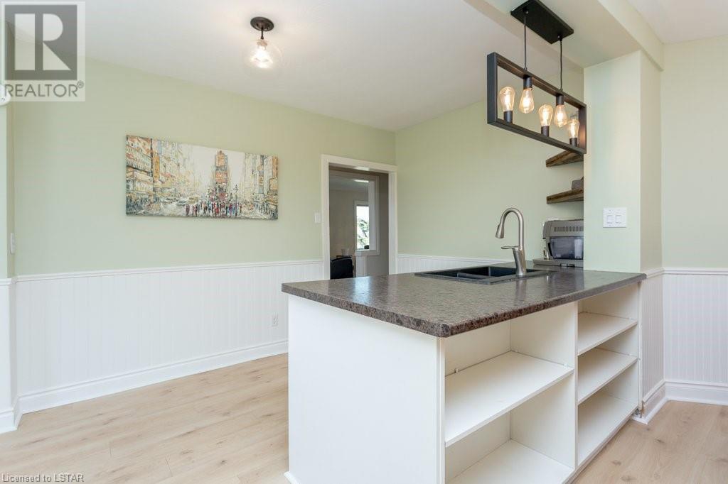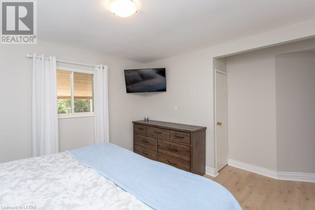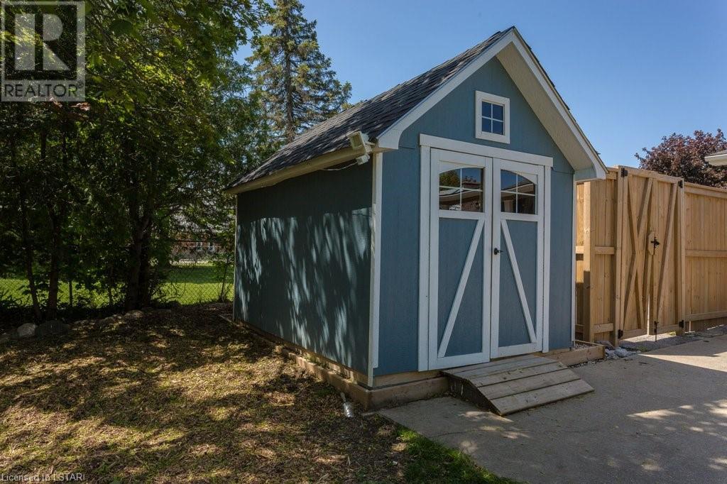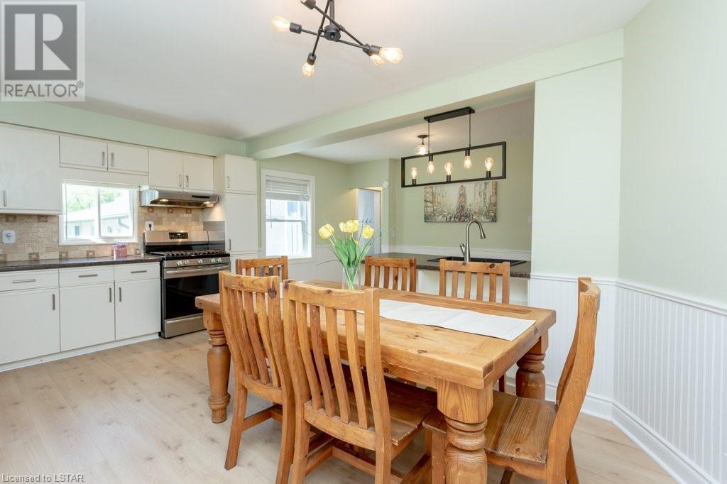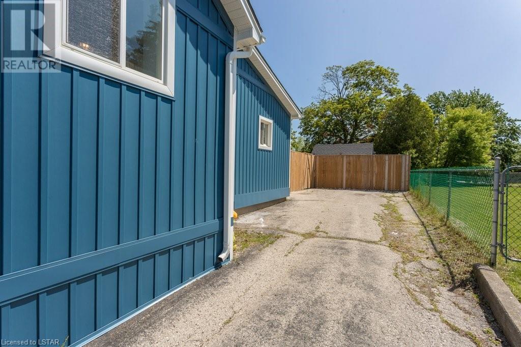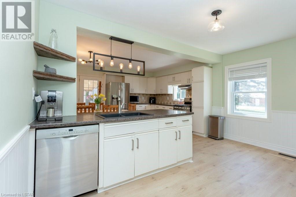 Wonderful 1 and a half storey home in the city of St. Thomas. With 3 beds and 2 full baths. 1 bedroom on the main floor makes this home perfect for a growing family that wants space. This home has curb appeal with landscaped front yard, new board and batten vinyl siding that gives the home a wow factor as you pull into the long driveway that fits approximately 8 vehicles. The main entrance also features a new front porch. Second door on the front of the home leads into a mud room to keep shoes and jackets. Off the mudroom you walk into the open concept kitchen and dining area which has all new flooring. The kitchen includes a peninsula that adds tons of counter space, a dishwasher, double sink, refrigerator with water line, and gas stove. Off the dining area is a coat closet and patio doors that lead onto the covered deck and backyard. The fully fenced yard has lots of space for entertaining and many other activities. There are 2 sheds for storage and a gas line for the BBQ. Just sit out back after a long day and relax. Off the kitchen is a hallway that leads to multiple rooms. First is the main floor bedroom with good sized double closet. Down the hall a bit further is a 3 piece updated bathroom. The last room off the main hallway is the huge living room with new flooring and a gas insert fireplace. On the upper level is 2 bedrooms and a full 3 piece updated bathroom. New flooring and light fixtures in the bedrooms. Lower level has a rec-room and off the rec-room is the laundry room and storage/utility area. The home has been meticulously updated throughout. New paint, flooring, newer windows, newer furnace and central air, newer eavestroughs and shingles. Other updates include a sump pump and spray foam insulation in the lower level. Nothing to do but move in and enjoy for a long time. (id:22211)