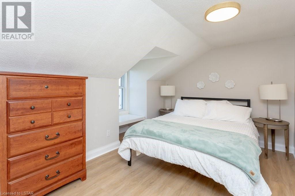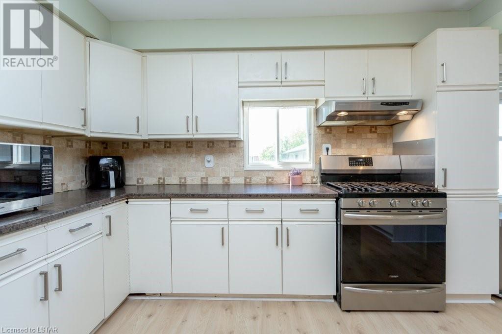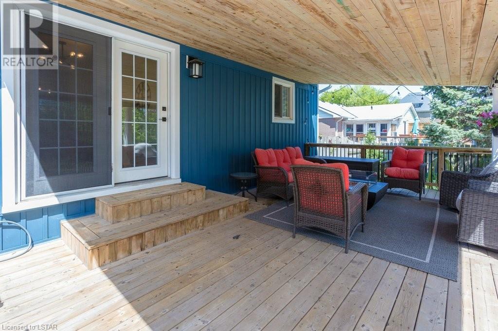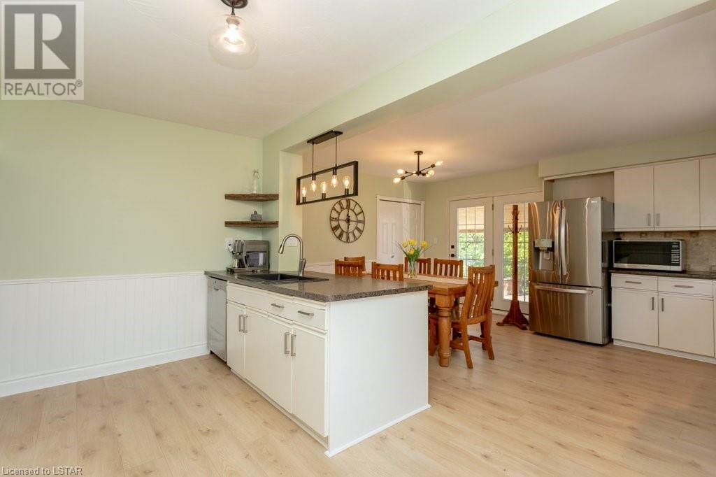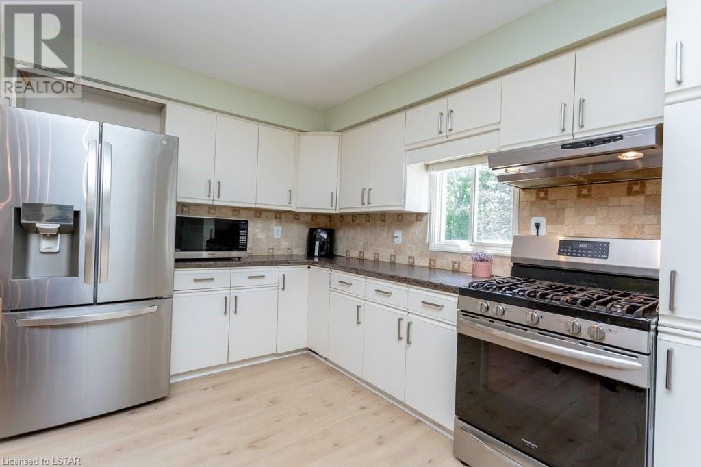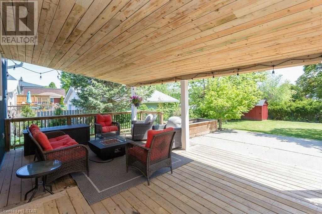 Wonderful 1 and a half storey home in the city of St. Thomas. With 3 beds and 2 full baths. 1 bedroom on the main floor makes this home perfect for a growing family that wants space. This home has curb appeal with landscaped front yard, new board and batten vinyl siding that gives the home a wow factor as you pull into the long driveway that fits approximately 8 vehicles. The main entrance also features a new front porch. Second door on the front of the home leads into a mud room to keep shoes and jackets. Off the mudroom you walk into the open concept kitchen and dining area which has all new flooring. The kitchen includes a peninsula that adds tons of counter space, a dishwasher, double sink, refrigerator with water line, and gas stove. Off the dining area is a coat closet and patio doors that lead onto the covered deck and backyard. The fully fenced yard has lots of space for entertaining and many other activities. There are 2 sheds for storage and a gas line for the BBQ. Just sit out back after a long day and relax. Off the kitchen is a hallway that leads to multiple rooms. First is the main floor bedroom with good sized double closet. Down the hall a bit further is a 3 piece updated bathroom. The last room off the main hallway is the huge living room with new flooring and a gas insert fireplace. On the upper level is 2 bedrooms and a full 3 piece updated bathroom. New flooring and light fixtures in the bedrooms. Lower level has a rec-room and off the rec-room is the laundry room and storage/utility area. The home has been meticulously updated throughout. New paint, flooring, newer windows, newer furnace and central air, newer eavestroughs and shingles. Other updates include a sump pump and spray foam insulation in the lower level. Nothing to do but move in and enjoy for a long time. (id:22211)