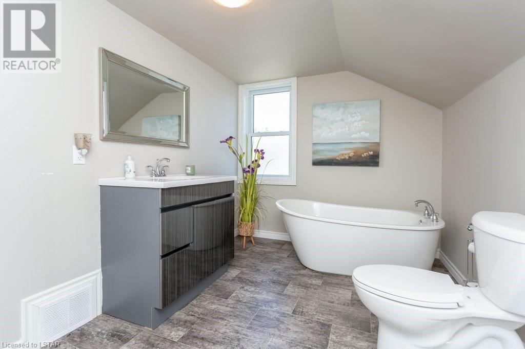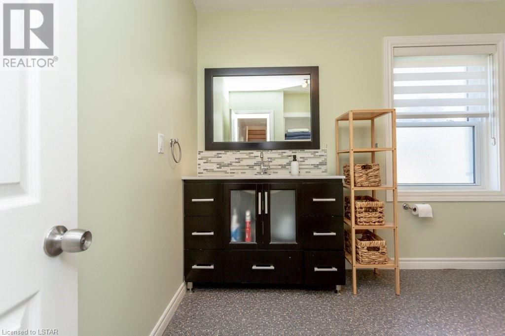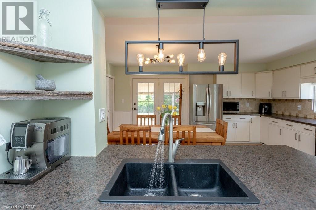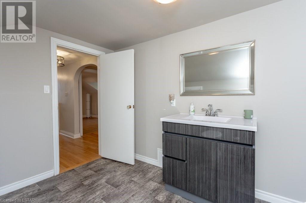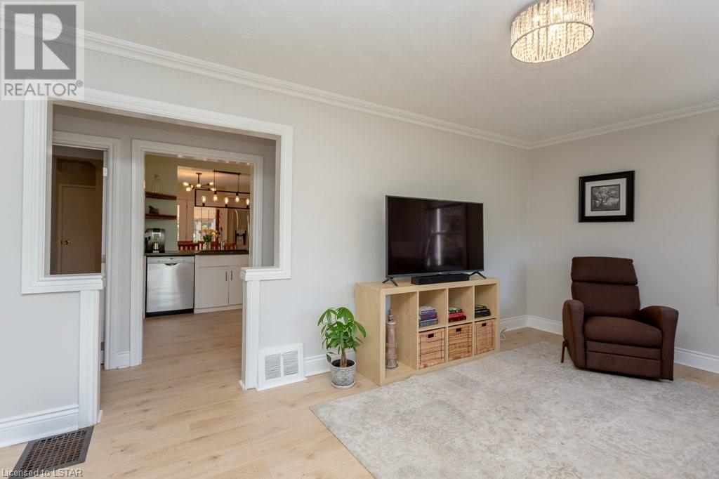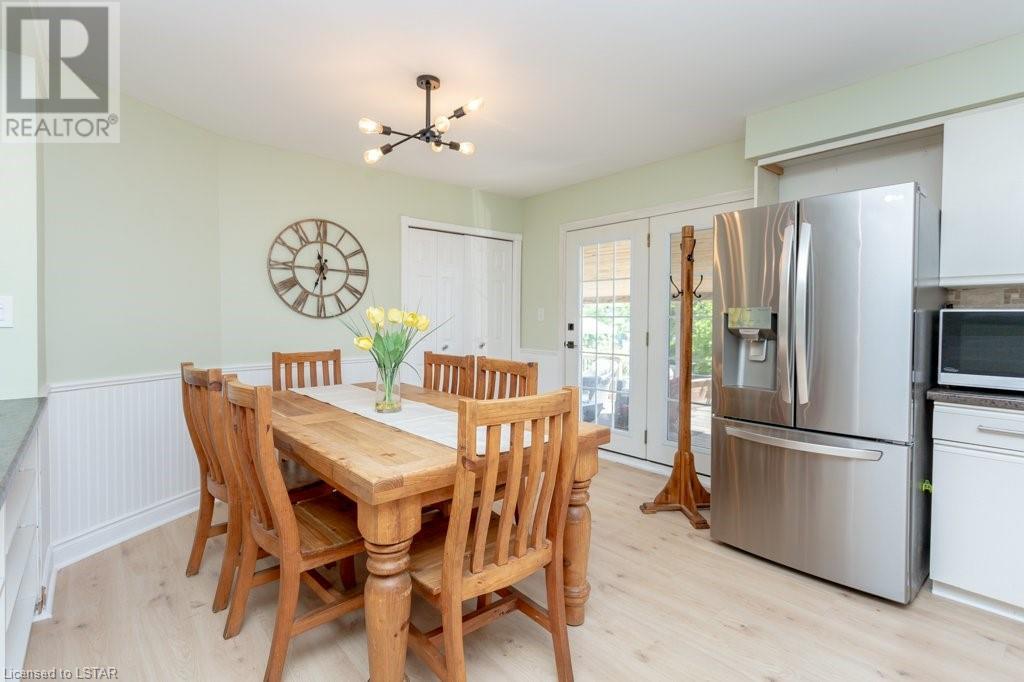 Wonderful 1 and a half storey home in the city of St. Thomas. With 3 beds and 2 full baths. 1 bedroom on the main floor makes this home perfect for a growing family that wants space. This home has curb appeal with landscaped front yard, new board and batten vinyl siding that gives the home a wow factor as you pull into the long driveway that fits approximately 8 vehicles. The main entrance also features a new front porch. Second door on the front of the home leads into a mud room to keep shoes and jackets. Off the mudroom you walk into the open concept kitchen and dining area which has all new flooring. The kitchen includes a peninsula that adds tons of counter space, a dishwasher, double sink, refrigerator with water line, and gas stove. Off the dining area is a coat closet and patio doors that lead onto the covered deck and backyard. The fully fenced yard has lots of space for entertaining and many other activities. There are 2 sheds for storage and a gas line for the BBQ. Just sit out back after a long day and relax. Off the kitchen is a hallway that leads to multiple rooms. First is the main floor bedroom with good sized double closet. Down the hall a bit further is a 3 piece updated bathroom. The last room off the main hallway is the huge living room with new flooring and a gas insert fireplace. On the upper level is 2 bedrooms and a full 3 piece updated bathroom. New flooring and light fixtures in the bedrooms. Lower level has a rec-room and off the rec-room is the laundry room and storage/utility area. The home has been meticulously updated throughout. New paint, flooring, newer windows, newer furnace and central air, newer eavestroughs and shingles. Other updates include a sump pump and spray foam insulation in the lower level. Nothing to do but move in and enjoy for a long time. (id:22211)