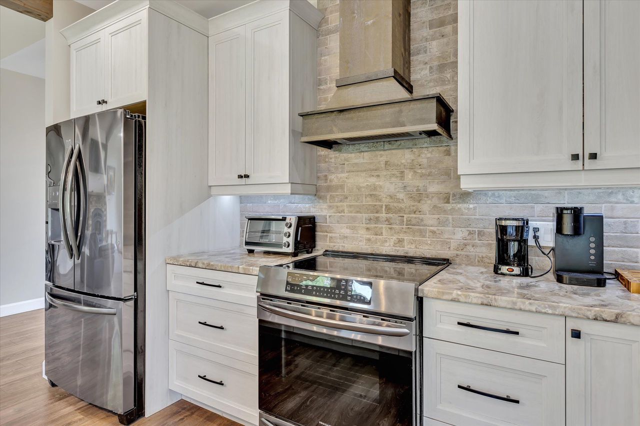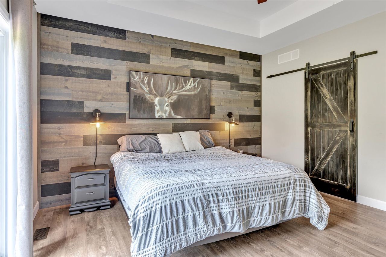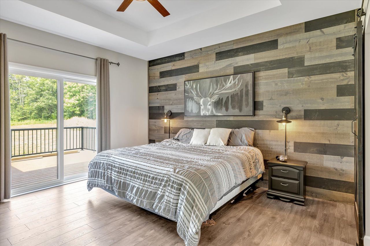 house. Open concept floor plan has vaulted ceilings & beams with a stunning kitchen & center island plus a walkout to the deck to private back yard and is truly a homeowners dream. Primary Bdrm has a coffered ceiling and accent wall with patio doors leading to the back yard & deck and gives you a welcoming bedroom to unwind in. The large walk through