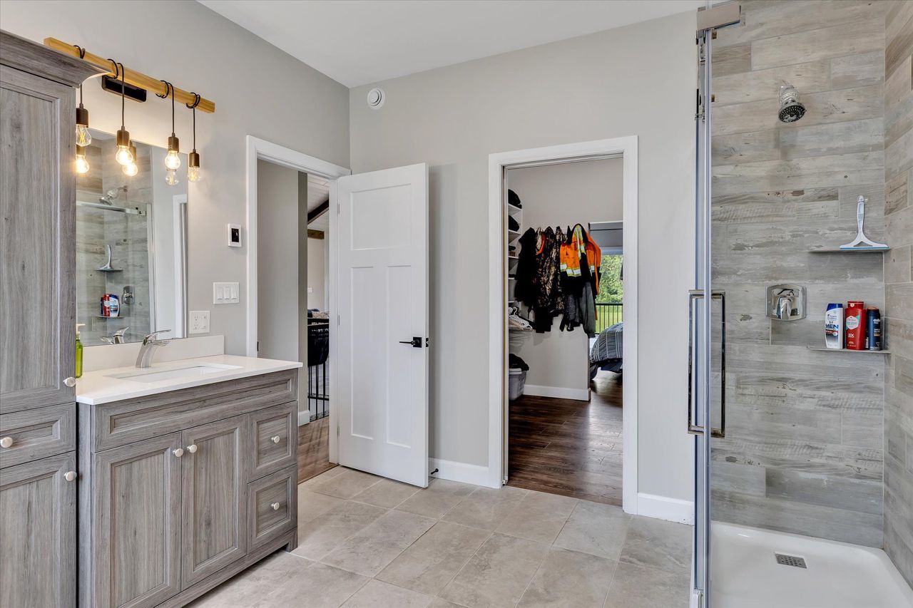 closet leads into the ensuite with heated floors. Basement is insulated and drywalled ready for you to