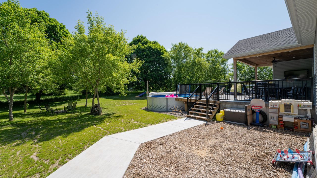 Discover a harmonious blend of elegance and modern design in this impressive 4000 sqft home nestled within the tranquil Centreville. Boasting an attached garage, inviting tiled mud room, open floor plan adorned with warm oak flooring, gold hardware and light fixtures. A stainless steel-equipped kitchen with an island, ample cabinetry and a fabulous pantry, all accompanying a grand living room with a unique ceiling feature. The main level includes a powder washroom, luxurious primary suite with an opulent ensuite bathroom and a walk-in closet. Three more bedrooms and a full bathroom complete the layout. The accessible lower level hosts a vast recreational room, an office that can double as a fifth bedroom, a well-finished washroom, and ample storage space. Set in privacy, enjoy the deck, the above-ground pool and the ample outdoor space - a family's paradise.