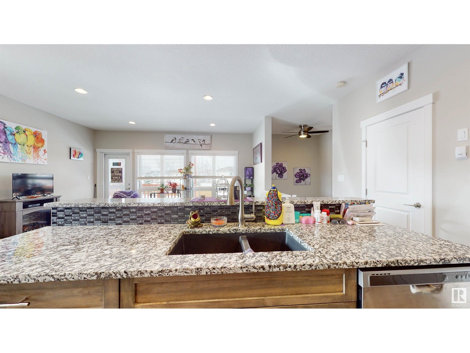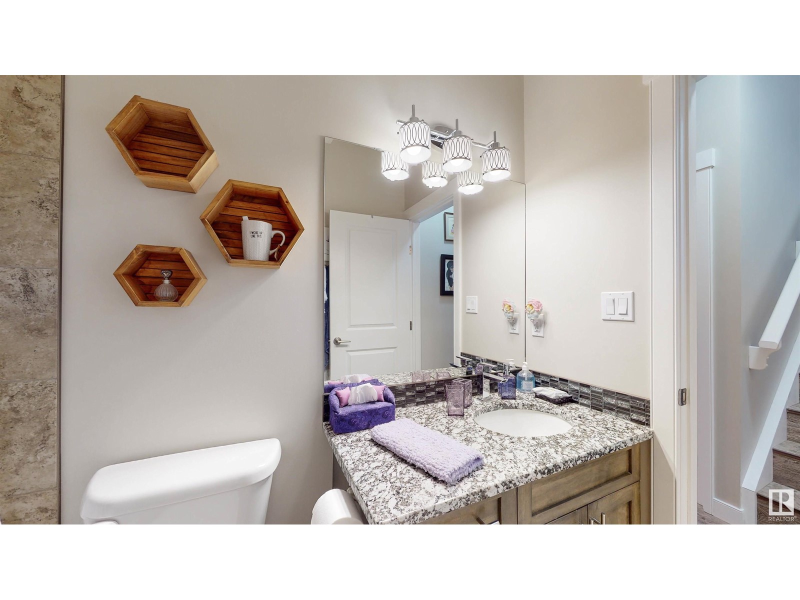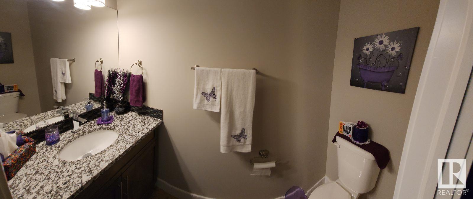 Welcome to Graybriar Greens. Stony Plains modern condos nestled in the community of Graybriar. This home has been meticulously maintained and boasts modern finishing throughout. The kitchen comes with stainless steel appliances, granite counter tops, island with eating area, lots of counter and cupboard space plus a large pantry. The huge wall of windows allows for natural light into the open concept living, dinning and kitchen area. Off the living area is the north facing balcony, to enjoy those beautiful summer Alberta days. Finishing the main floor is the 2-piece bath. The primary bedroom is roomy and comes with a large walk-in closet. Finishing the lower level is the 2nd bedroom and a 4-piece bathroom and the laundry area is conveniently located just steps away. This unit comes with a double carport that has additional built in storage and there are multiple adjacent visitor parking stalls too. Just move in and enjoy (id:22211)