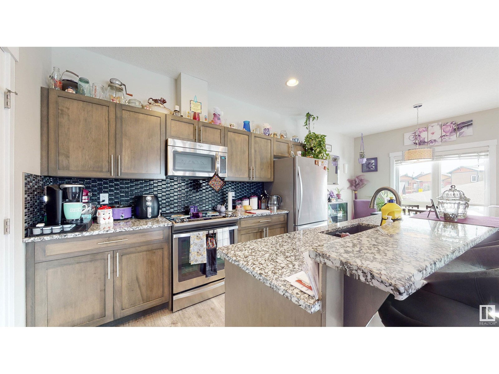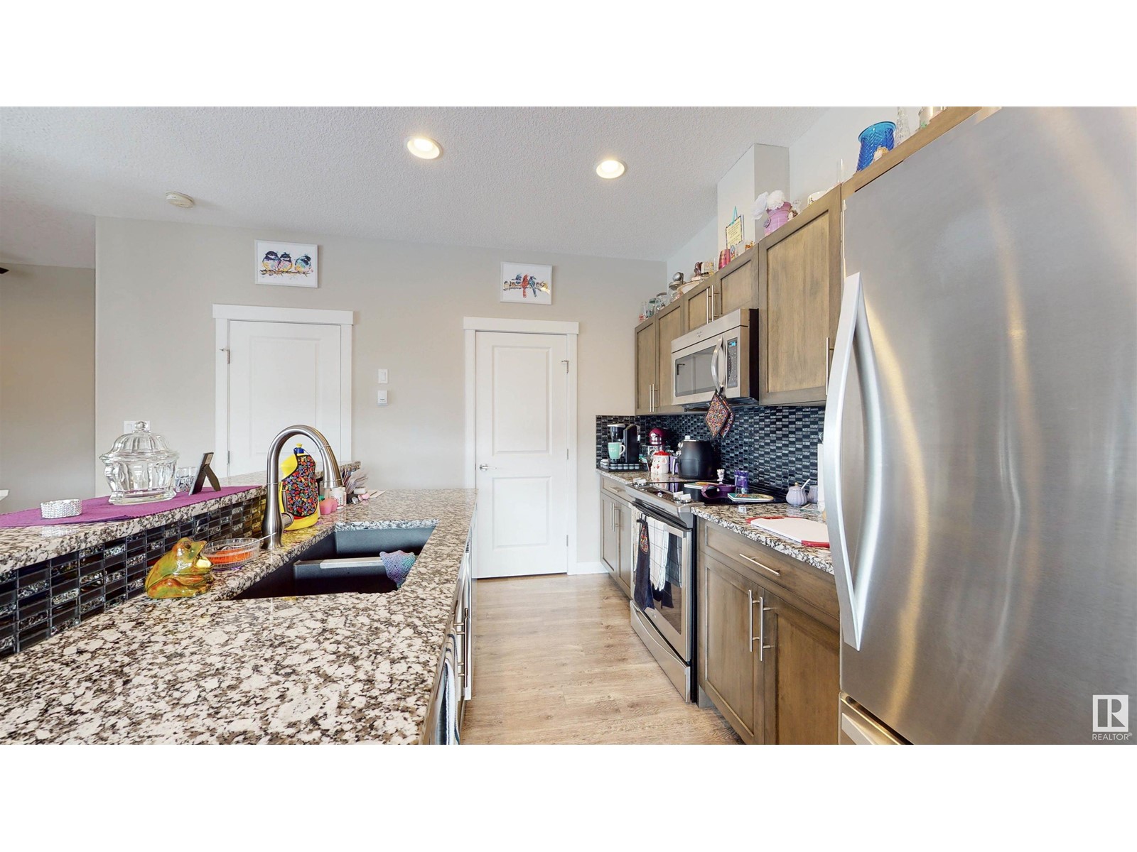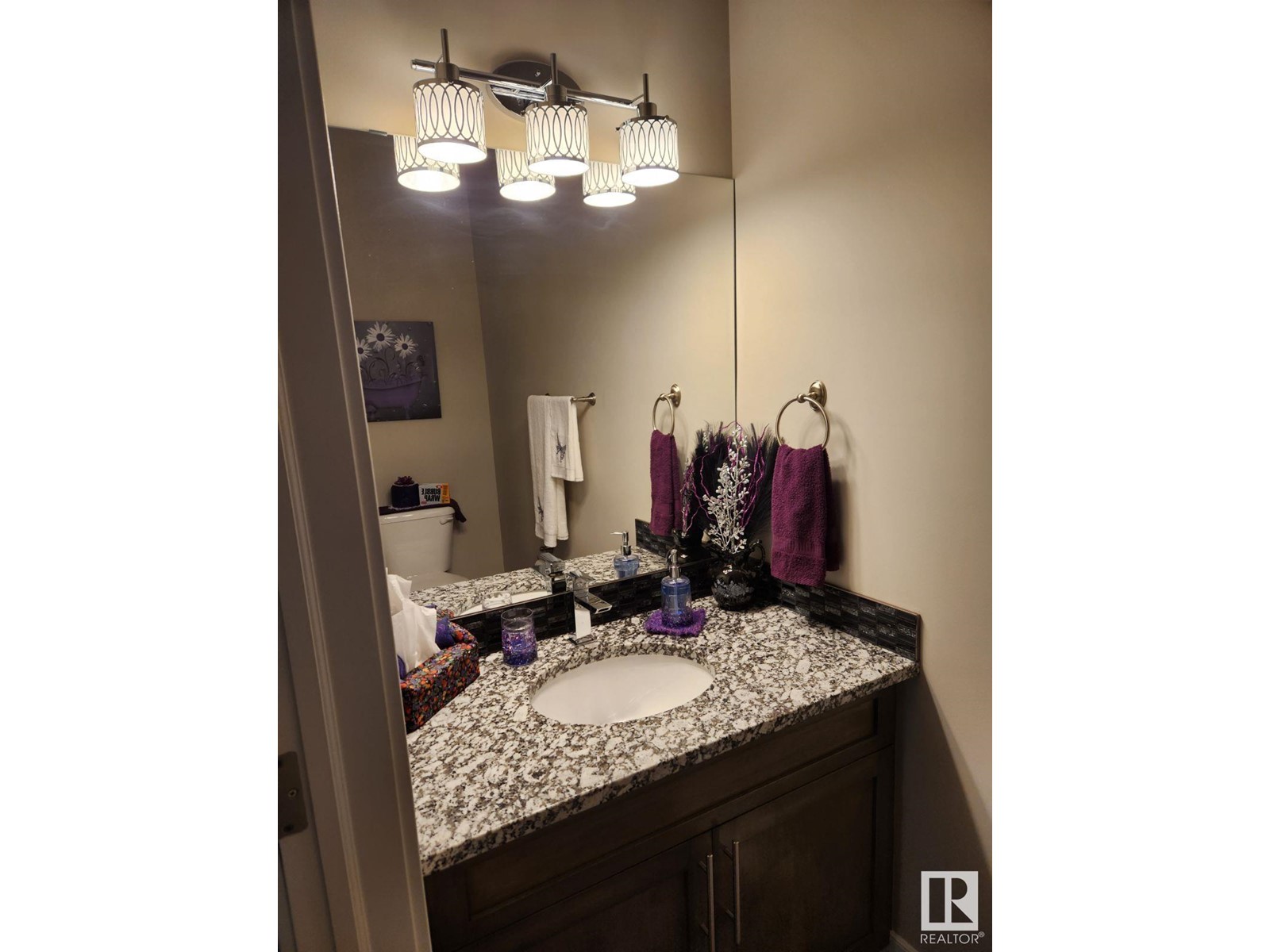 Welcome to Graybriar Greens. Stony Plains modern condos nestled in the community of Graybriar. This home has been meticulously maintained and boasts modern finishing throughout. The kitchen comes with stainless steel appliances, granite counter tops, island with eating area, lots of counter and cupboard space plus a large pantry. The huge wall of windows allows for natural light into the open concept living, dinning and kitchen area. Off the living area is the north facing balcony, to enjoy those beautiful summer Alberta days. Finishing the main floor is the 2-piece bath. The primary bedroom is roomy and comes with a large walk-in closet. Finishing the lower level is the 2nd bedroom and a 4-piece bathroom and the laundry area is conveniently located just steps away. This unit comes with a double carport that has additional built in storage and there are multiple adjacent visitor parking stalls too. Just move in and enjoy (id:22211)