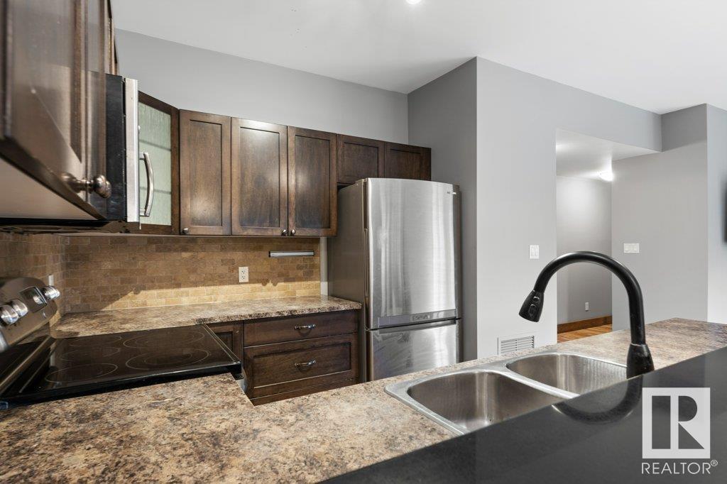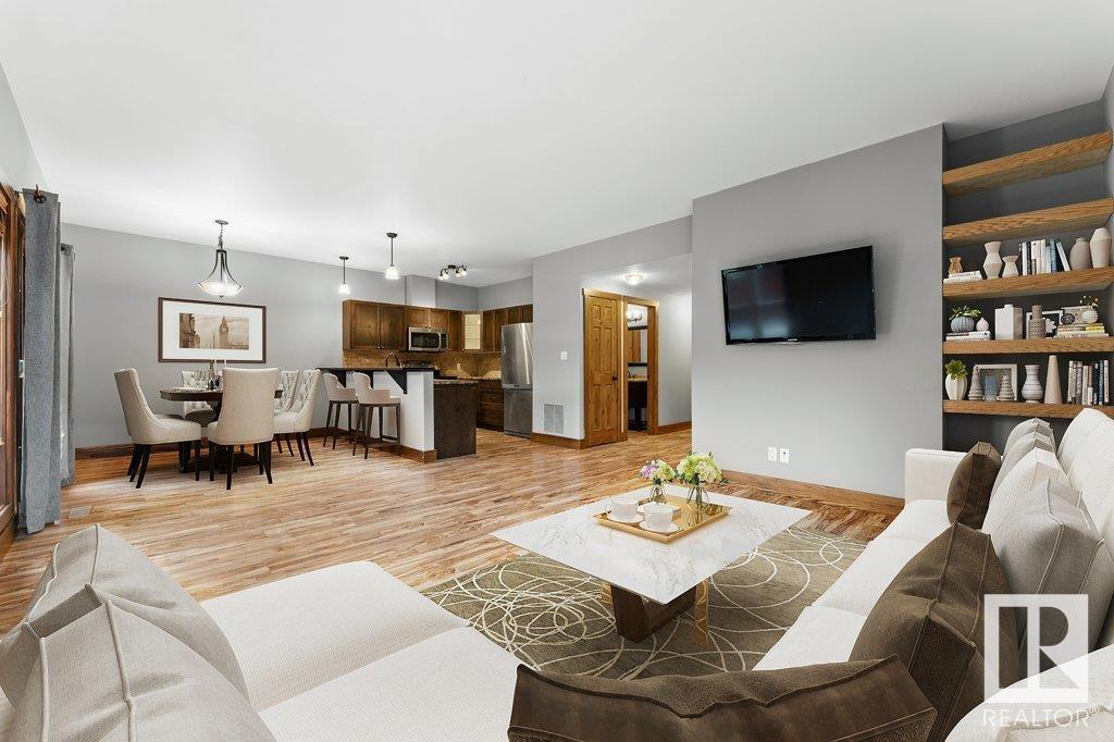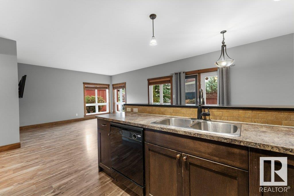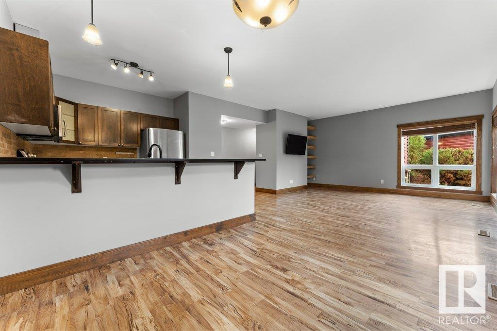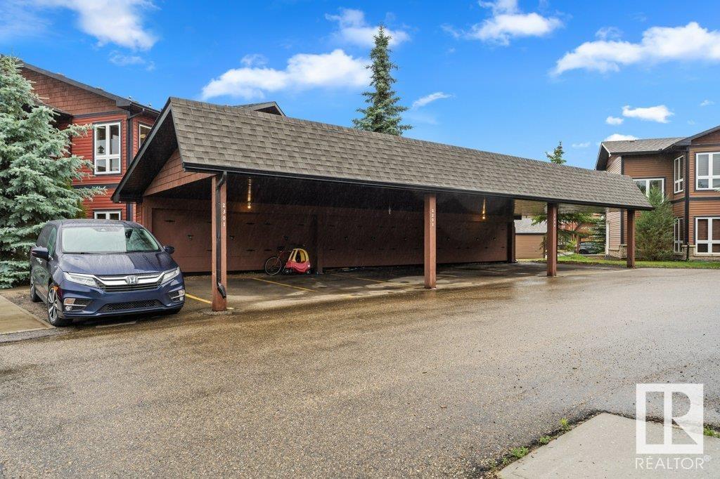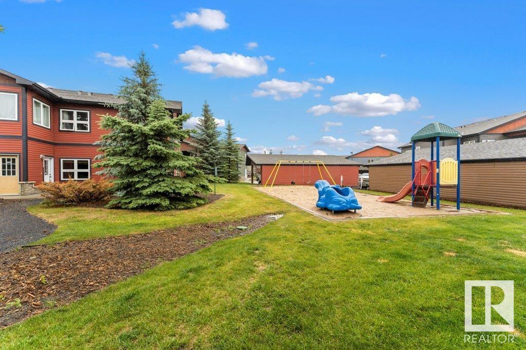 Welcome to the Jasper like setting of Graybriar Greens in Stony Plain! This main floor level bungalow condo is spacious and functional for people with accessibility needs; NO STAIRS! Boasting 1253 sf and 3 beds & 2 baths you won't feel like you're in a condo! Enjoy the beauty of nature with trees surrounding you and the convenience of being steps to the playground! Open concept living space features laminate flooring, granite countertops, stainless steel appliances and room for a dining room table. Bedrooms are all good sizes with updated laminate flooring. Primary suite is spacious and has 4 piece ensuite with ample counterspace. Outside the patio doors is an exposed aggregate patio space, and you have 2 covered parking stalls with storage. Excellent location that is close to the Stony Plain Golf Course, easy access to highway 16a, shopping and the Westview Health Center. *photos are virtually staged* (id:22211)