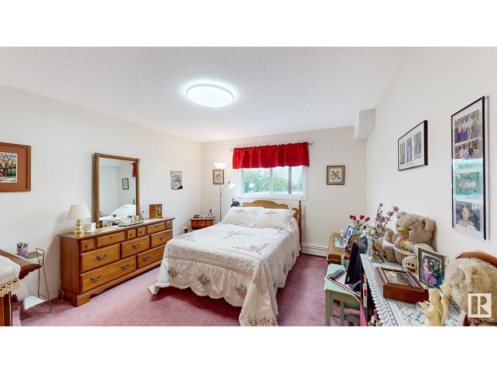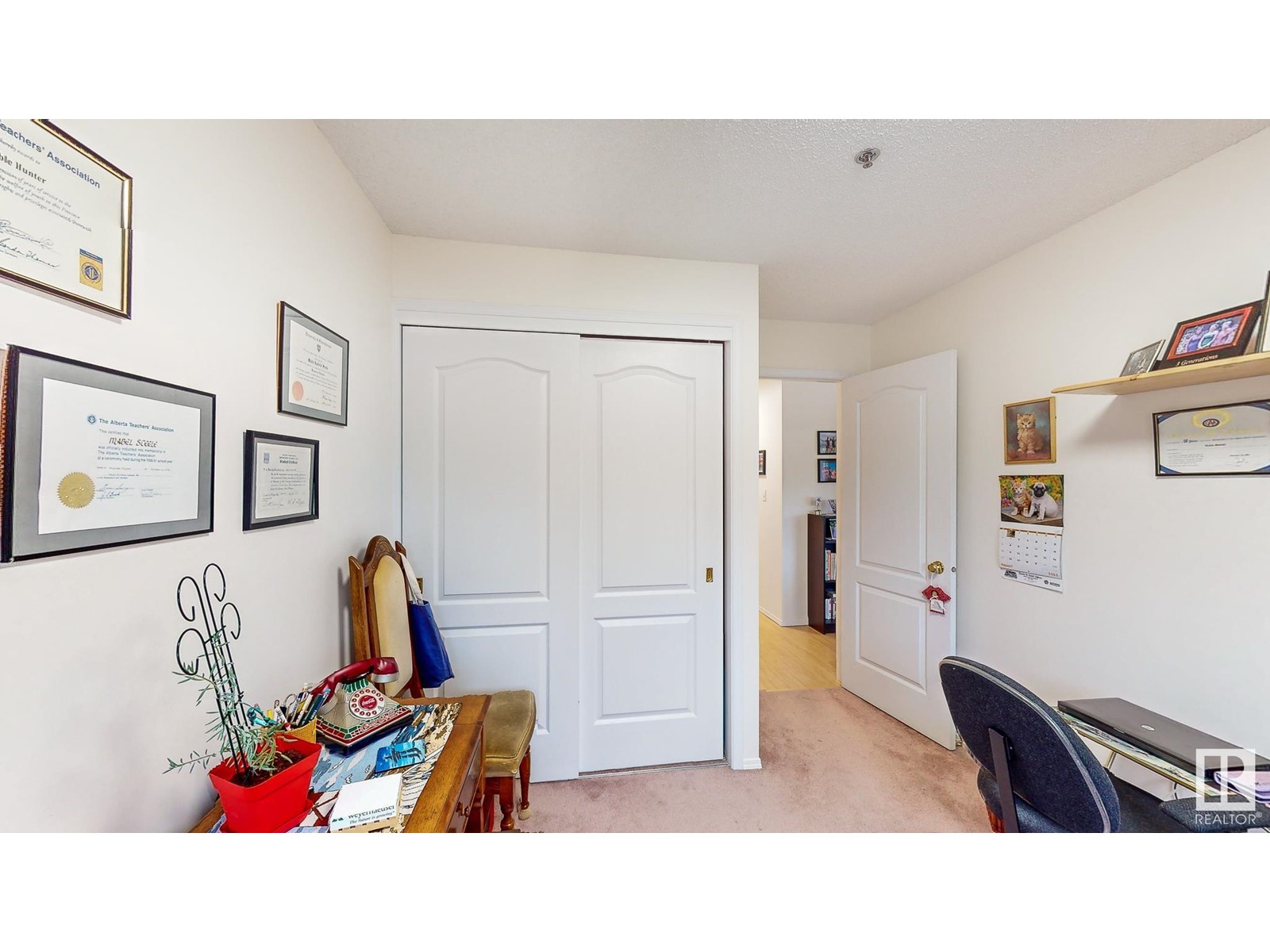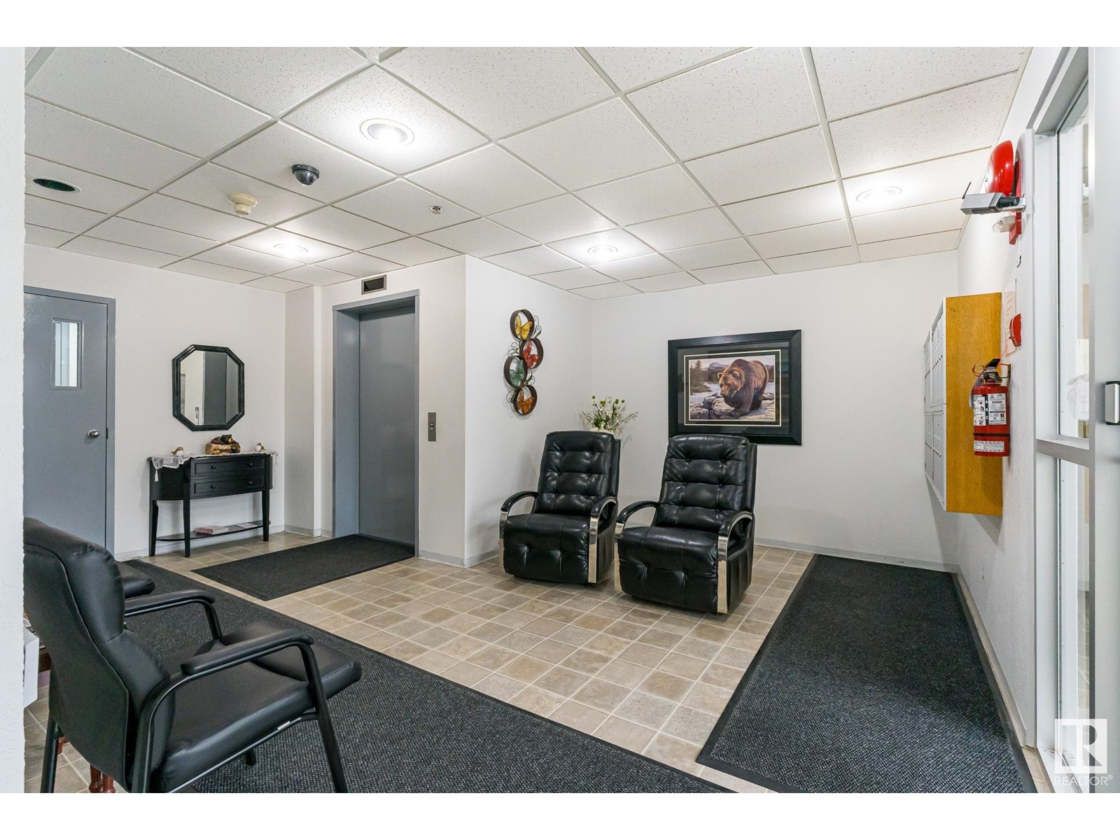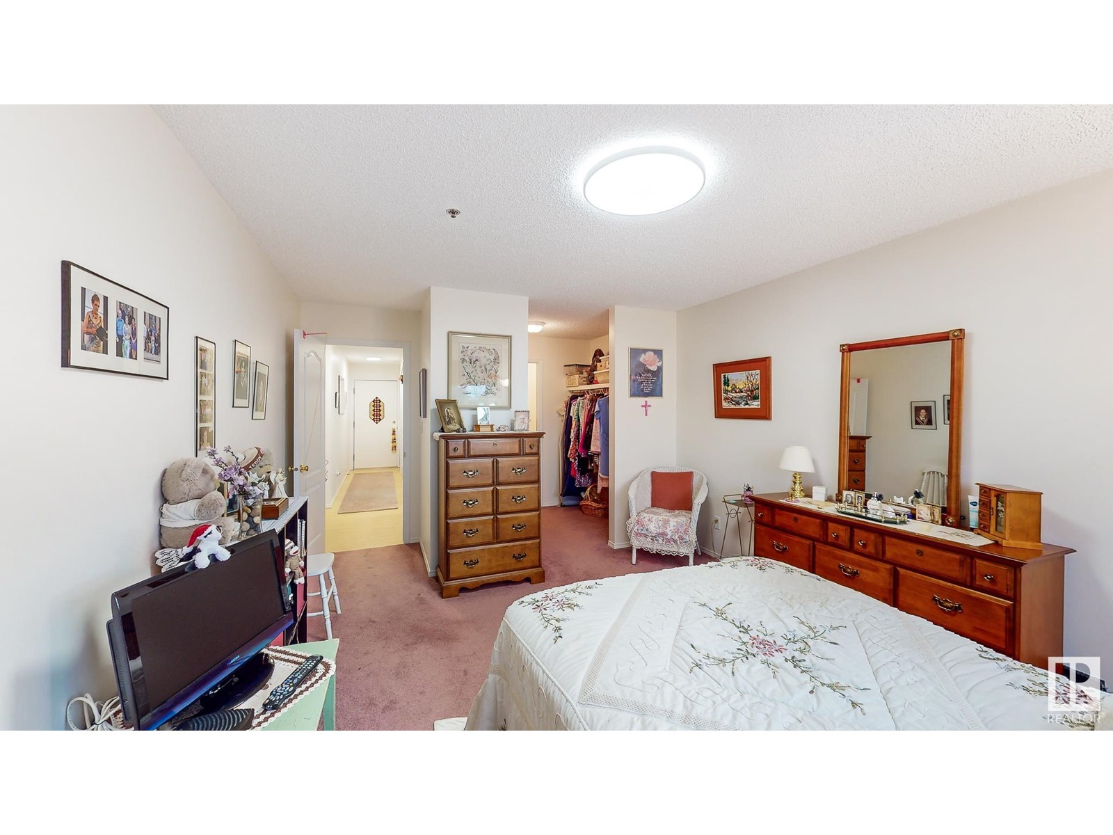 Located in Downtown Stony Plain, this lovely 2 bedroom, 2 bathroom corner unit w/ AC is move in ready. Elevator access to the unit. Over 1080 sq ft, corner unit with a South Exposure. Open kitchen with ample cupboards and counter space overlooks the dining area. Plenty of room for a full dining table. Patio Doors lead to the wrap around deck. Roomy living room with tons of natural light streaming in. Second garden door entry to the other side of the deck. Master Bedroom has walk through closet and 2 piece powder room. 2nd bedroom doubles as a den. In-suite laundry and portable dishwasher. Full Four piece bathroom. This extremely clean unit has neutral tones and laminate flooring in the main living space. Storage unit is located on the balcony. 1 Underground Heated Parking stall. Walk to all services from this prime location. Condo Fees are $430 and include: water/sewer/reserve fund/parking/insurance. Fairhaven Place is a well established, safe, 55+ condominium that has a great communit (id:22211)