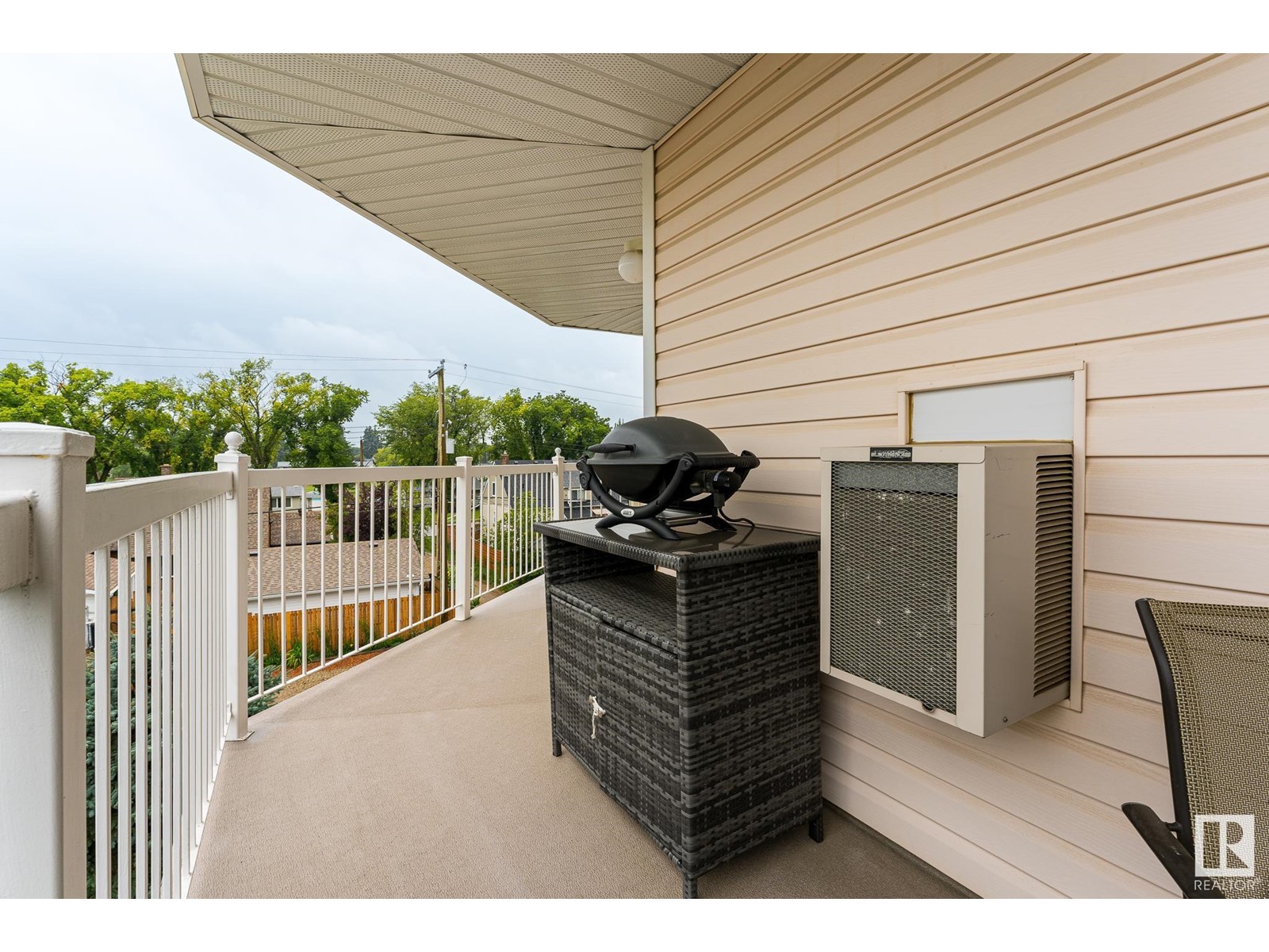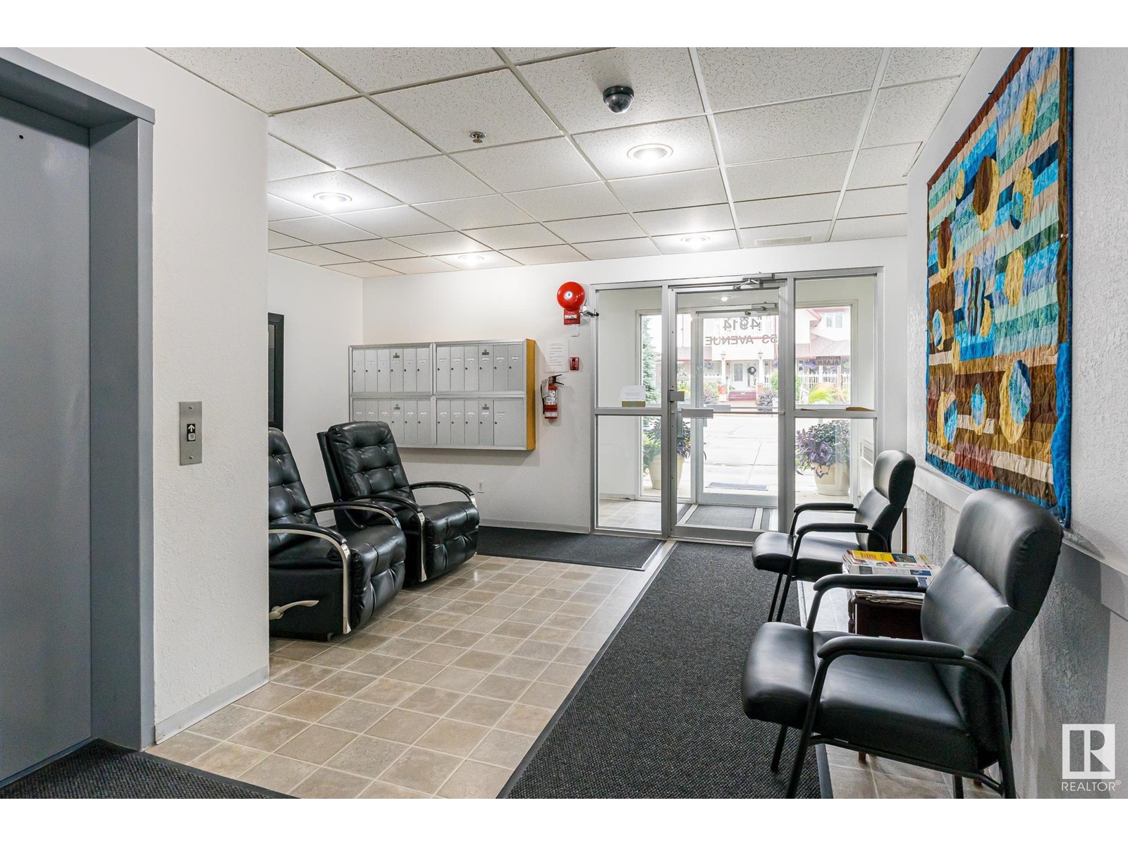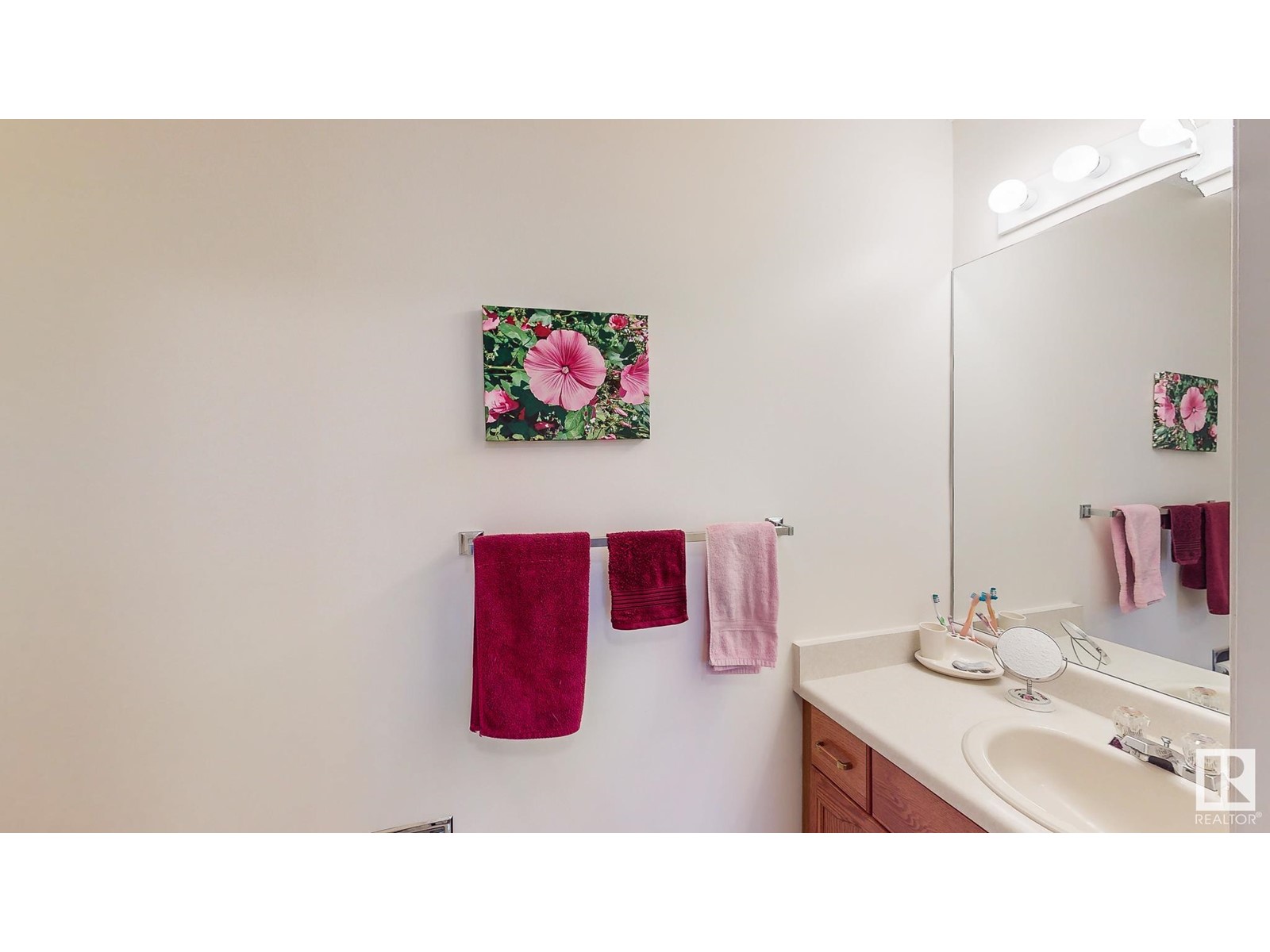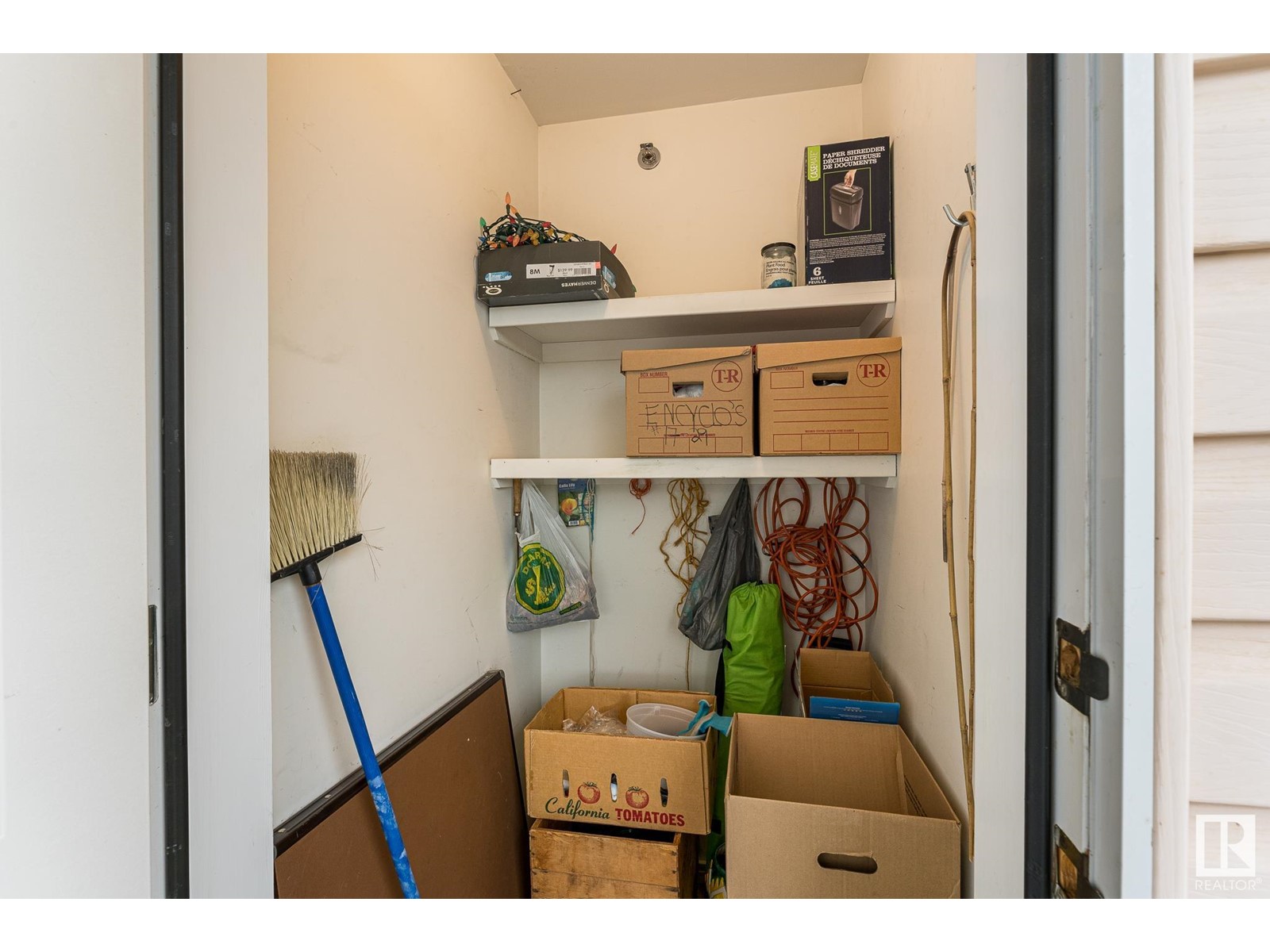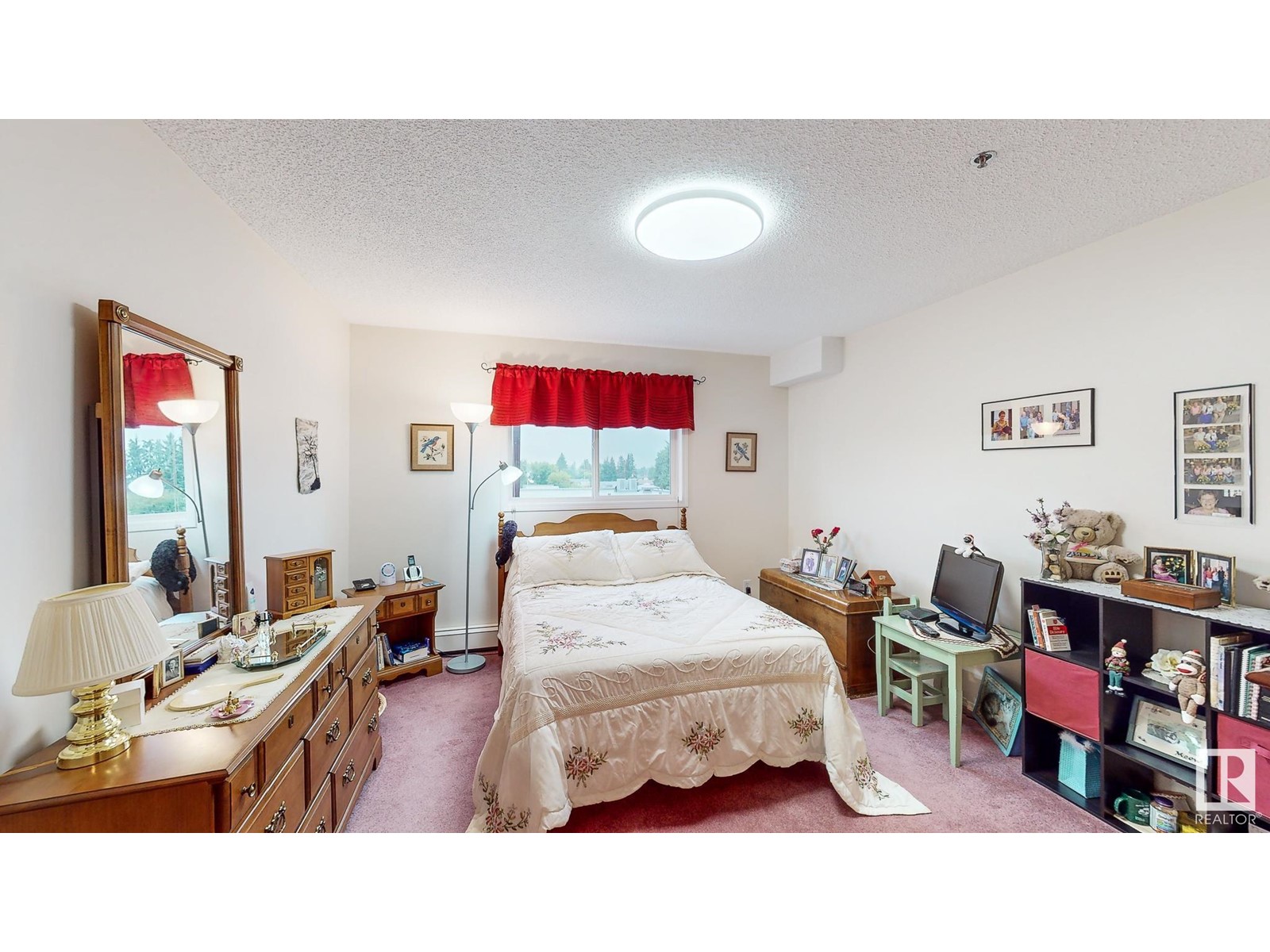 Located in Downtown Stony Plain, this lovely 2 bedroom, 2 bathroom corner unit w/ AC is move in ready. Elevator access to the unit. Over 1080 sq ft, corner unit with a South Exposure. Open kitchen with ample cupboards and counter space overlooks the dining area. Plenty of room for a full dining table. Patio Doors lead to the wrap around deck. Roomy living room with tons of natural light streaming in. Second garden door entry to the other side of the deck. Master Bedroom has walk through closet and 2 piece powder room. 2nd bedroom doubles as a den. In-suite laundry and portable dishwasher. Full Four piece bathroom. This extremely clean unit has neutral tones and laminate flooring in the main living space. Storage unit is located on the balcony. 1 Underground Heated Parking stall. Walk to all services from this prime location. Condo Fees are $430 and include: water/sewer/reserve fund/parking/insurance. Fairhaven Place is a well established, safe, 55+ condominium that has a great communit (id:22211)