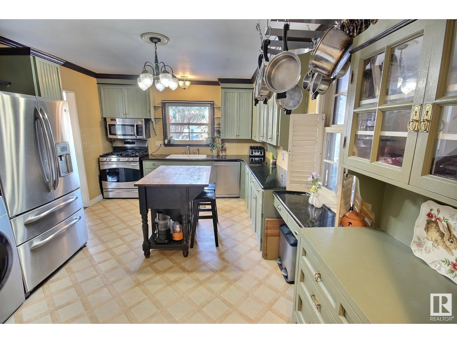 Perched on a lot that is just shy of 1/4 acre in the heart of Stony Plain, this property is truly one of a kind. Boasting 3 bedrooms, 2 full baths, kitchen with updated cabinets, granite & high end stainless appliances, family room with wood stove, formal dining room & flex room. Basement has big windows and could be fully developed to suit your needs. Renovations to update the home to todays standards and maintain the character and charm of the past include literally everything from electrical, plumbing, insulation, drywall, architectural shingles, eaves, downspouts, R50 attic insulation, 24x24 finished & heated garage, GAS line to deck and stove, flooring, bathroom fixtures & hardware, hot water tank, black top driveway, modern wood burning stove, professional screening of patios, insulation and sump pump in crawl space, exceptional landscaping with ponds, Victorian lighting and GFCI outlets for all your seasonal decorating. Everything you didn't know you needed, come see your new home today. (id:22211)