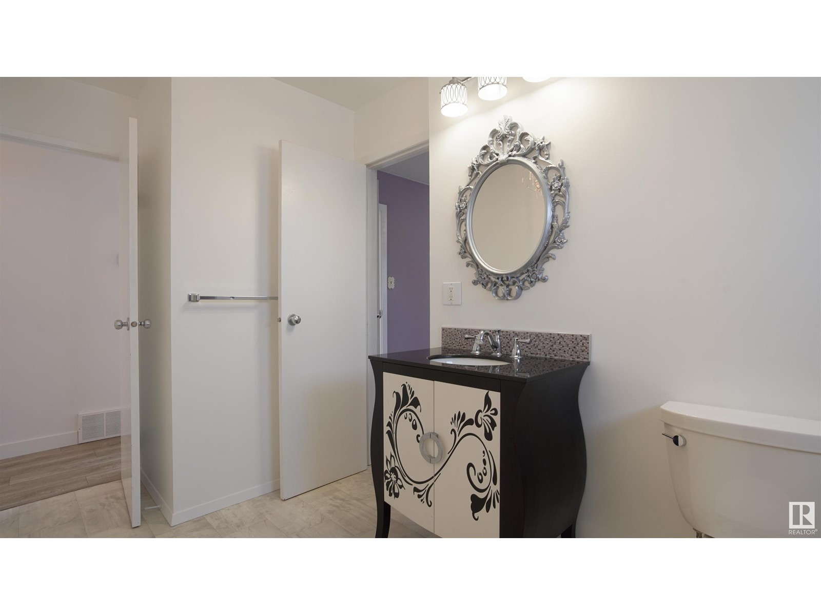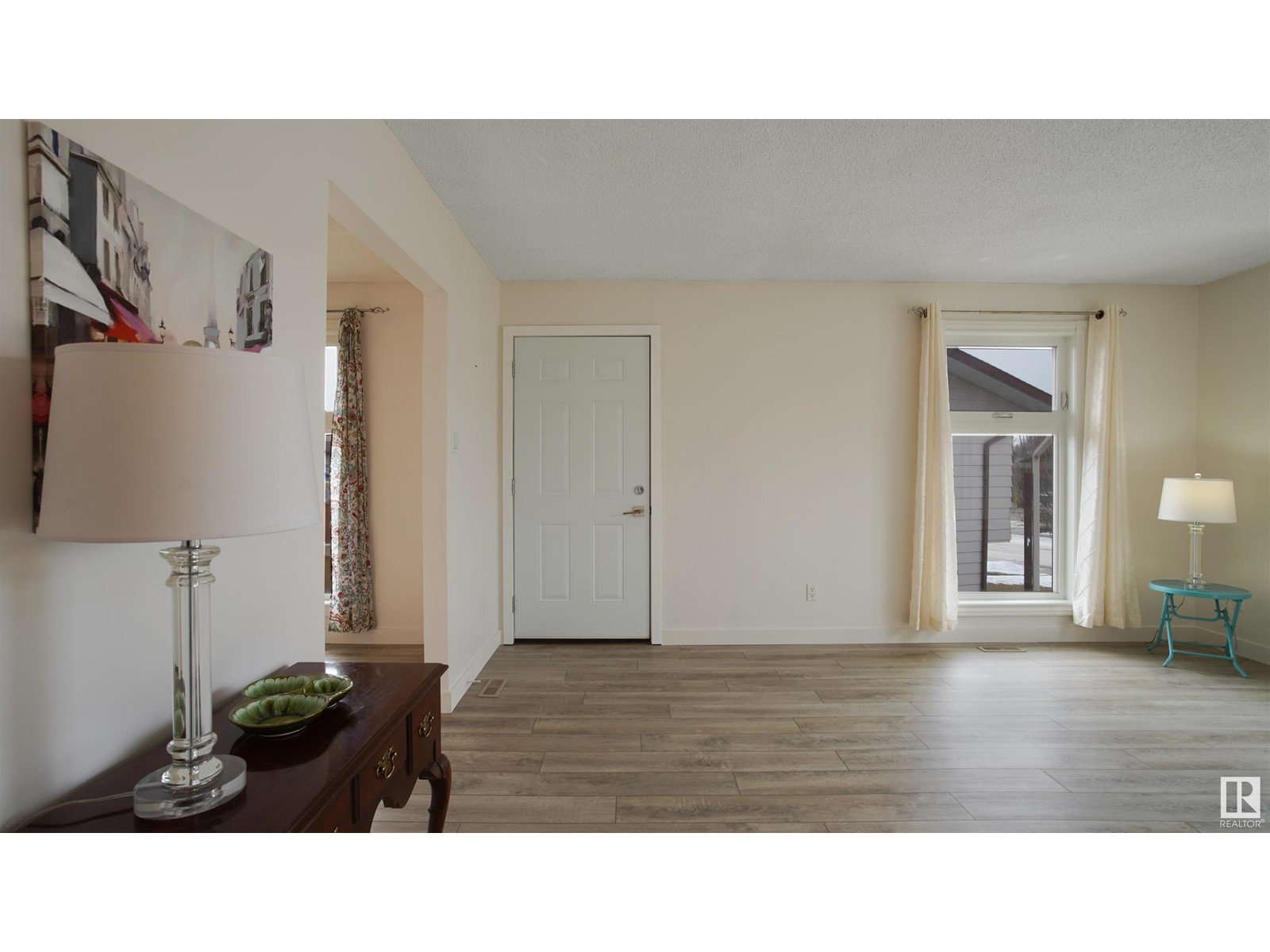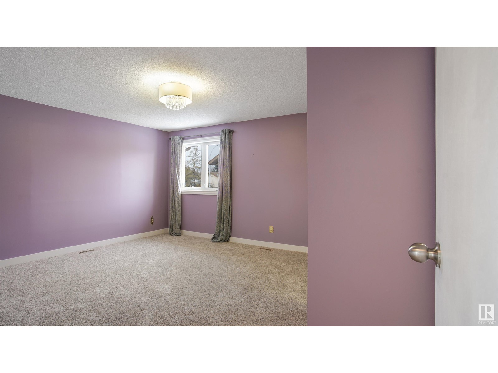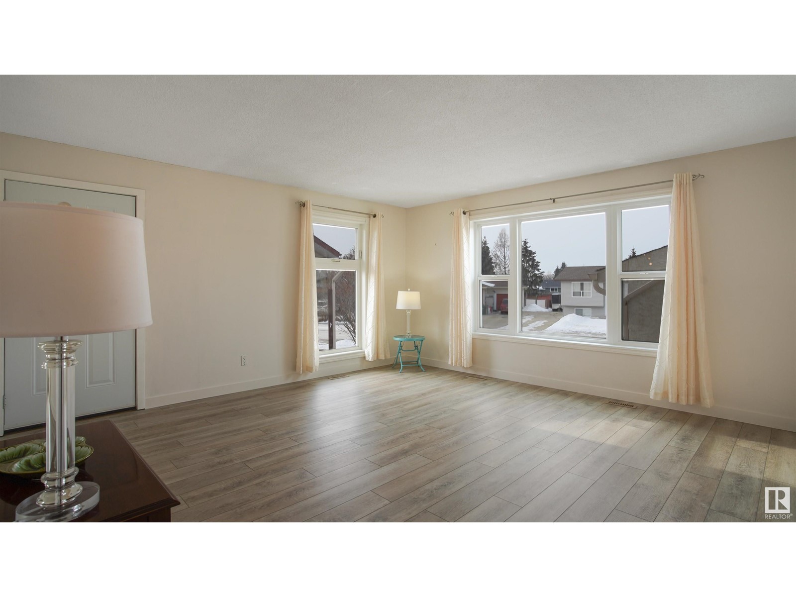 Welcome to this extensively renovated and well cared for home situated on a quiet street with no thru road. Location is steps away from a small children's play park, a block away from multiple bike/walking paths, and an easy walk to Stony Plain Public Golf Course. The 3 bedrooms are all of good size including a huge master with a cheater bathroom. Room for a shower or bathtub in basement bathroom. The updates are numerous and include: Shingles (2008), Bathroom (2010 & 2020), Triple Glazed Windows (2012), Bathroom Laminate (2016), Furnace and HWT (2016), Full Kitchen Reno with Quartz Counter-top, soft closing cabinets, and large Pantry (2022), Paint (2022), Exterior Doors (2022), Vinyl Plank Flooring (2022), Carpet (2022), Floating Back Deck (2022), Garage Door has 7' Clearance and there is room for RV parking. Here you are. (id:22211)
