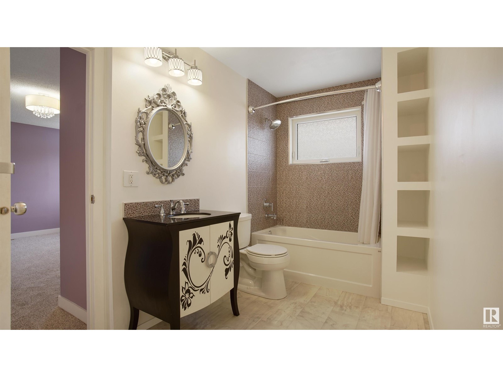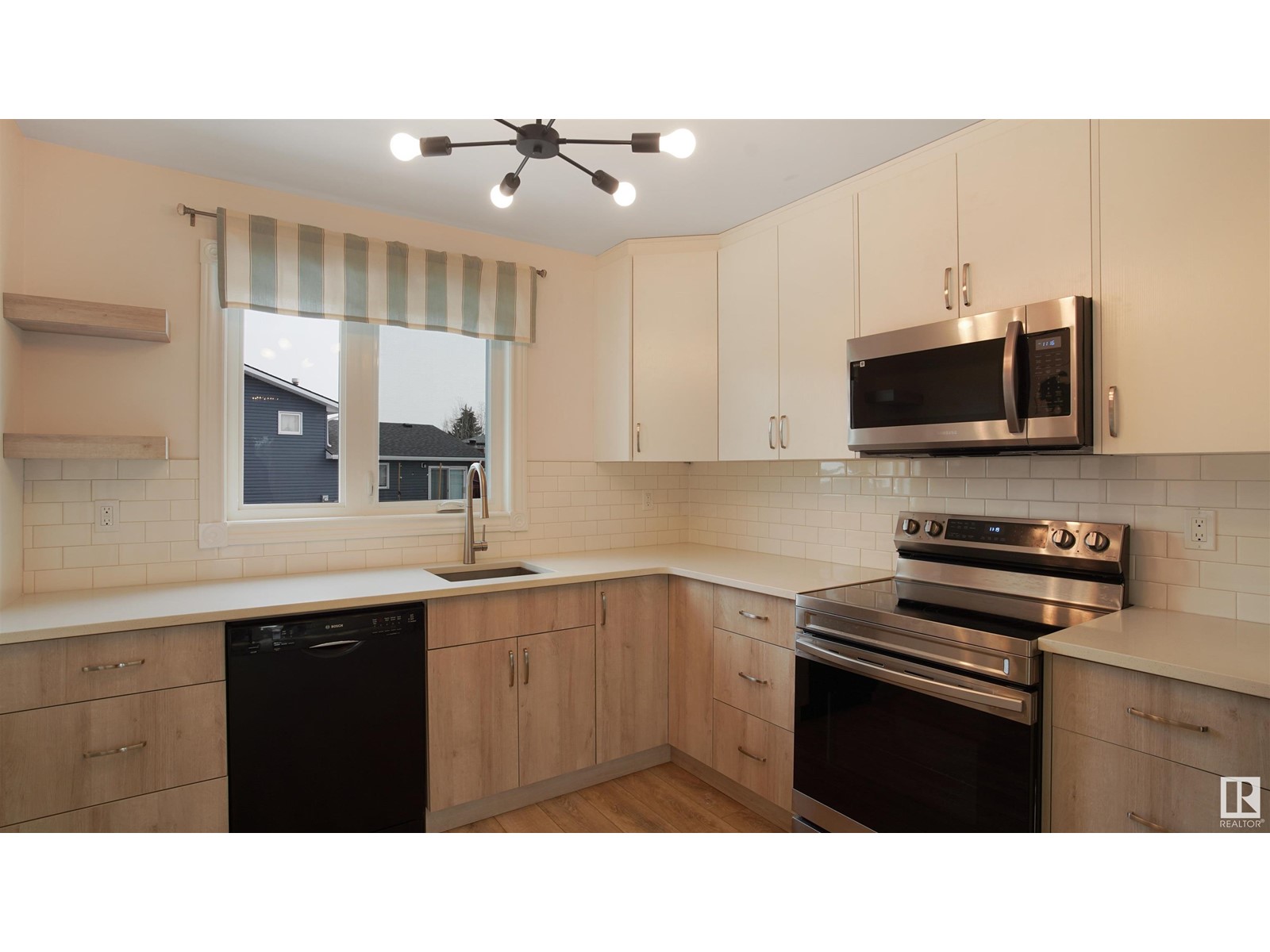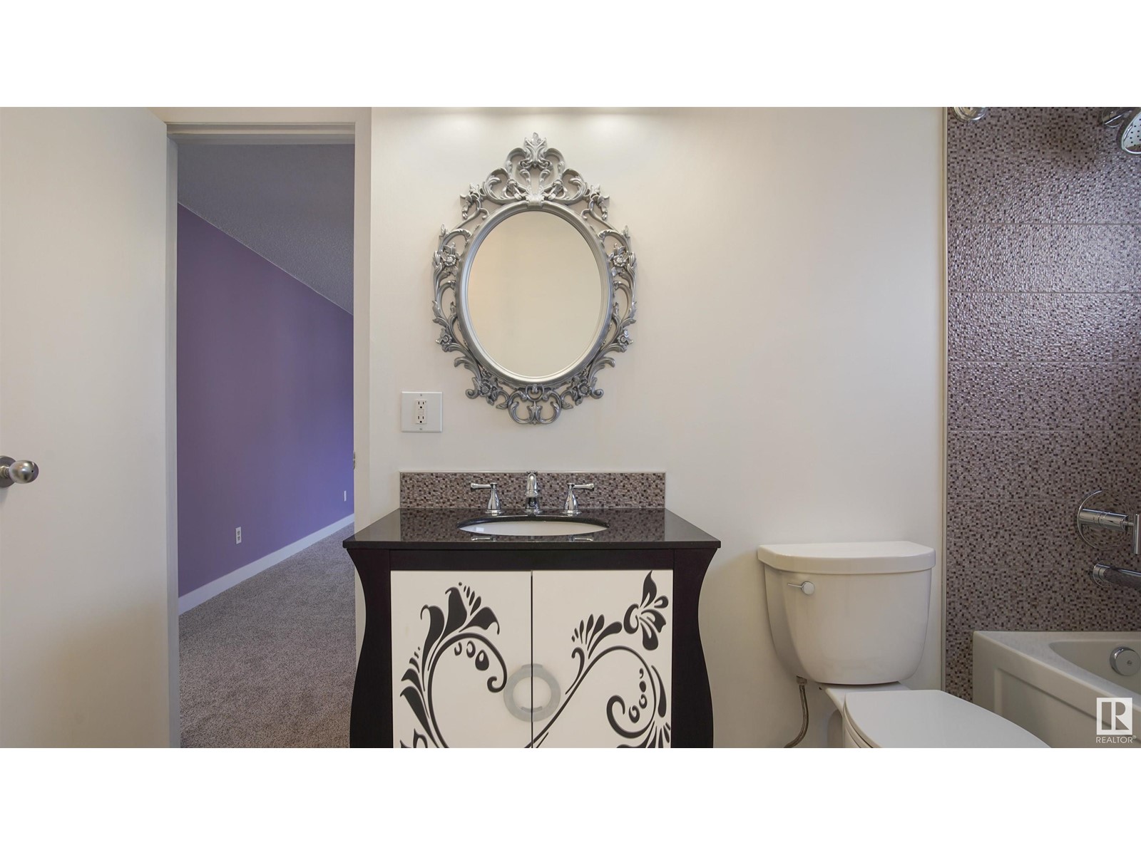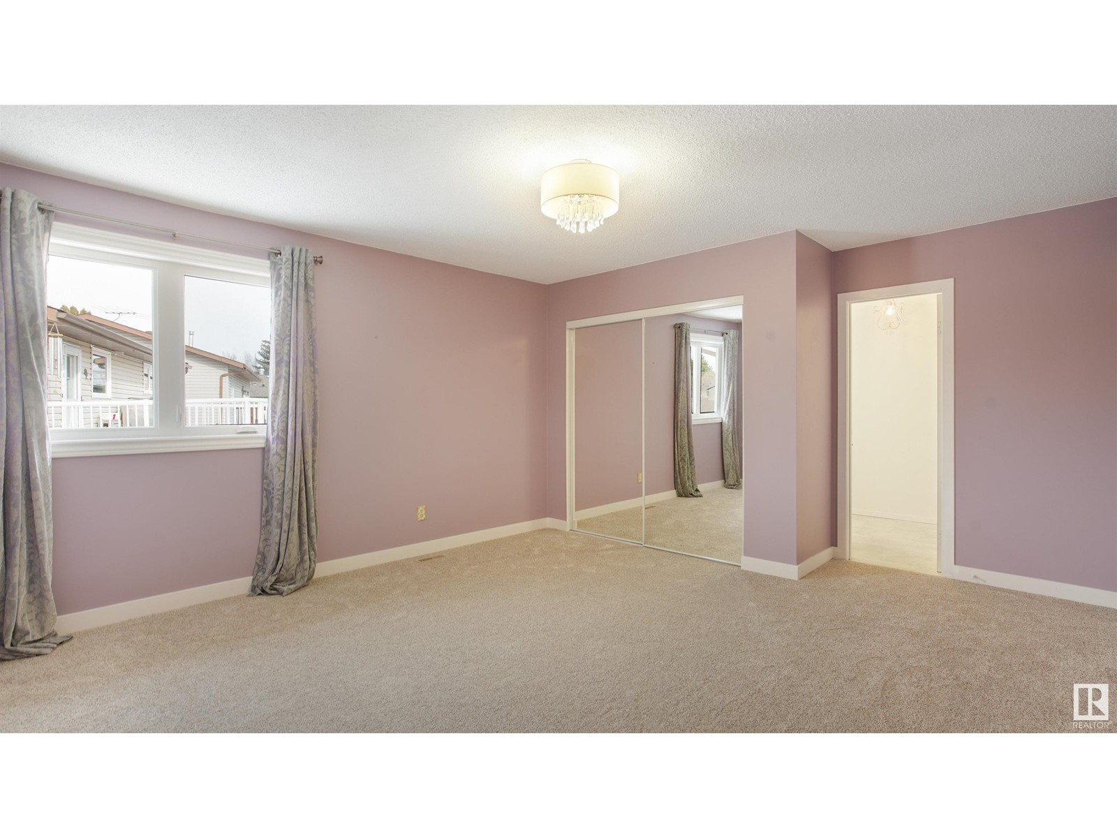 Welcome to this extensively renovated and well cared for home situated on a quiet street with no thru road. Location is steps away from a small children's play park, a block away from multiple bike/walking paths, and an easy walk to Stony Plain Public Golf Course. The 3 bedrooms are all of good size including a huge master with a cheater bathroom. Room for a shower or bathtub in basement bathroom. The updates are numerous and include: Shingles (2008), Bathroom (2010 & 2020), Triple Glazed Windows (2012), Bathroom Laminate (2016), Furnace and HWT (2016), Full Kitchen Reno with Quartz Counter-top, soft closing cabinets, and large Pantry (2022), Paint (2022), Exterior Doors (2022), Vinyl Plank Flooring (2022), Carpet (2022), Floating Back Deck (2022), Garage Door has 7' Clearance and there is room for RV parking. Here you are. (id:22211)