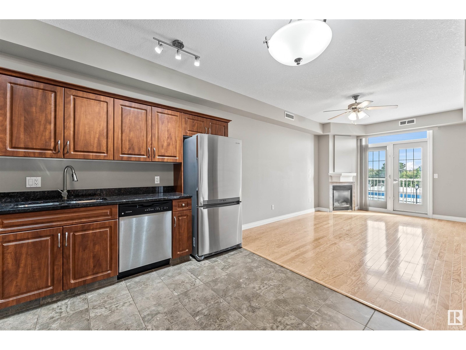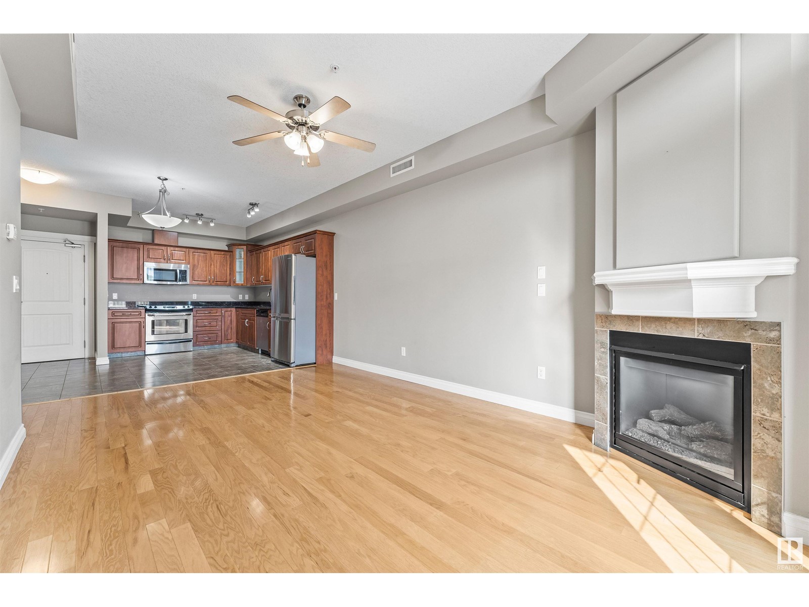 Located on the 3rd floor of the Barth and Gosset Manor, welcome to this beautiful condo located in the heart of Stony Plain. If you are an investor or just love downtown Stony Plain, this place is for you! As soon as you walk in you will notice the spacious kitchen with stainless steel appliances and granite countertops and open concept living space. The living room is bright and has a corner cozy gas fireplace and beautiful hardwood floors. The unit also features 2 large bedrooms, a 4 piece bathroom, a large laundry room, central A/C and 9ft ceilings. Enjoy your morning coffee with your east facing balcony. This building features underground heated parking, car wash, storage unit, two amenity rooms and common areas. Prime location with walking distance to coffee shops, restaurants, gift shops, a grocery store and much more! This property is a must see! (id:22211)