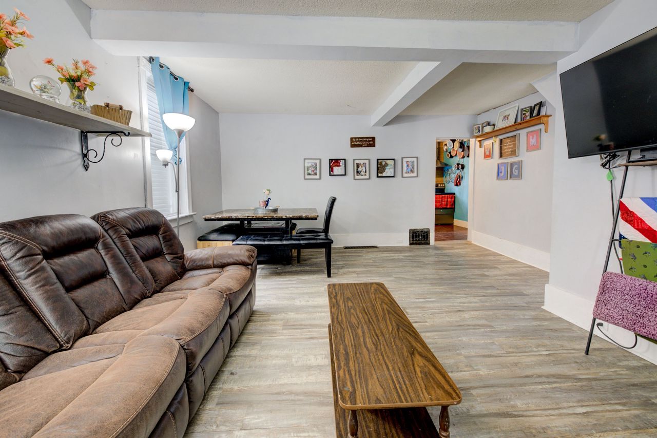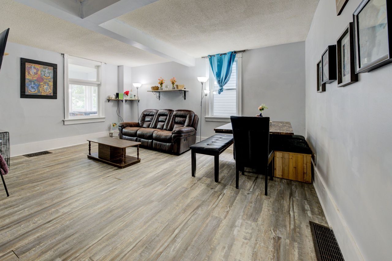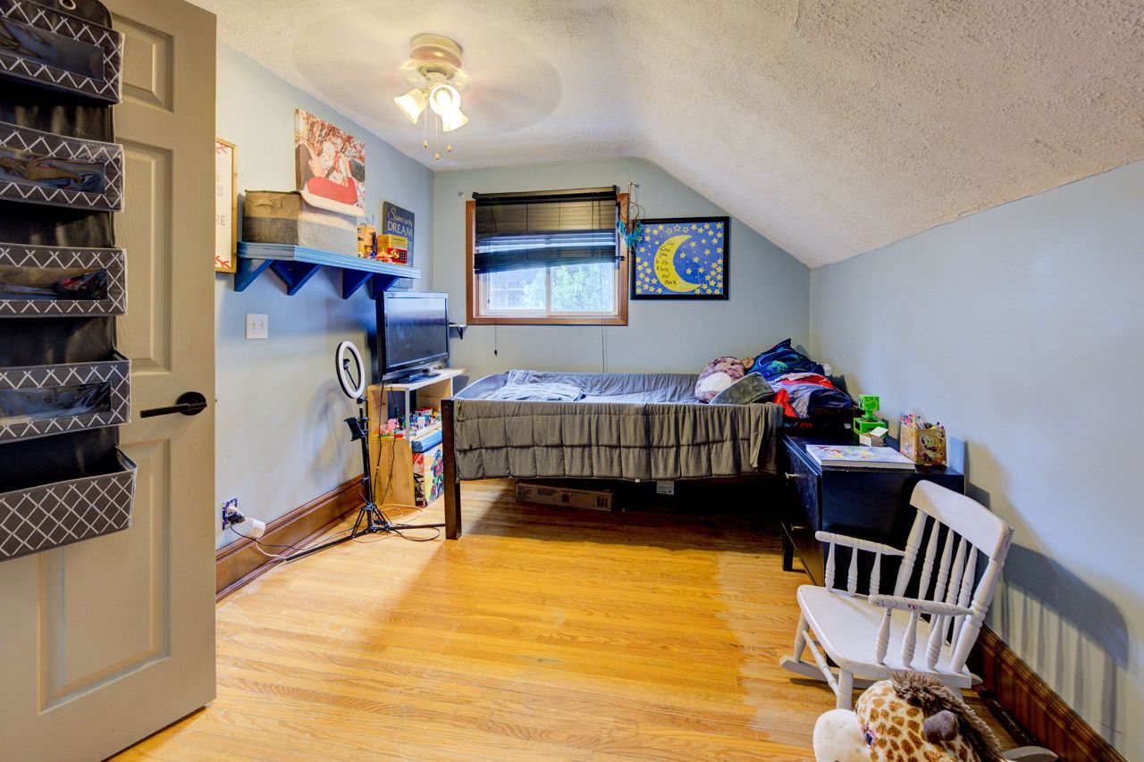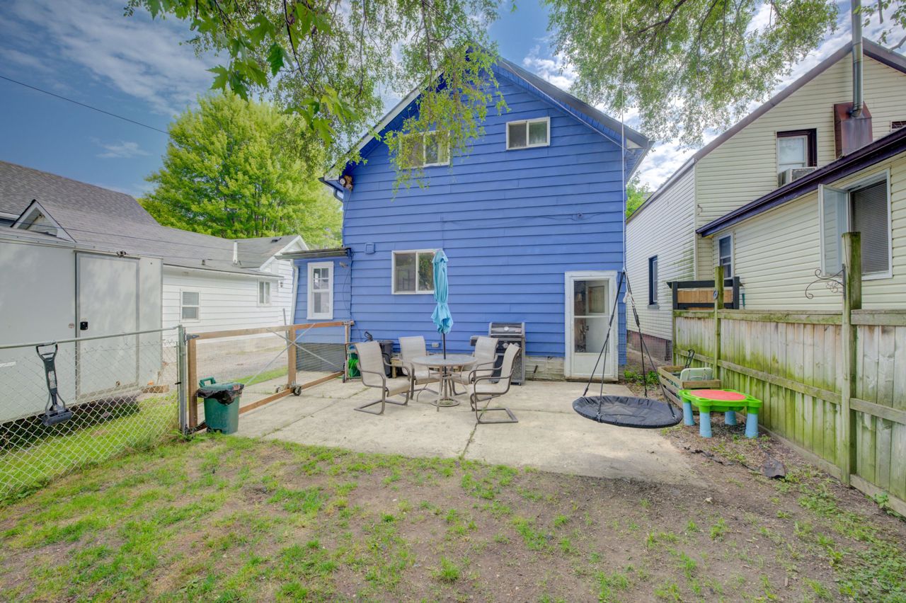Perfect Starter Home or Investment! Step into homeownership with this charming 1.5-storey home featuring an inviting enclosed front porch, an open-concept living and dining area, and a bright kitchen with a side porch pantry for extra storage. The main floor includes a convenient 2-piece bathroom, while the upper level offers three comfortable bedrooms and a 4-piece bath with in-suite laundry. The fenced backyard is ideal for relaxing or entertaining, complete with a patio and storage shed. Plenty of parking with a 3-car driveway. New Furnace and A/C 2021! A great opportunity to enter the real estate market, contact your REALTOR today for a private viewing!