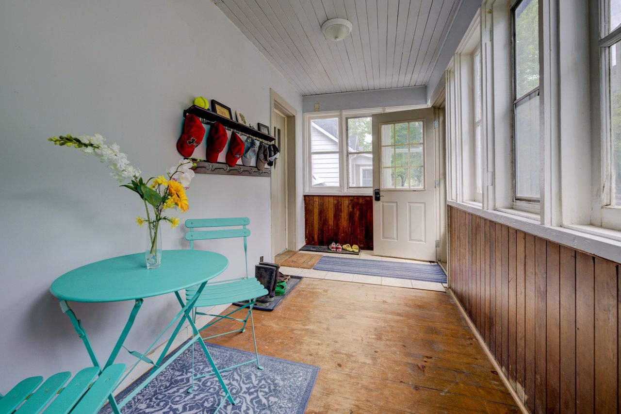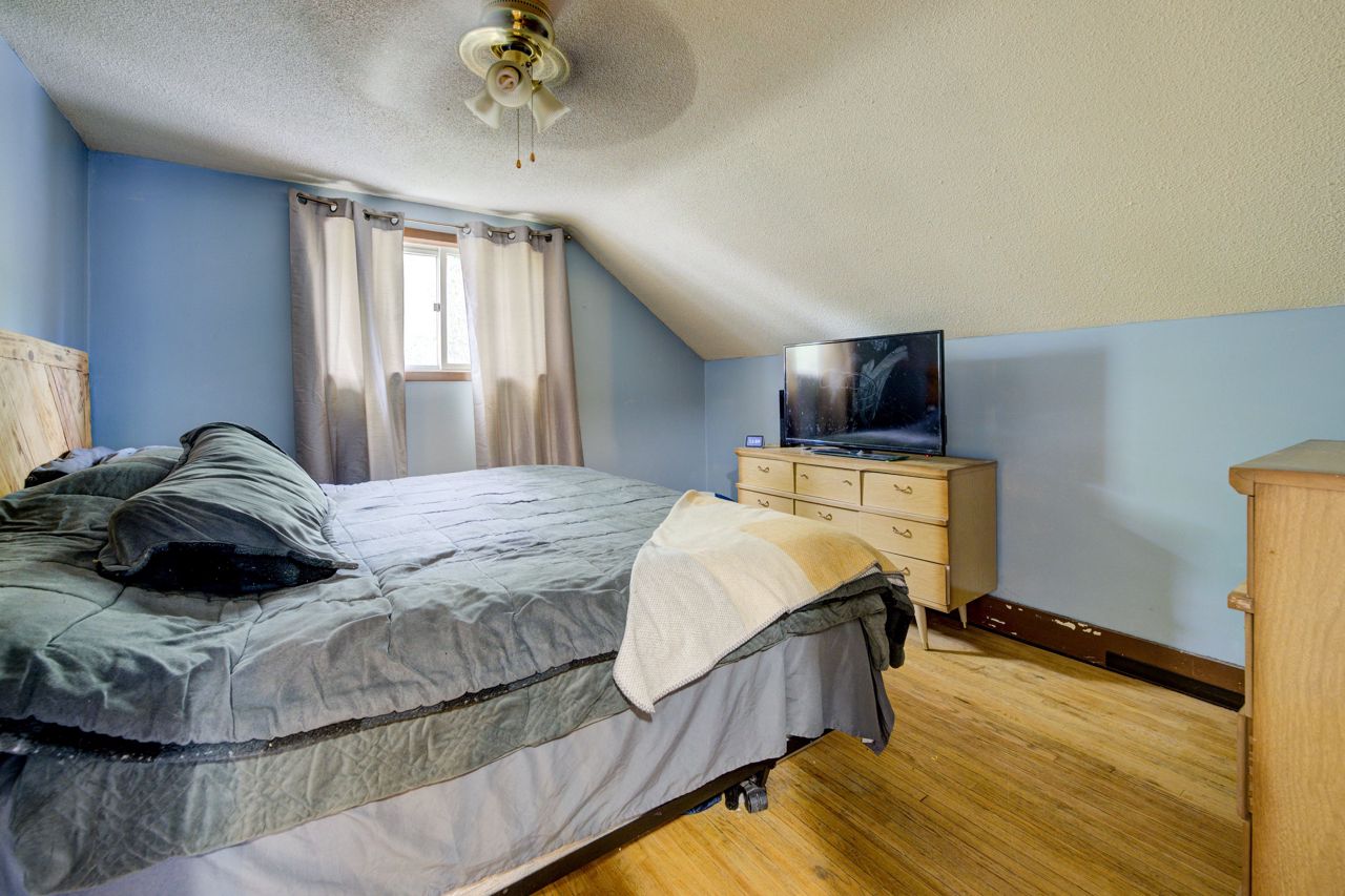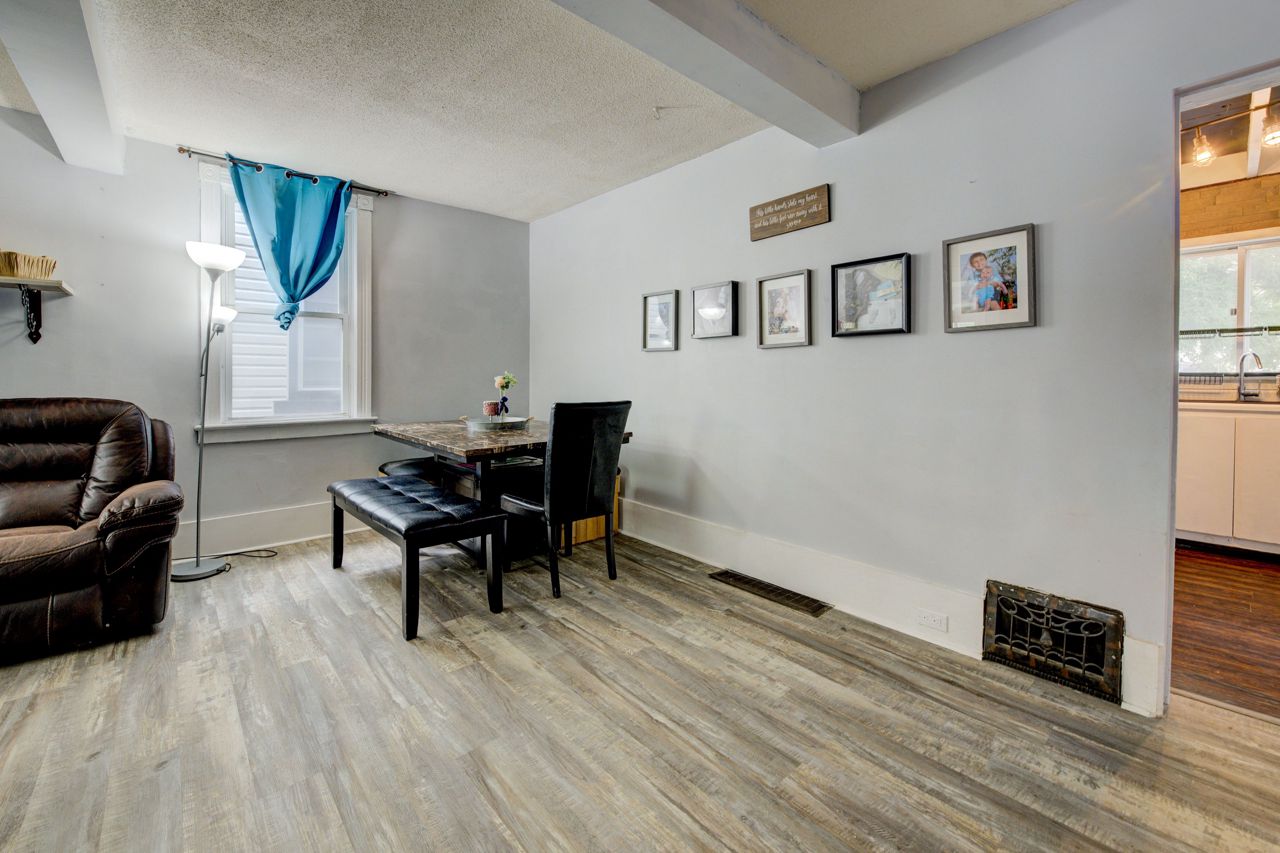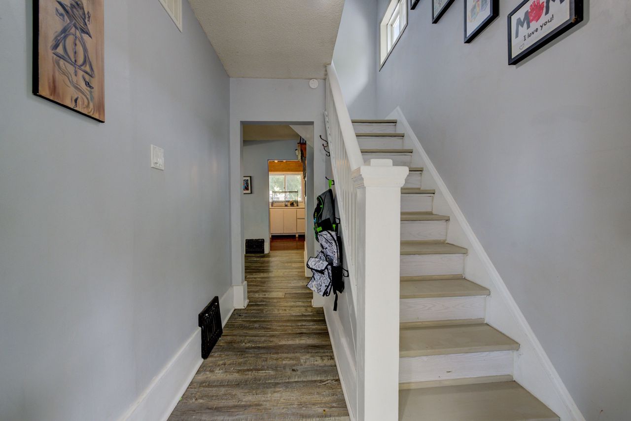 Perfect Starter Home or Investment! Step into homeownership with this charming 1.5-storey home featuring an inviting enclosed front porch, an open-concept living and dining area, and a bright kitchen with a side porch pantry for extra storage. The main floor includes a convenient 2-piece bathroom, while the upper level offers three comfortable bedrooms and a 4-piece bath with in-suite laundry. The fenced backyard is ideal for relaxing or entertaining, complete with a patio and storage shed. Plenty of parking with a 3-car driveway. New Furnace and A/C 2021! A great opportunity to enter the real estate market, contact your REALTOR today for a private viewing!