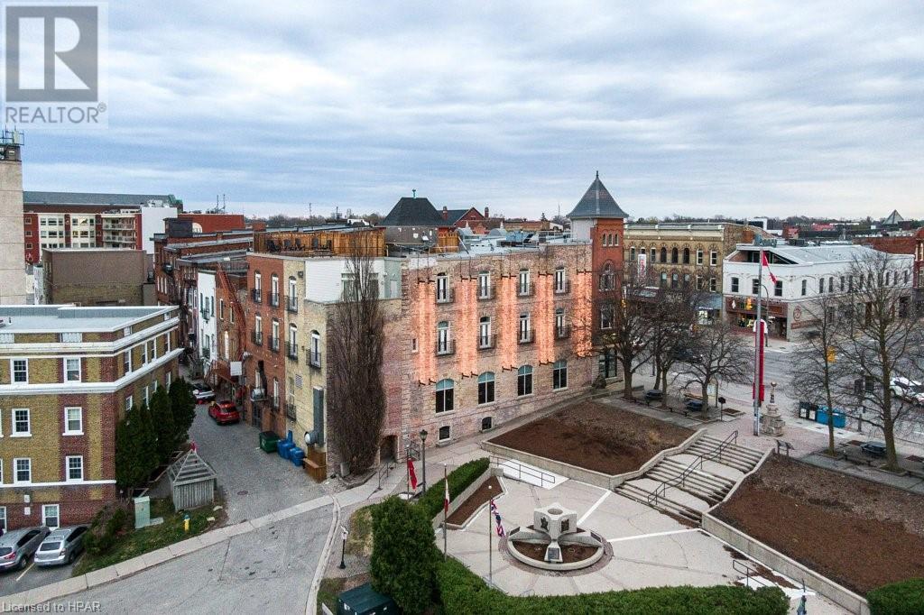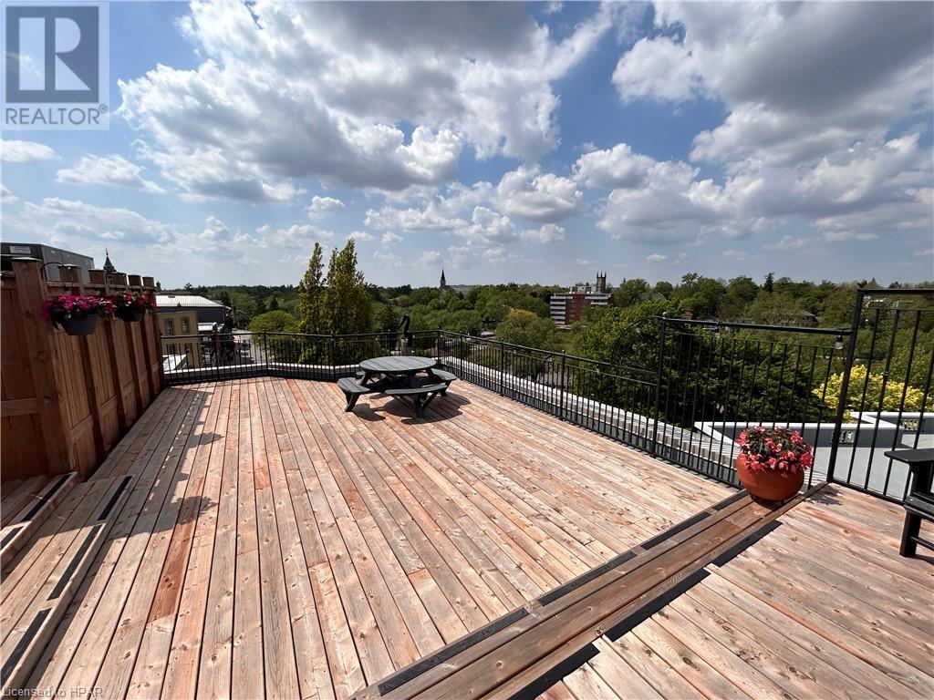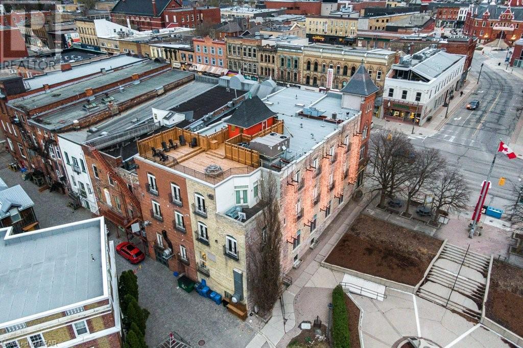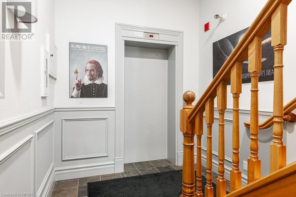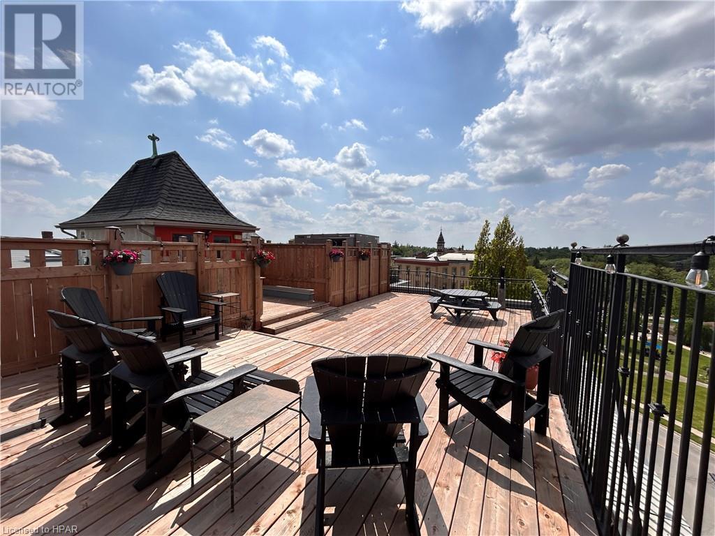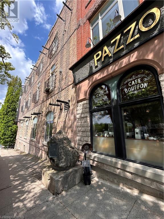 The Stratford Living Experience is even better at 72 Ontario St! This beautiful condo is situated at the heart of Stratford's vibrant dining, theatre, and shopping district. Within steps of your peaceful and cozy home, you'll find an array of shops, restaurants, live theatres, special events, as well as the Avon River and parklands. Featuring a spacious 1-bedroom plus den - perfect for use as a guest bedroom - this unit boasts a unique primary en-suite and a private 3-piece bath adjacent to the den/bedroom. The home offers ample bright living space with gorgeous views overlooking Stratford's Avon River. Access to the apartment is through a private and attractive street entrance that leads to a walk-up staircase or elevator to the second-floor entry. Upon entering, you'll be welcomed by beautiful hardwood flooring, high ceilings, and a cozy kitchen with a serving bar that flows into the living room. The kitchen is equipped with built-in appliances, a gas range stove, and glass-featured cabinetry. Natural light floods the unit from large Juliette doors in both the living room and primary bedroom, bathing the space in soft western light. Additional features include an in-suite separate laundry room, built-in custom shelving, secure entry, and owner access to a newly renovated rooftop patio boasting stunning views. The elevator access to the lower park level entry and the nearby popular Pazzo's Restaurant adds to the convenience and charm of this property. This condo is a delight to showcase. Call your REALTOR® today to schedule a private showing. (id:22211)