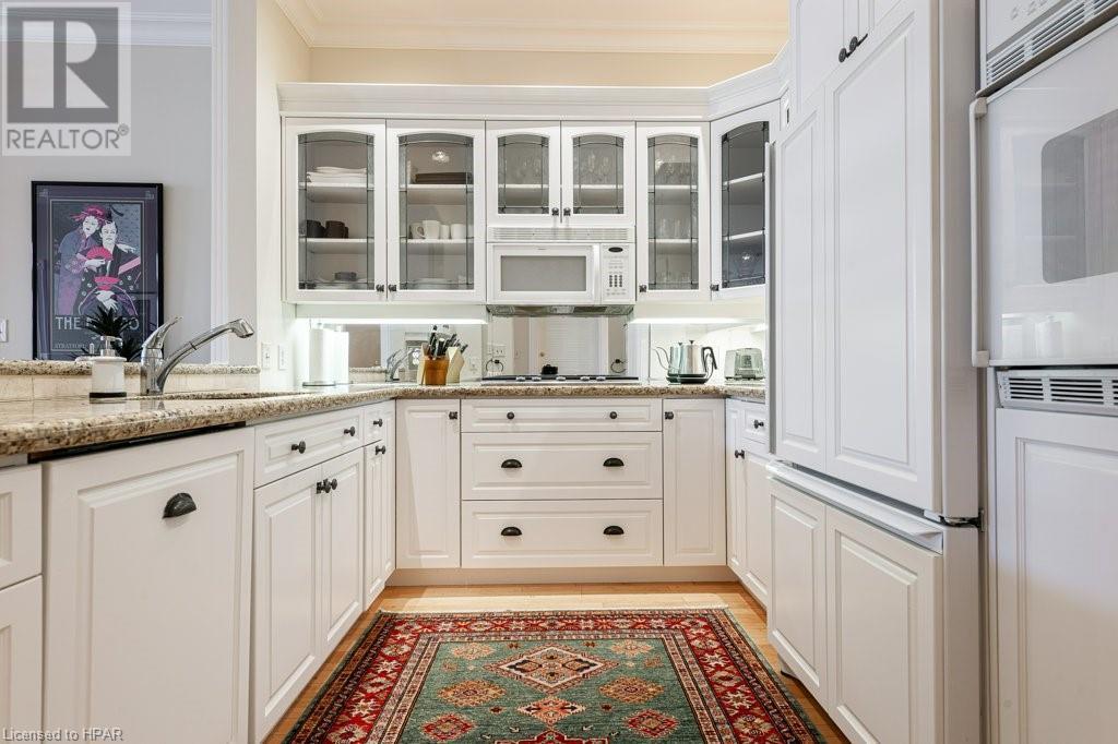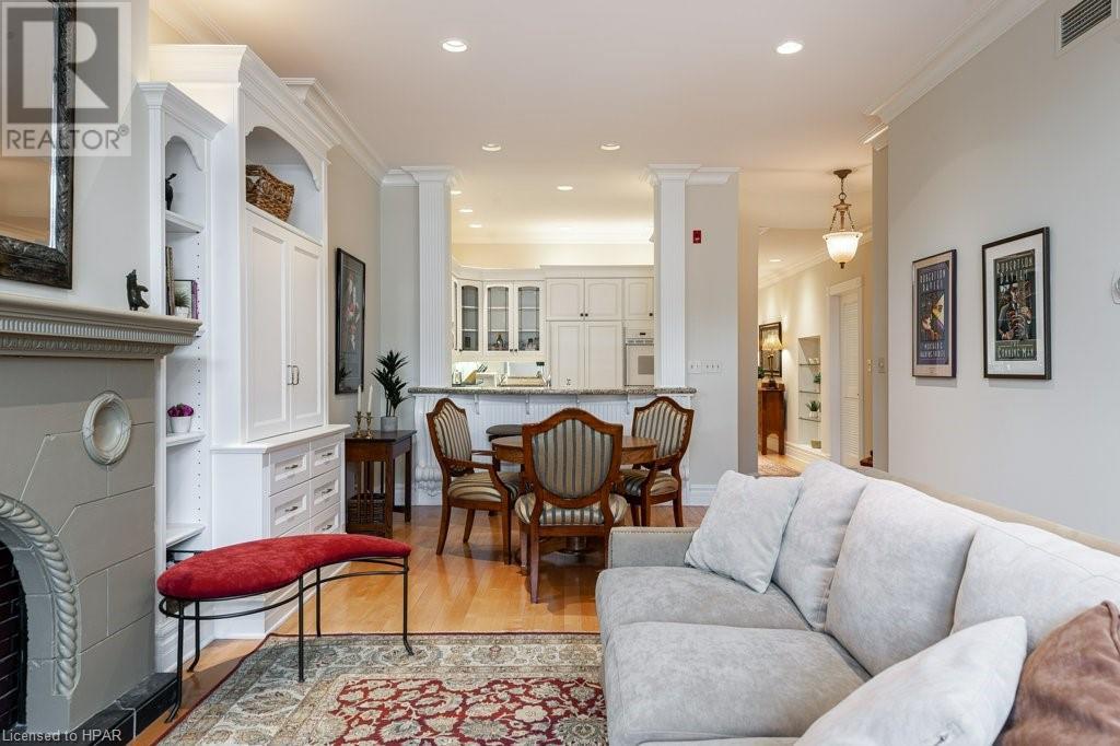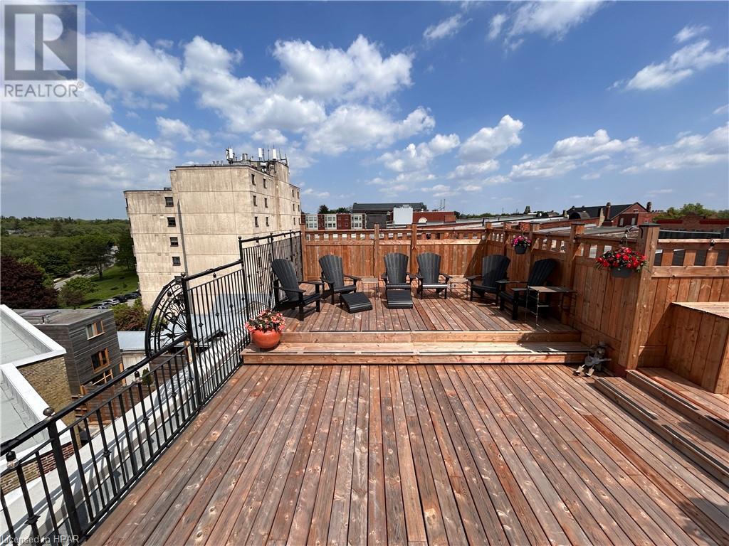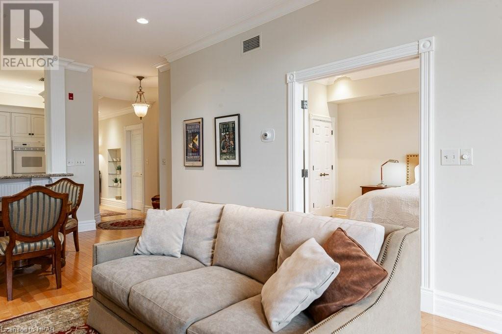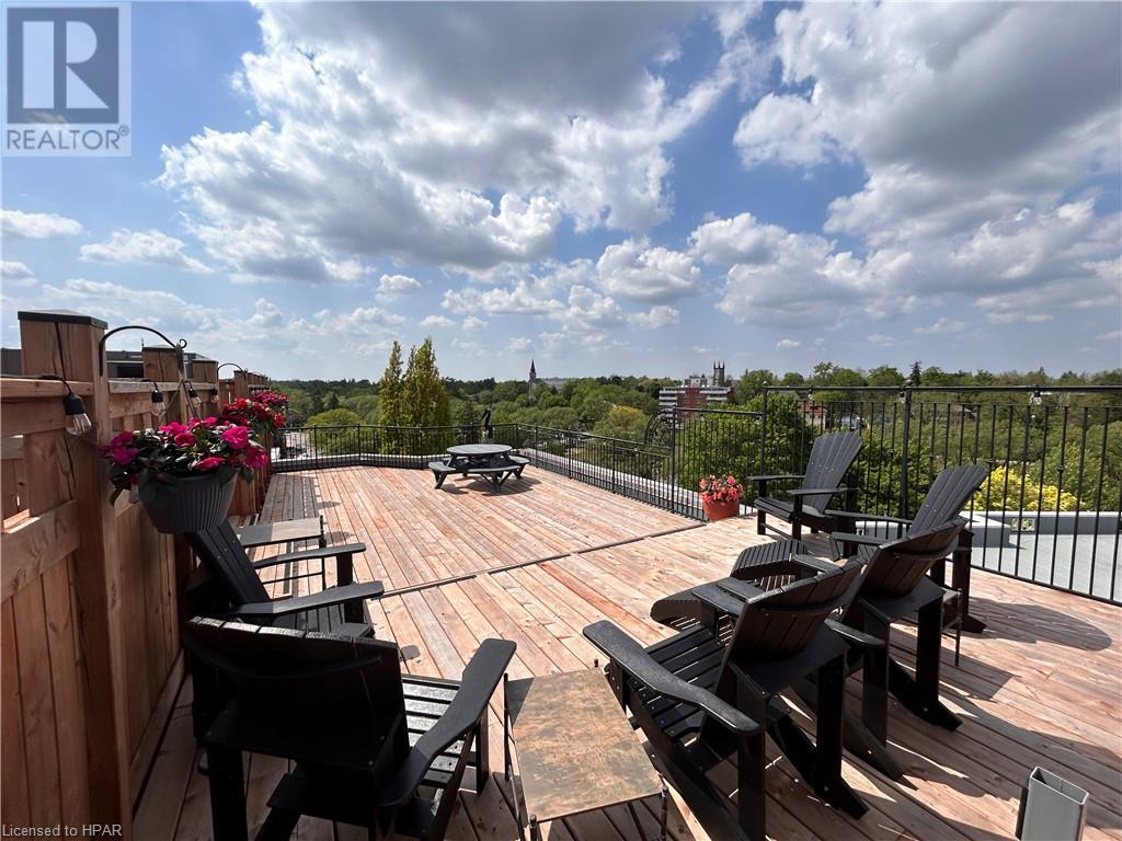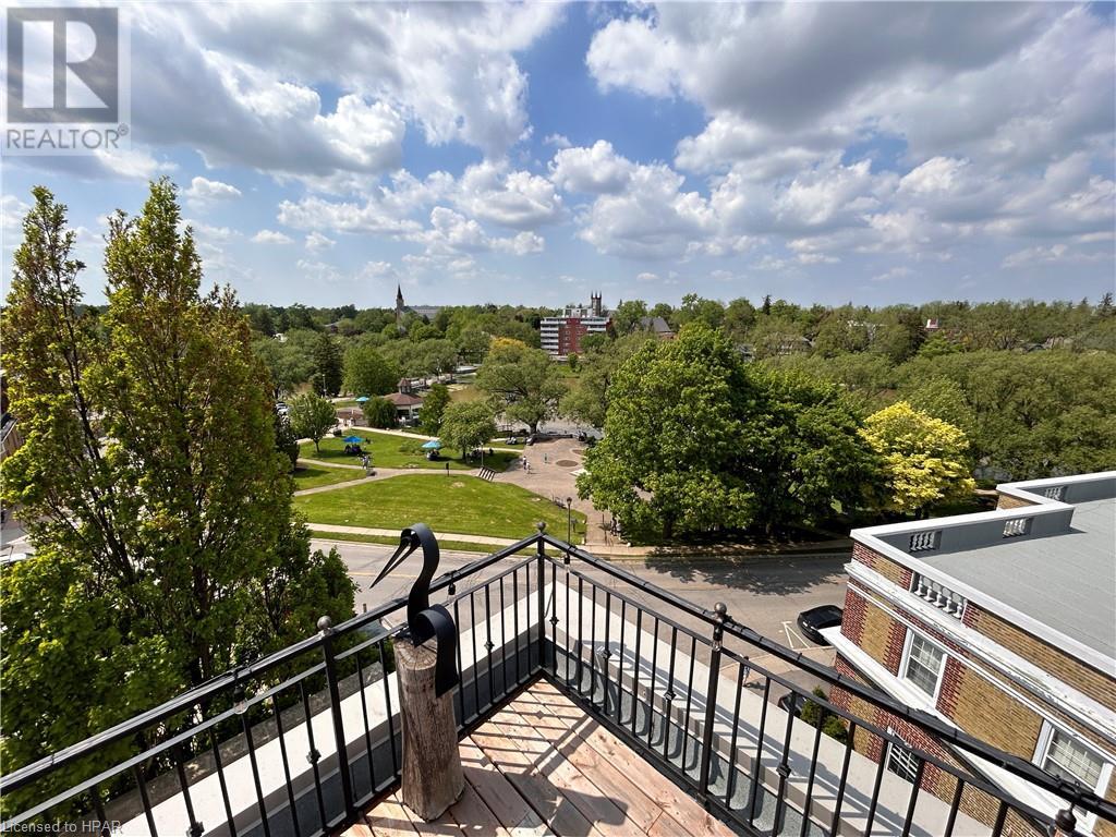 The Stratford Living Experience is even better at 72 Ontario St! This beautiful condo is situated at the heart of Stratford's vibrant dining, theatre, and shopping district. Within steps of your peaceful and cozy home, you'll find an array of shops, restaurants, live theatres, special events, as well as the Avon River and parklands. Featuring a spacious 1-bedroom plus den - perfect for use as a guest bedroom - this unit boasts a unique primary en-suite and a private 3-piece bath adjacent to the den/bedroom. The home offers ample bright living space with gorgeous views overlooking Stratford's Avon River. Access to the apartment is through a private and attractive street entrance that leads to a walk-up staircase or elevator to the second-floor entry. Upon entering, you'll be welcomed by beautiful hardwood flooring, high ceilings, and a cozy kitchen with a serving bar that flows into the living room. The kitchen is equipped with built-in appliances, a gas range stove, and glass-featured cabinetry. Natural light floods the unit from large Juliette doors in both the living room and primary bedroom, bathing the space in soft western light. Additional features include an in-suite separate laundry room, built-in custom shelving, secure entry, and owner access to a newly renovated rooftop patio boasting stunning views. The elevator access to the lower park level entry and the nearby popular Pazzo's Restaurant adds to the convenience and charm of this property. This condo is a delight to showcase. Call your REALTOR® today to schedule a private showing. (id:22211)