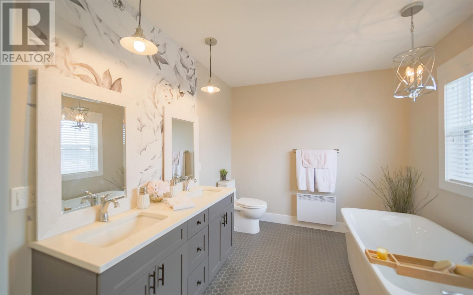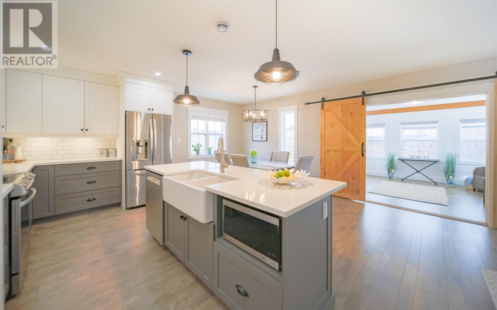 [VIDEO & VIRTUAL TOUR available - click virtual tour/multimedia link to view]. This stunning 3 bedroom home is located within a family friendly cul de sac located just off Rosebank Road. Only 5 years old, with a double car garage and a modern portico set the tone to this stylish home. The foyer features a built-in bench and large closet, down the hall is the powder room. The living space is highlighted by the barn doors that open into the 4 season sunroom and easily enjoy this space all year around. The cozy up to the propane fireplace in the living room during the winter months. The beautiful kitchen and dining room create a welcoming space to entertain while you prepare your favourite meals. A door in the sunroom opens onto the back deck perfect for a place to set up your bbq for outdoor cooking.The second floor features a landing with a convenient laundry room just around the corner. For added privacy a second set of barn doors separate two bedrooms and the full bath from the rest of the upper level. The master bedroom features a large ensuite with a beautiful soaker tub, double sink vanity, stand up shower with white subway tile and the flooring is a lovely honeycomb tile. Heated with electric heat, enjoy efficient even heat throughout with in-floor heating, Convectair heaters and heat pumps all winter long.All measurements are approximate and should be verified by purchaser(s) if deemed necessary. (id:22211)