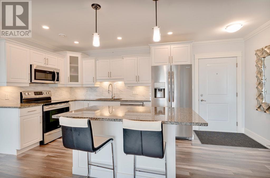 This beautiful condo, in the up and coming town of Stratford, can be yours now! This second floor 1120 sq ft unit features 2 very large bedrooms, 2 full bathrooms, a stunning open concept living and kitchen space as well as a separate laundry and utility room. High end finishes, walk in closet, stainless steel appliances and electric fireplace add even more appeal. The location really can not be beat. Right outside the door are walking trails, community splash pad and skate park, off leash dog park, free community gym not the mention all the shopping, gas and local conveniences walking distance away. The home includes an assigned parking stall as well as massive storage unit in the basement. Come see it for yourself. All measurements are approximate and should be verified by purchaser if deemed necessary. Listing agent is the Vendor. (id:22211)