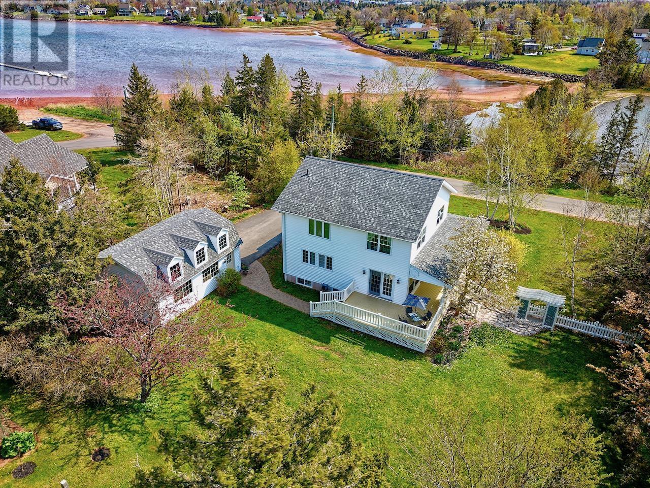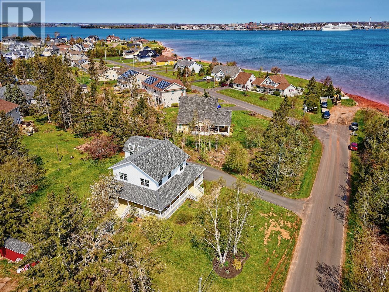 This well built energy efficient home is just steps away from the shore and situated in desirable Rosebank. This one owner, custom built home has been lovingly maintained and features crown moulding, low-E-argon windows that provide plenty of natural light, and water views of Charlottetown harbour. The large veranda is perfect for relaxing, entertaining, watching the sun / moon rise over Jordons Pond or enjoying morning coffee. The west facing backyard offers park-like views, established perennial gardens and flowering trees. Open concept kitchen/dining room features birch cabinetry with cherry accents, built in shelving, and easily seats 12+. Large island has a sink, lighting, outlets, and seating, making it a favourite gathering place. The 2nd level features a laundry room, large bath with corner soaking tub and 3 bright bedrooms. Attractive home theatre/family room in basement features built in shelves, electric fireplace, room for a 65 inch TV and is also plumbed and wired for wet bar etc. Other rooms include a cold room/pantry, quiet home office with rich woodwork, hobby room with generous storage, and workroom with 6 zone furnace/Roth oil tank and newer electric water heater. In addition to the 12 closets, there is loft storage above the two car garage. Recent updates include; architectural shingles with full membrane in 2019, Bosch dishwasher, fridge, stove, washer/dryer installed in 2021, and new heat pump in Fall 2023. This well crafted home set in this beautiful area, must be seen to be appreciated. (id:22211)