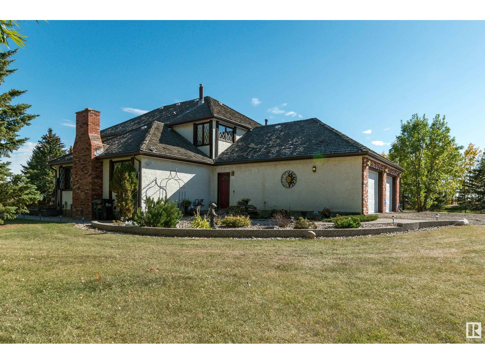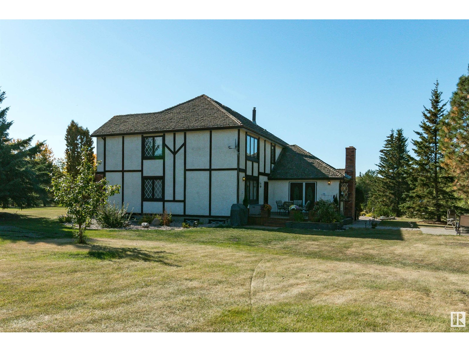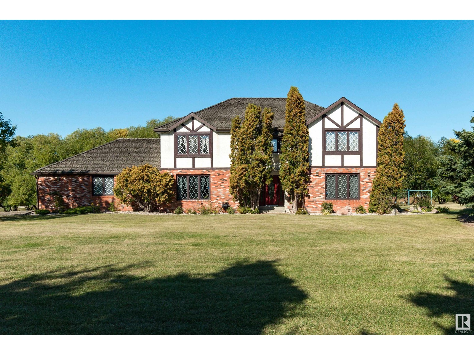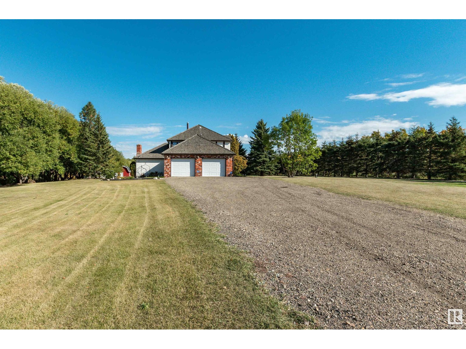 IMMACULATE CUSTOM BUILT 2 storey home in Horton Place! Only 5 minutes to Ardrossan and 10 minutes to Sherwood Park. Situated on 3.18 acres on a beautifully treed and private lot. Lovingly maintained by its original owners. It offers 3300 square feet plus a FULLY FINISHED basement. Open and bright with gleaming hardwood floors. Living room, dining area and a huge family room with wood-burning fireplace. Big eat-in kitchen with newer granite counter tops & backsplash. Main floor den, mud room & 3 piece bathroom & 2 piece powder room. Upstairs are 5 bedrooms! Lovely 3 piece ensuite in Primary bedroom. Upper 4 piece bathroom. The basement features a huge family room, kitchenette, cold storage, theatre room, 2 piece bathroom & lots of storage space. Beautiful setting in the SOUTH FACING backyard plus there are 2 sheds, playhouse, a barn and a large deck to enjoy. Septic tank and field & well water. Newer hot water tank. Double attached garage and an exposed aggregate walkway. Amazing property and location!! (id:22211)