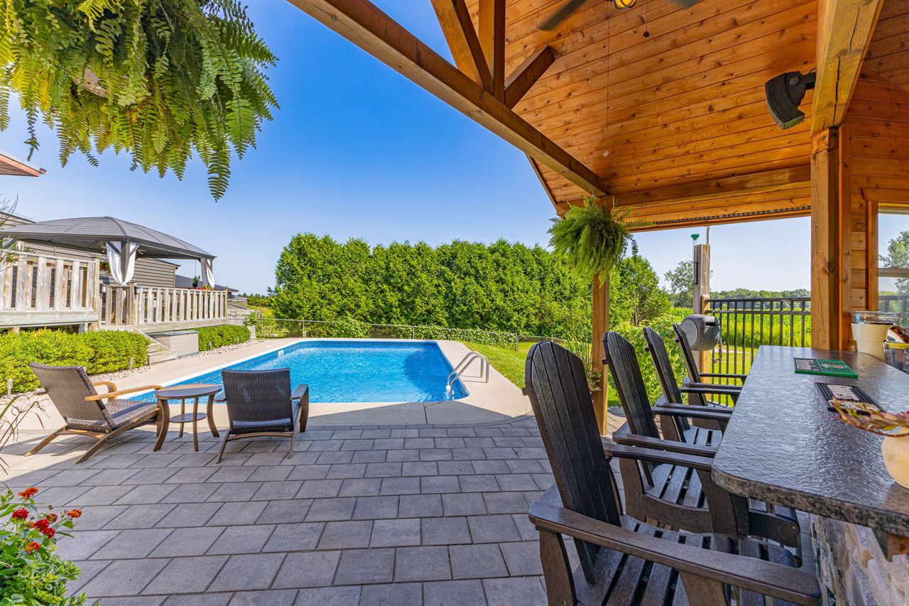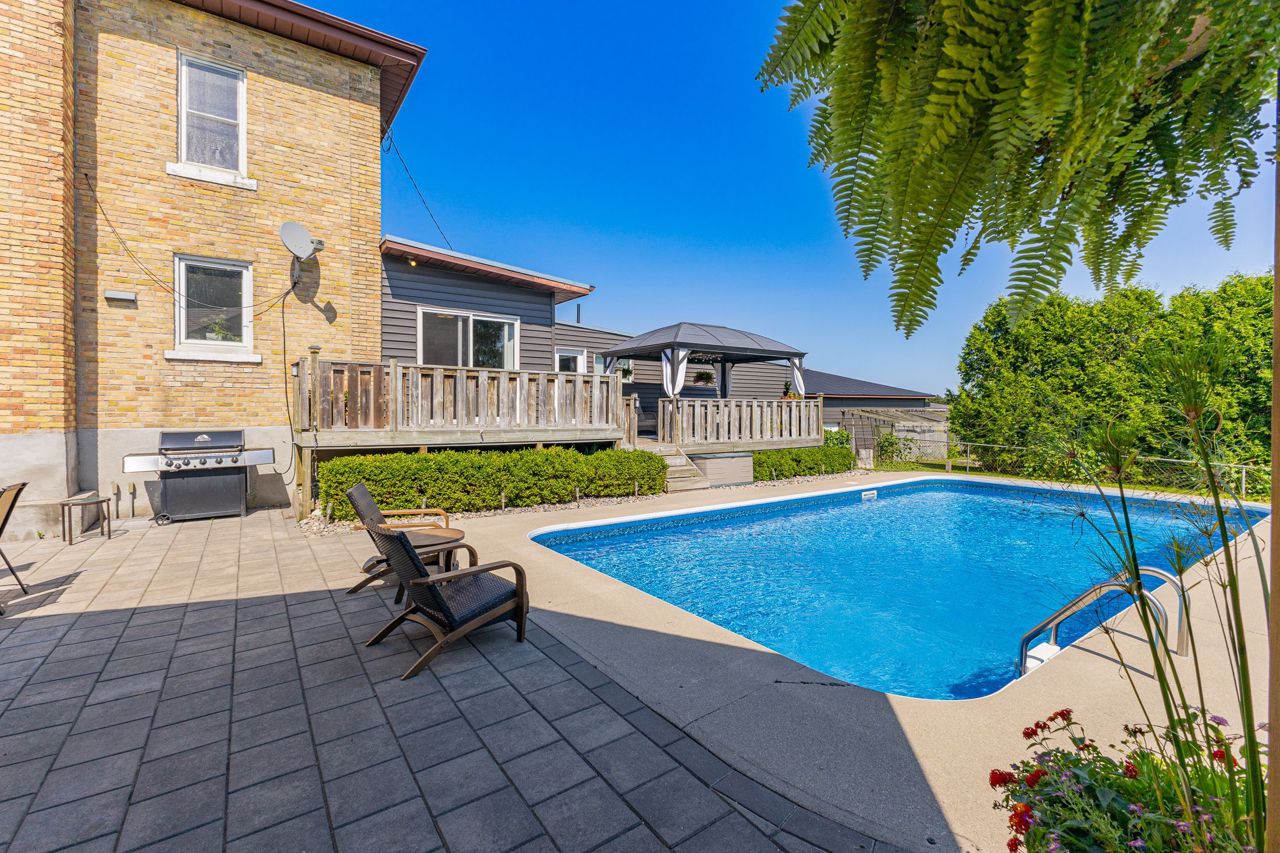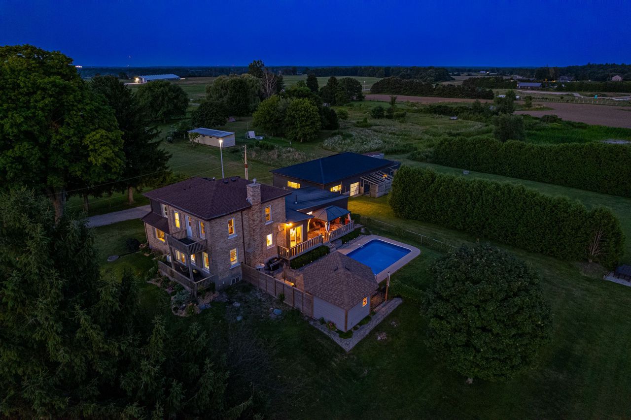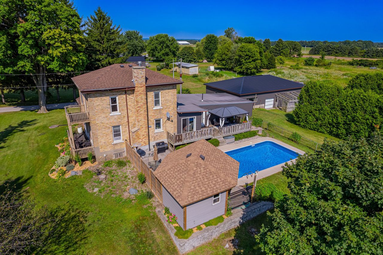 9.49 ACRES - 4 BED, 4 BATH - 2,593 SQ. FT. LIVING SPACE - 40'X60' DETACHED SHOP WITH GAS & HYDRO - OVERSIZED 2-CAR GARAGE - 16'x32' POOL & CABANA BAR - POND - MUNICIPAL WATER & NATURAL GAS - A2 ZONING. Welcome to this rural oasis, nestled between Delaware and Mount Brydges. This solid yellow brick century family home is situated on a picturesque lot where you can enjoy farm house living. Or envision your future custom estate home on a rural acreage. This property has so many attractive features including towering evergreen trees, sprawling grounds, beautiful gardens, a healthy lawn, open views, and a thriving pond with turtles, goldfish and frogs. For those with a green thumb, the spacious yard and abundant sunlight make this an ideal spot for nurturing that vegetable garden you've been dreaming of. In the winter months, consider the pond an ideal location for your potential outdoor rink. The 16'x32' in-ground pool, spacious pool deck, and cabana bar invites family and friends to gather. The large driveway provides ample parking for 10+ vehicles for when friends and family drop by, and the shop has a 200 amp service, a covered port for storing extra equipment, and an already constructed chicken coop for you to enjoy future farm fresh eggs. A newly renovated kitchen features beautiful cabinetry, a peninsula island with seating, a built-in coffee bar/workstation, a granite sink and stainless steel appliances. The spacious formal dining and living rooms are cozy yet bright. The primary bedroom offers gorgeous views and has its own updated ensuite bathroom. Laundry is located on the main floor, and a large mudroom with a bathroom is conveniently located off the pool deck. Bonus: Roof replaced 7 years ago. Fibre optic at property. Invisible Fence for dogs around section of property. Too many upgrades to mention. Buyer to perform own due diligence for potential to build on property.