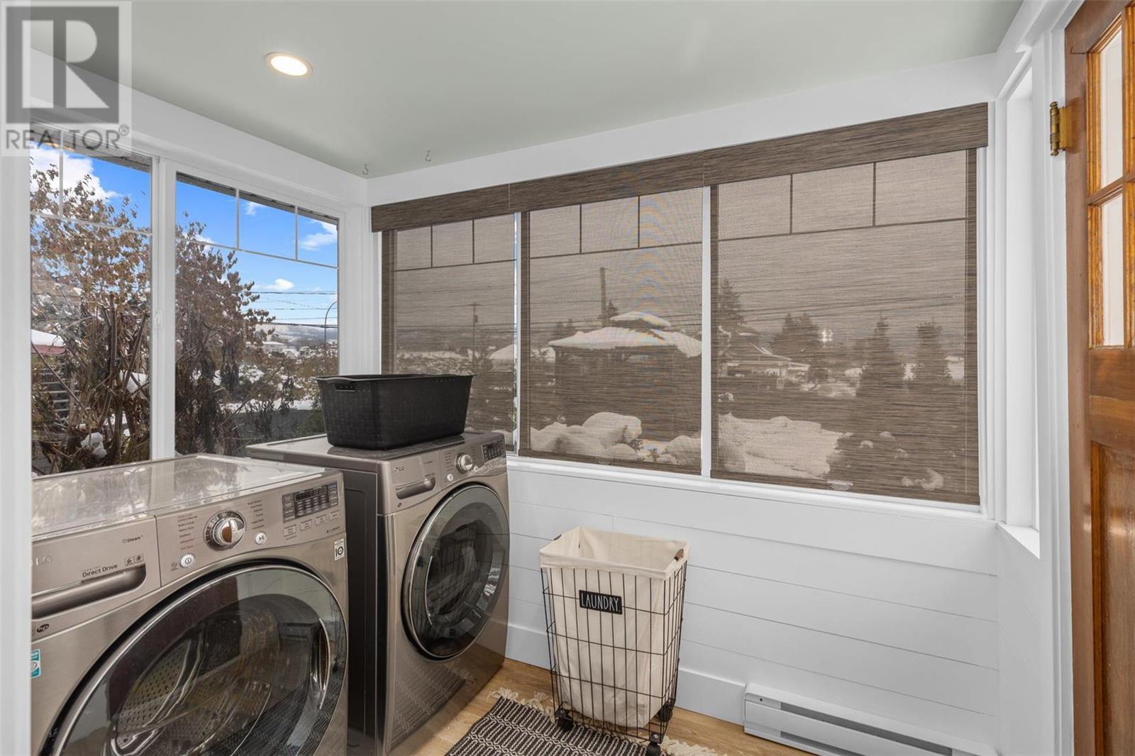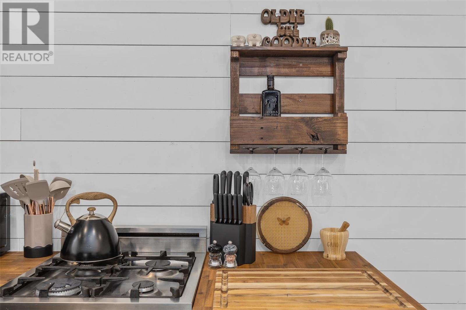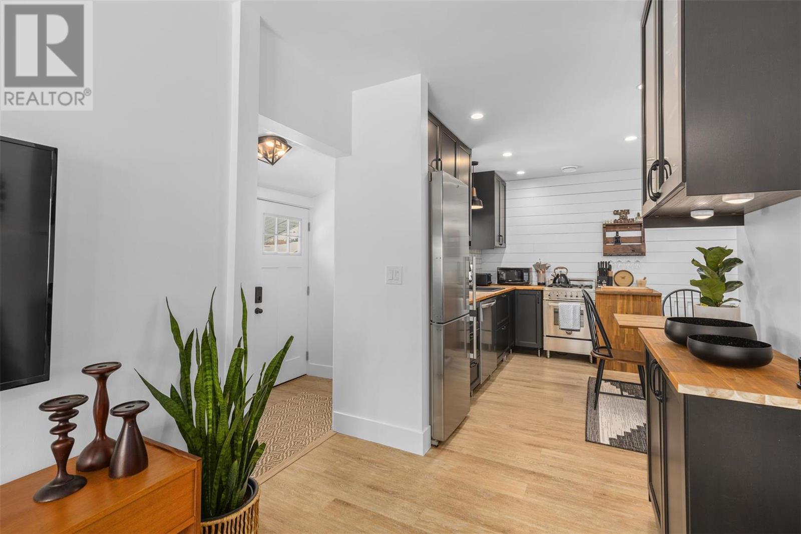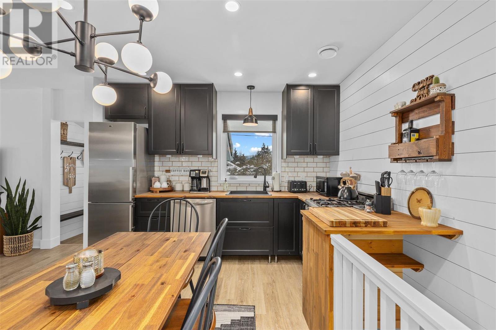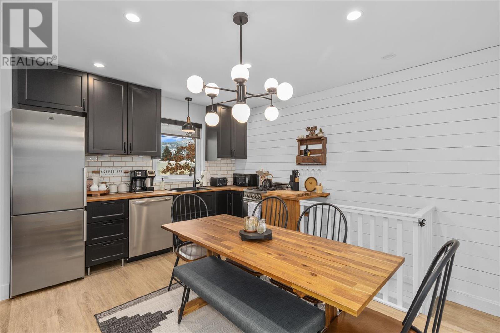Charming 1940's character home, located within walking distance of Summerland main town shopping, schools, parks, wineries and amenities. Walk in the door to your adorable mudroom then step into an open concept main floor, perfect for entertaining, large windows create tons of natural lighting. Gorgeous updated kitchen with high end gas stove, stainless steal appliances, butcher block countertops, ship lap and mid century lighting. Modern esthetic with old school charm. Easy to maintain vinyl flooring, high end pull down blinds. Half bath conveniently located upstairs with massive skylight. Partially finished basement has bedroom perfect for guests or office, tons of storage. Fully fenced corner lot, large metal gazebo and surrounded by mature landscaping. Single detached garage with attached workshop plus room for additional parking. Features keyless entry with security cameras. With 2 living rooms and 4 bedrooms plenty of room for a growing family. A MUST SEE, 10/10. (id:22211)
