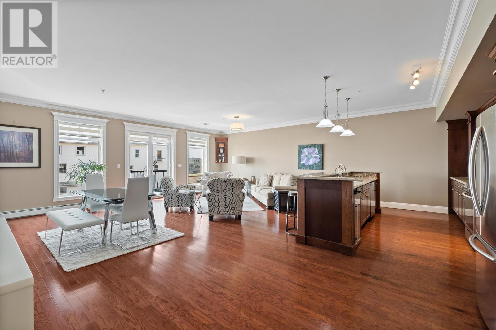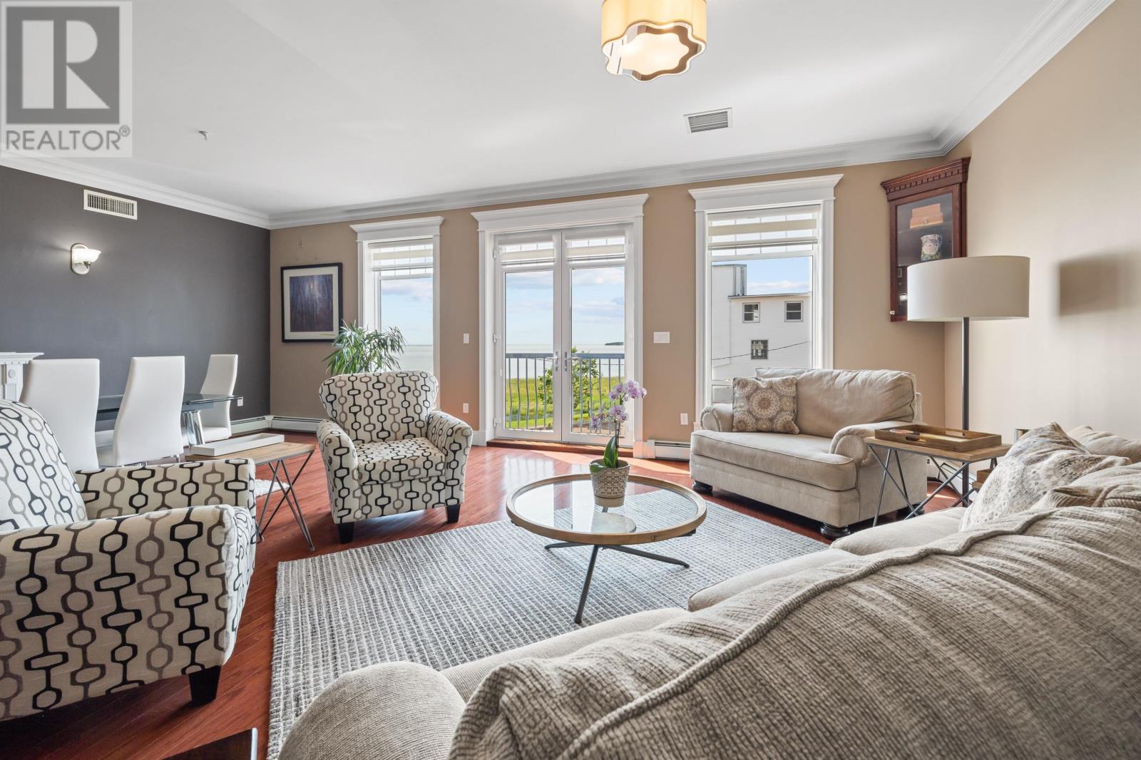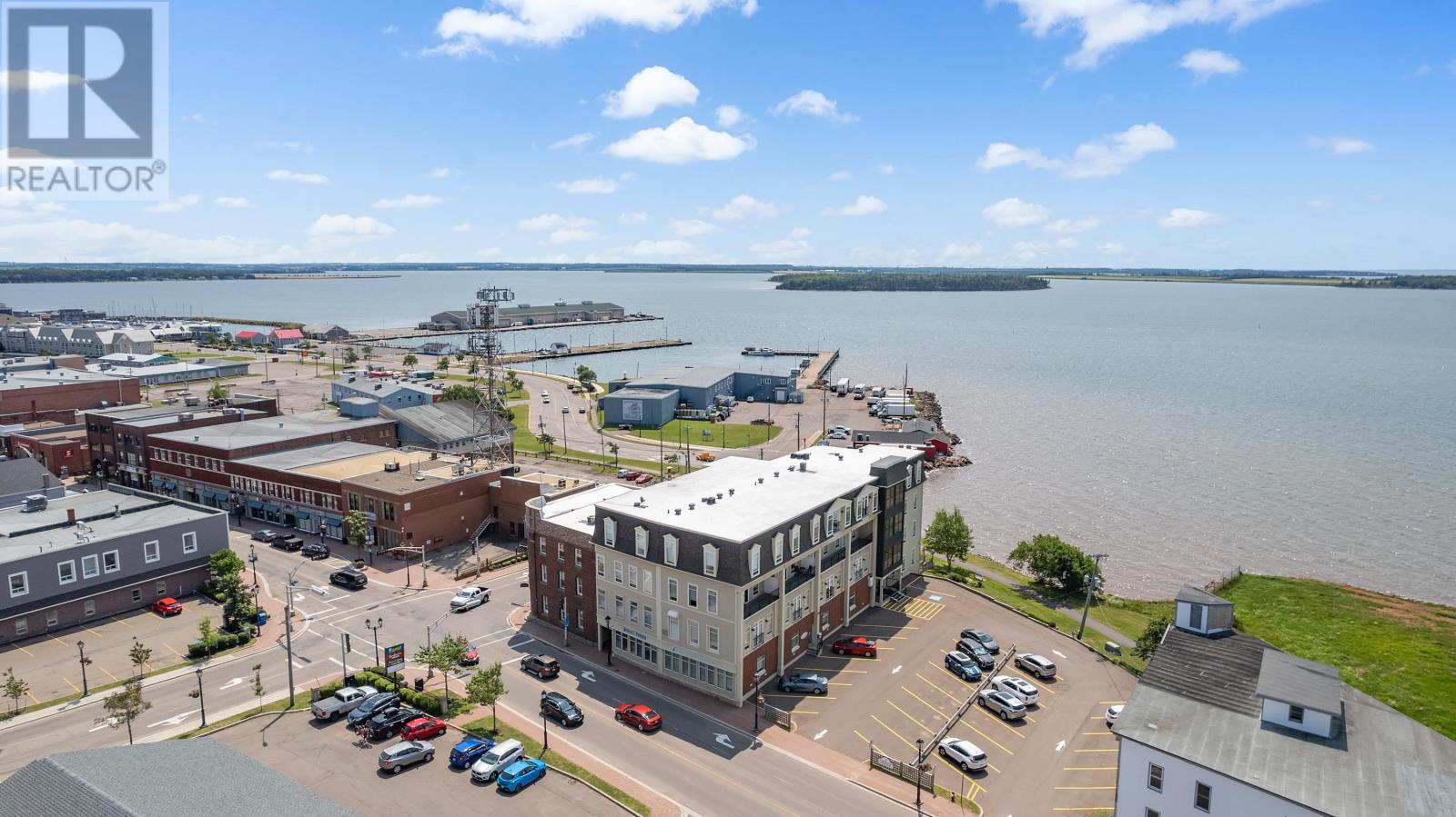 Welcome to 8 Queen street, situated in a highly sought after Summerside area, this condo offers breathtaking views of the waterfront from every window. Boasting over 2,000 square feet of well designed living space, this condo provides ample room for all lifestyle needs. The open concept layout and 10 foot high ceilings create the most elegant of atmospheres. Enjoy waking up next to Samuels Coffee shop and walking the waterfront boardwalk every morning out your front door. The condo features a gourmet kitchen with high end appliances and modern finishes. The primary bedroom comes complete with full 4 piece ensuite, oversized walk-in closet and stunning views from the floor to ceiling custom windows. This unit comes complete with an additional den or living area, storage room, 2 private parking spaces, 2 private balconies and much more. (id:22211)