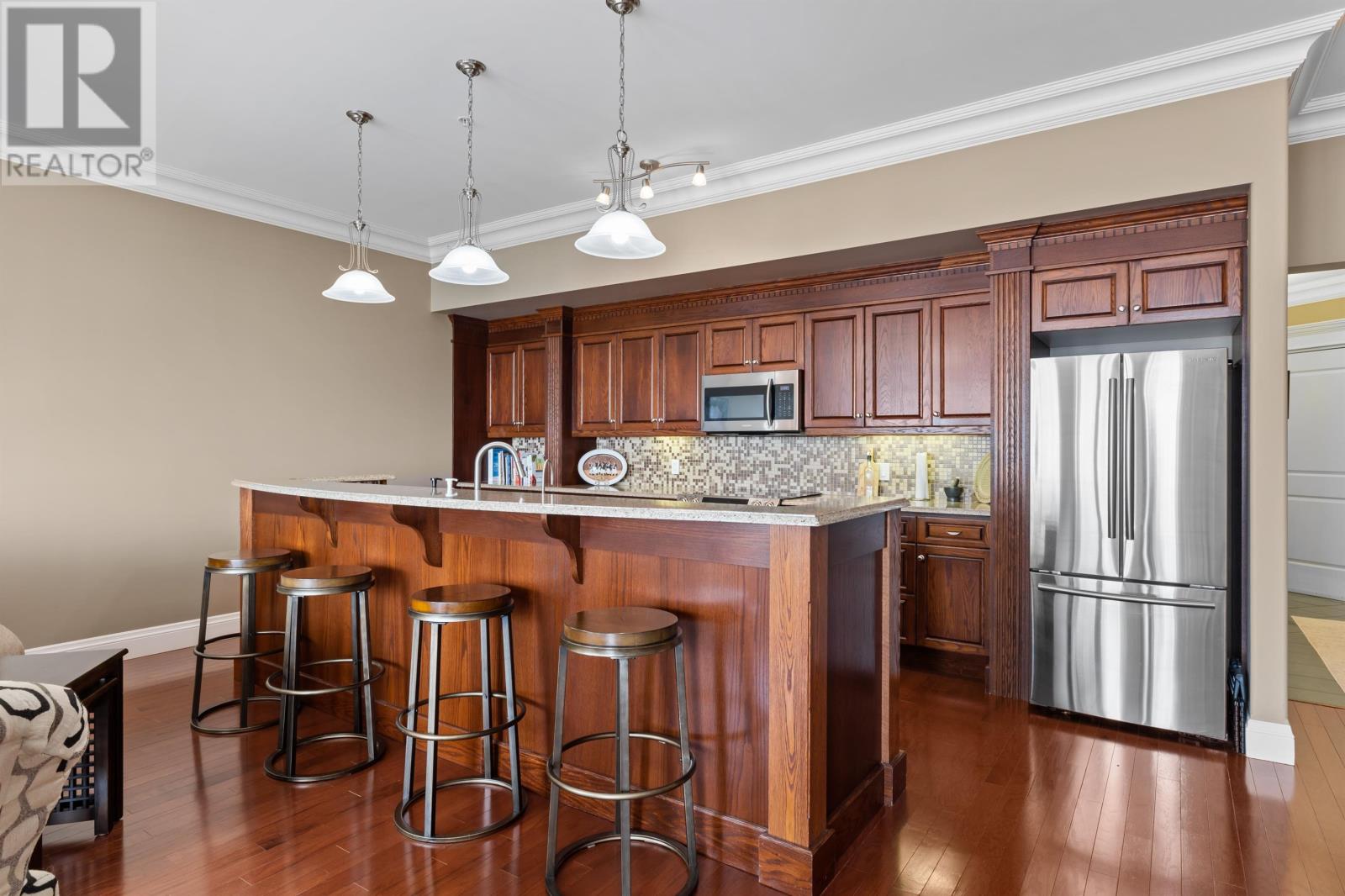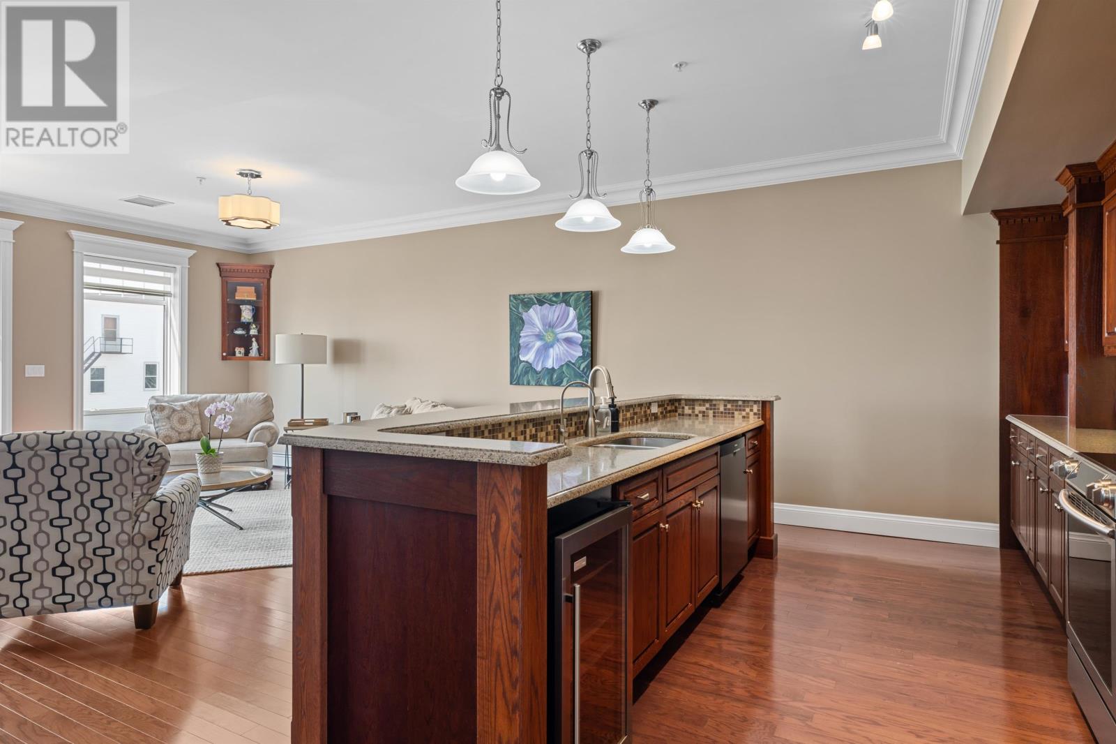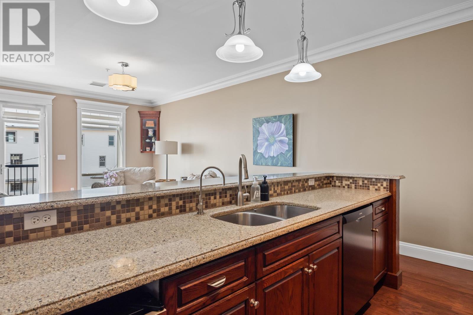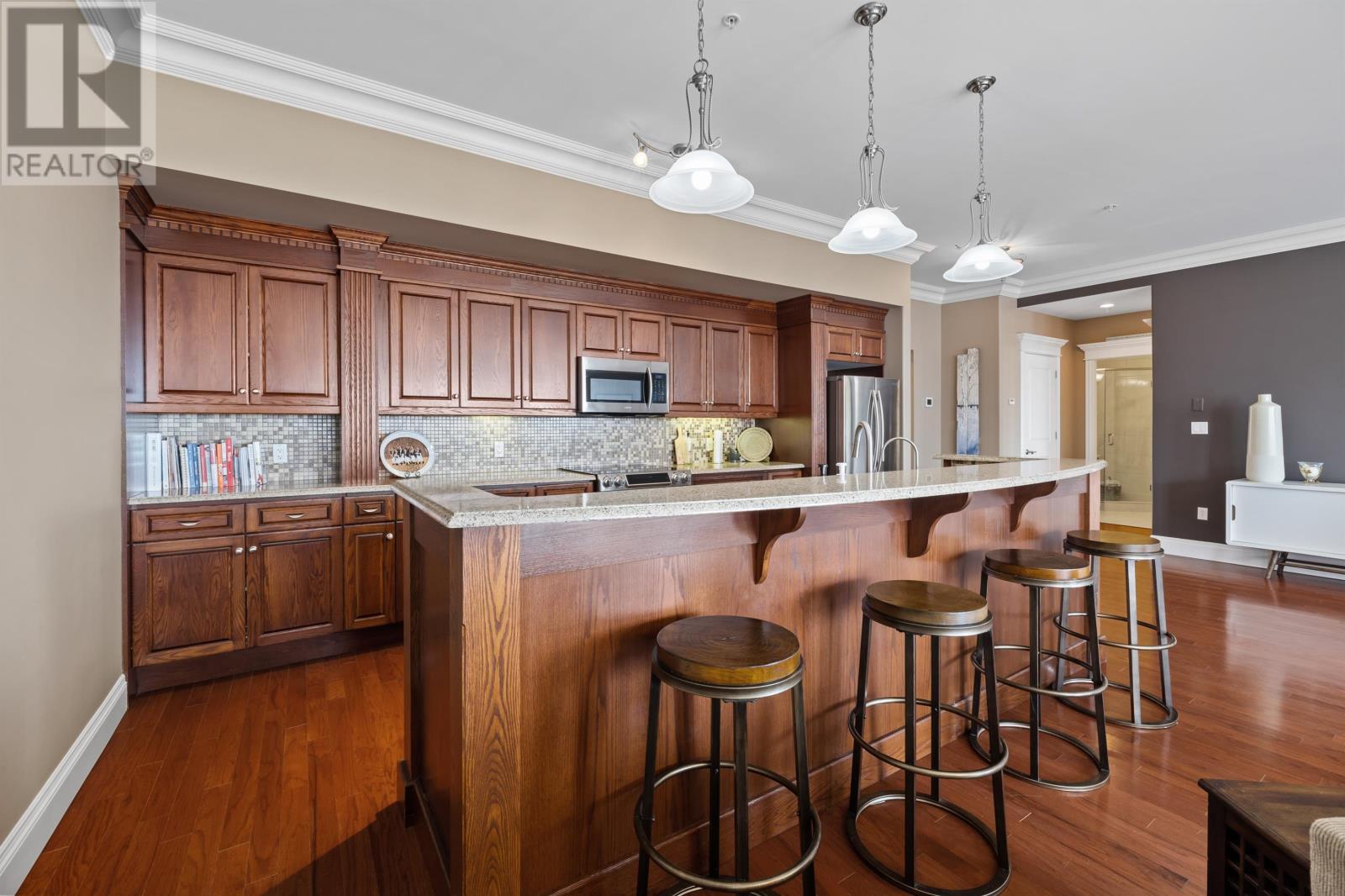 Welcome to 8 Queen street, situated in a highly sought after Summerside area, this condo offers breathtaking views of the waterfront from every window. Boasting over 2,000 square feet of well designed living space, this condo provides ample room for all lifestyle needs. The open concept layout and 10 foot high ceilings create the most elegant of atmospheres. Enjoy waking up next to Samuels Coffee shop and walking the waterfront boardwalk every morning out your front door. The condo features a gourmet kitchen with high end appliances and modern finishes. The primary bedroom comes complete with full 4 piece ensuite, oversized walk-in closet and stunning views from the floor to ceiling custom windows. This unit comes complete with an additional den or living area, storage room, 2 private parking spaces, 2 private balconies and much more. (id:22211)