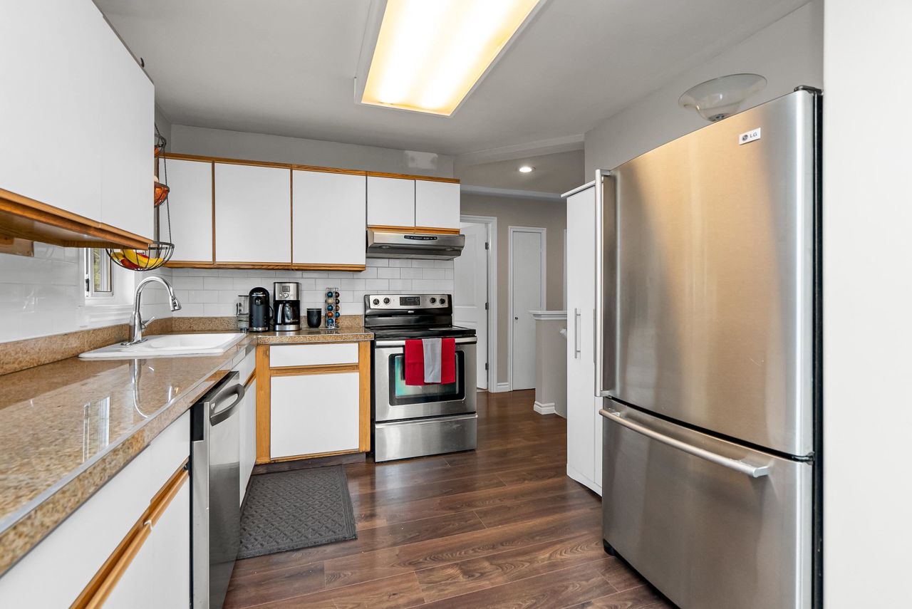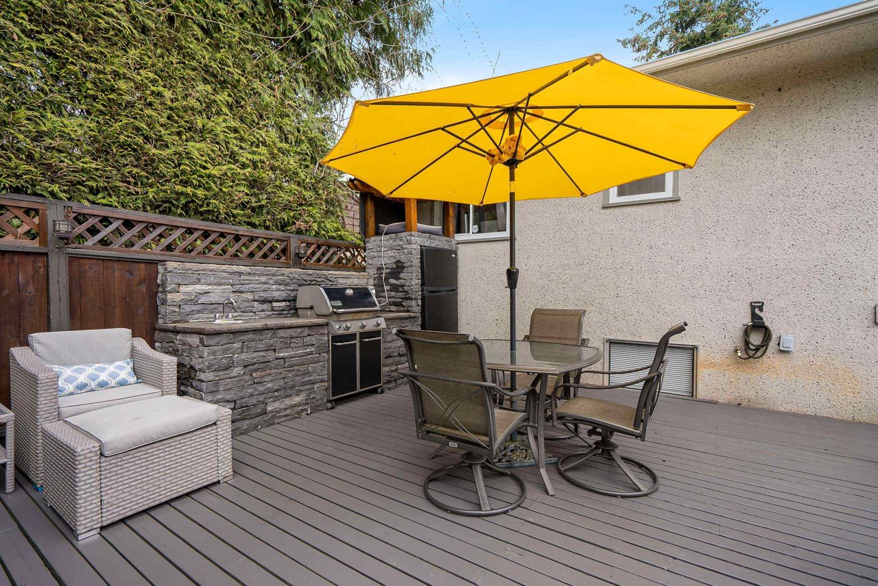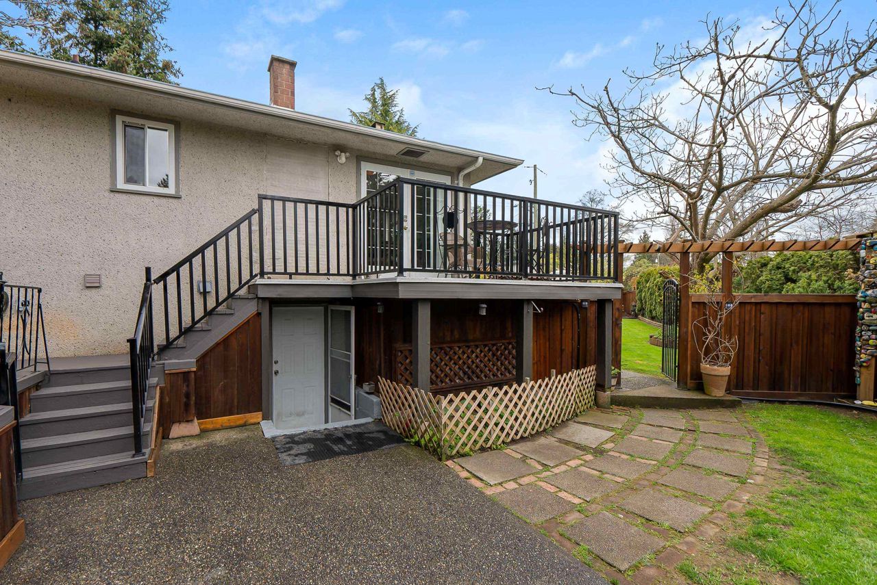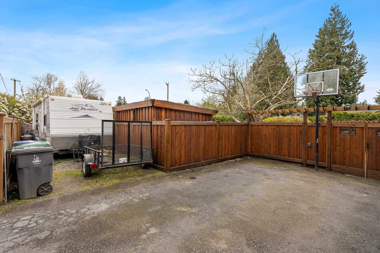 Incredible opportunity to own in central Surrey area. This very private 8,000 sq/ft corner lot home is centrally located in a family-friendly neighborhood, directly across from Robson Park and Robson Ravine walking trails. The southern exposure back yard is an oasis, beautifully fenced, with two patios, and an outdoor kitchen for entertaining. There are also several fruit trees and multiple vegetable and flower gardening areas. Features of the renovated 3-bedroom 1 and ½ bath home, are a large master bedroom with a walk-in closet / office, fresh paint, recent new roof and hot water tank. Full finished basement with separate entrance, easy to add a suite. Easy access to major routes and highways. It also comes with RV parking. Come and see this gorgeous house!