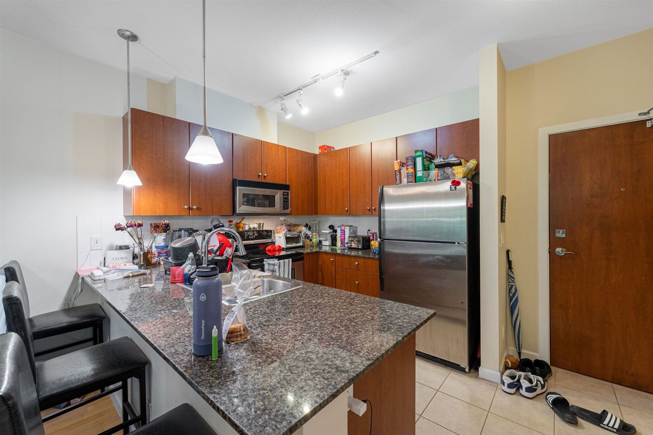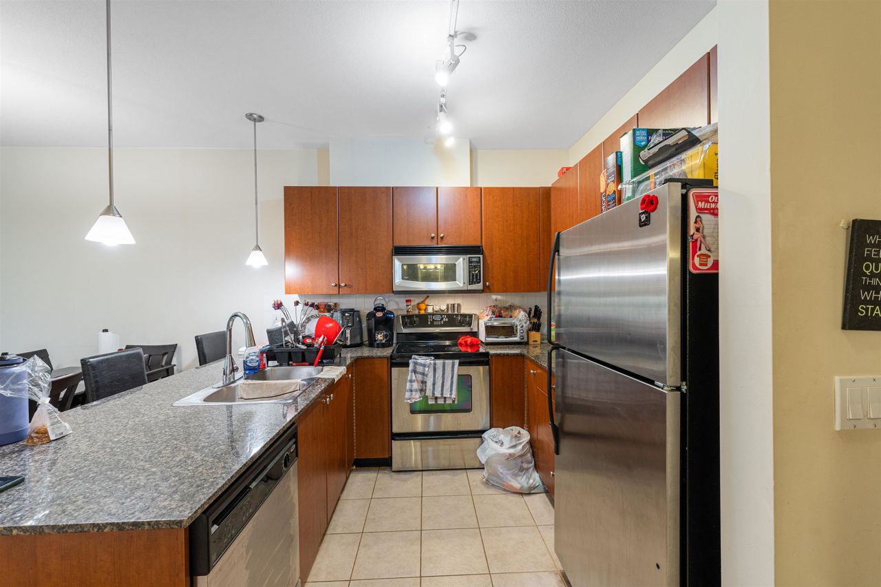 Stunning 1 Bedroom in CHARLTON PARK facing the courtyard! This unit features spacious open floor plan, gourmet chef's kitchen with quartz counter tops, s/s appliances, 9' high ceilings and lots of natural light. The complex offers a magnificent clubhouse with an outdoor heated pool, spa, steam room, change rooms, fully equipped fitness center, billiards tables room, games table, lounge area and kitchen facilities. PRIME location with walking distance to Guildford Mall, T&T supermarket, transit, schools, and many other shops and services. Downtown Vancouver is just half an hour away via Hwy 1. 1 Parking & 1 Storage Locker.