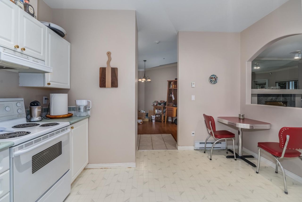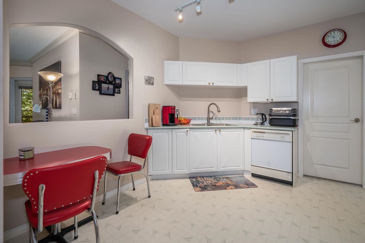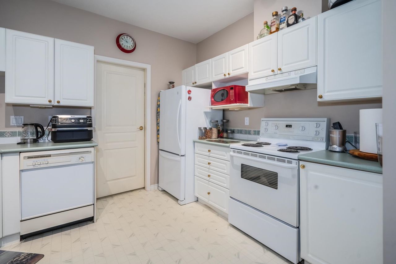 Welcome to Kingsbrook! Rarely available ground floor 1 bedroom & 1 bathroom unit on the quiet South side. Overlooks lush and peaceful protected greenspace. Fully rainscreened. Large kitchen with eating area, built in vacuum, crown molding, custom built in dresser organizer in bedroom. Potential for second bedroom. Don’t miss out on this incredible opportunity - Call Today!