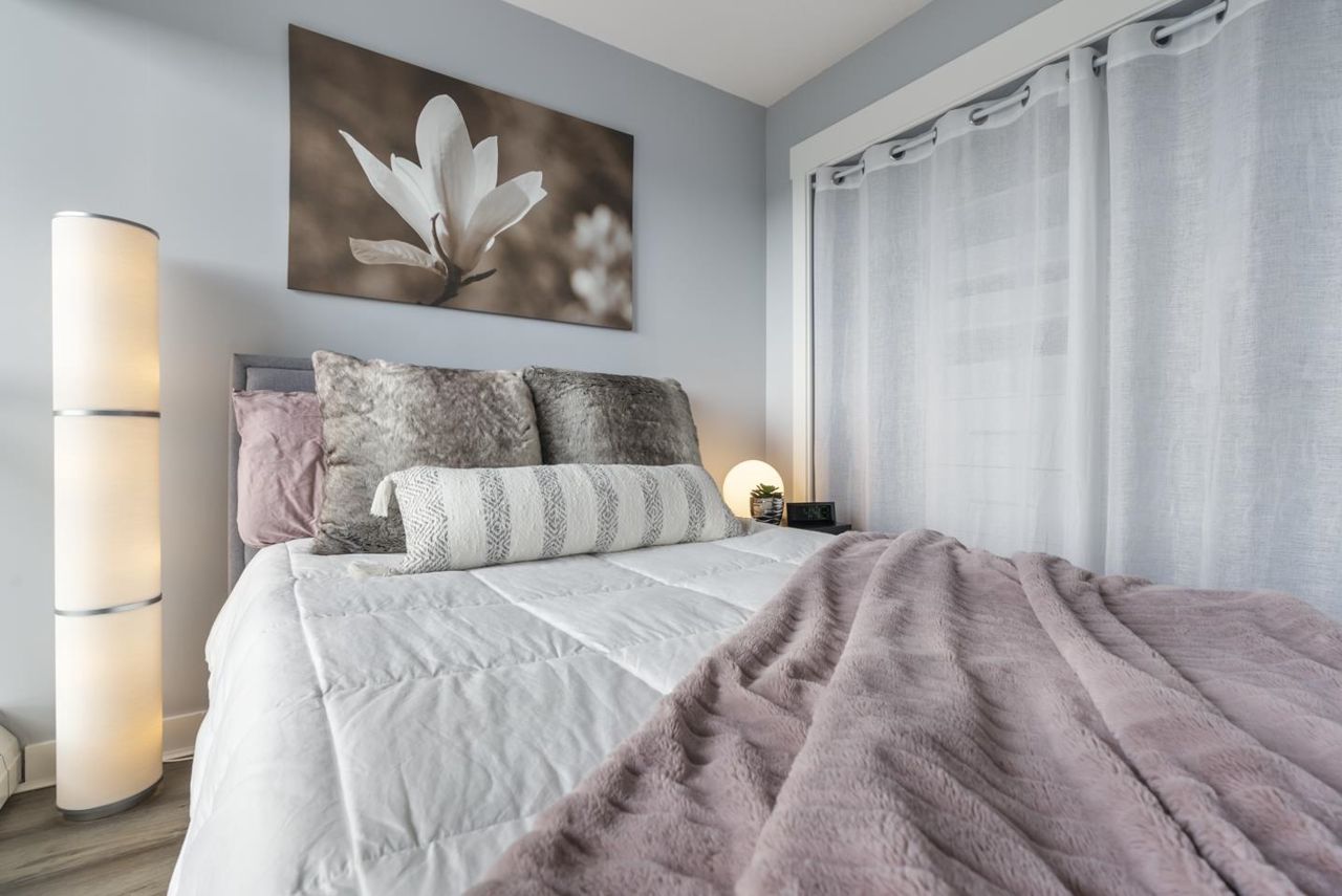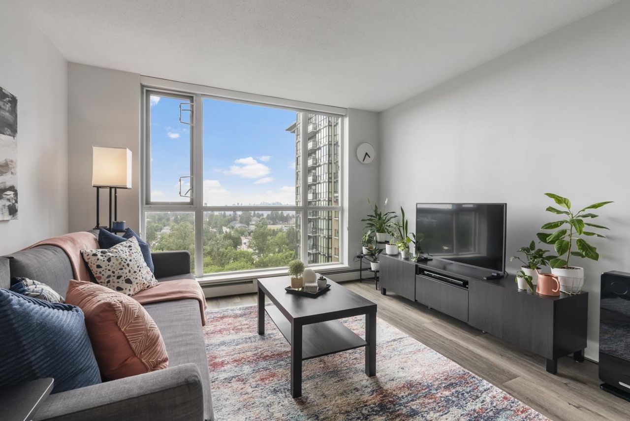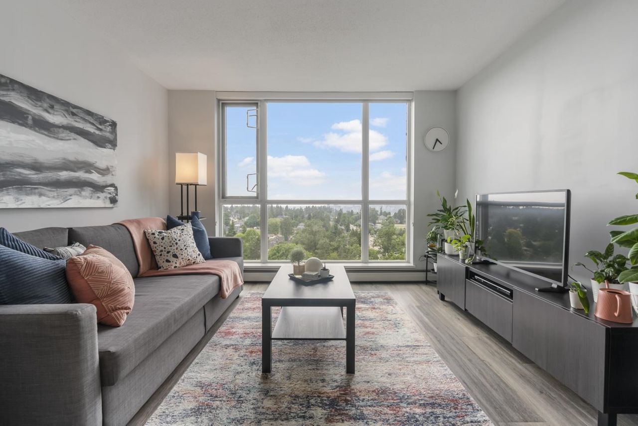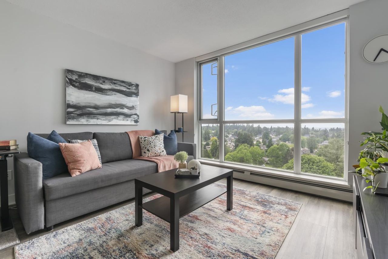 Tastefully updated 1BR+Den 1BTH North Surrey condo. Fresh paint & caulking throughout welcomes you into your stylish 15th-floor residence. New laminate flooring & underlay lead towards a modern living area illuminated by dazzling floor-to-ceiling windows with newer shades & screens. The sophisticated, gourmet kitchen features brand-new stainless steel appliances gleaming against glass-accented cabinetry & quartz-topped counters. Your tranquil bedroom offers a large closet with upgraded organizers & a private balcony boasting sweeping views of the city below. Your City Point home boasts secured underground parking, a fully equipped gym, a lush green courtyard & media lounge with fireplace. Perfectly located steps from Gateway Skytrain & Nesters Market with easy access to Patullo Bridge.