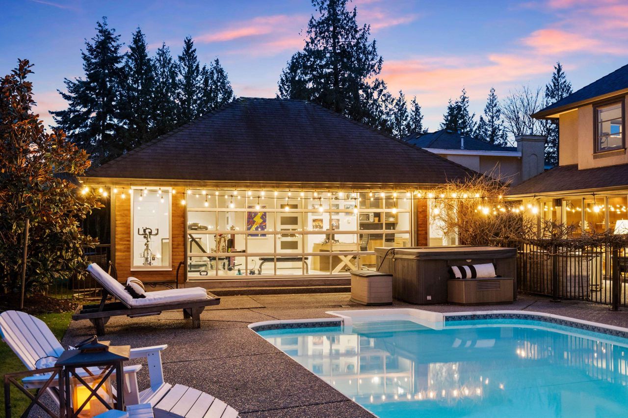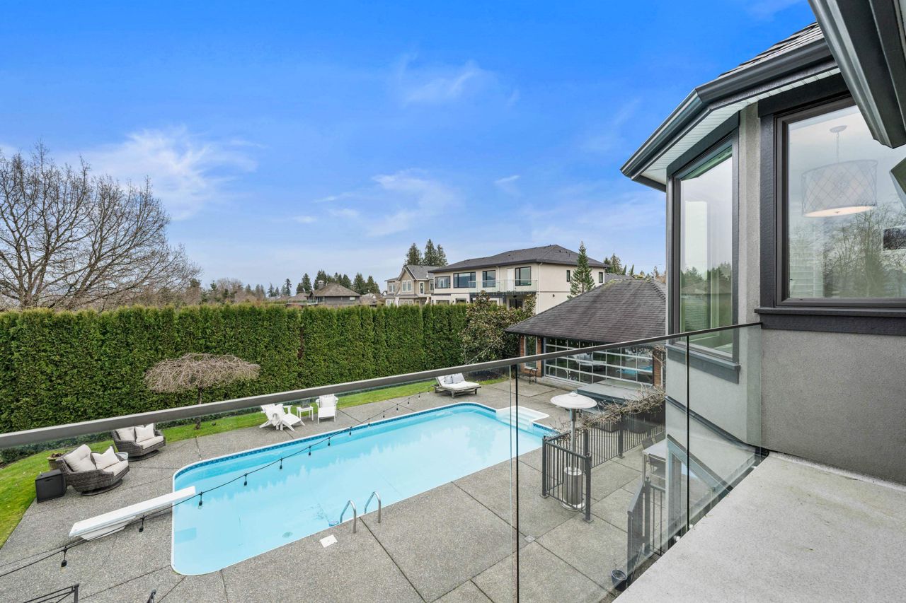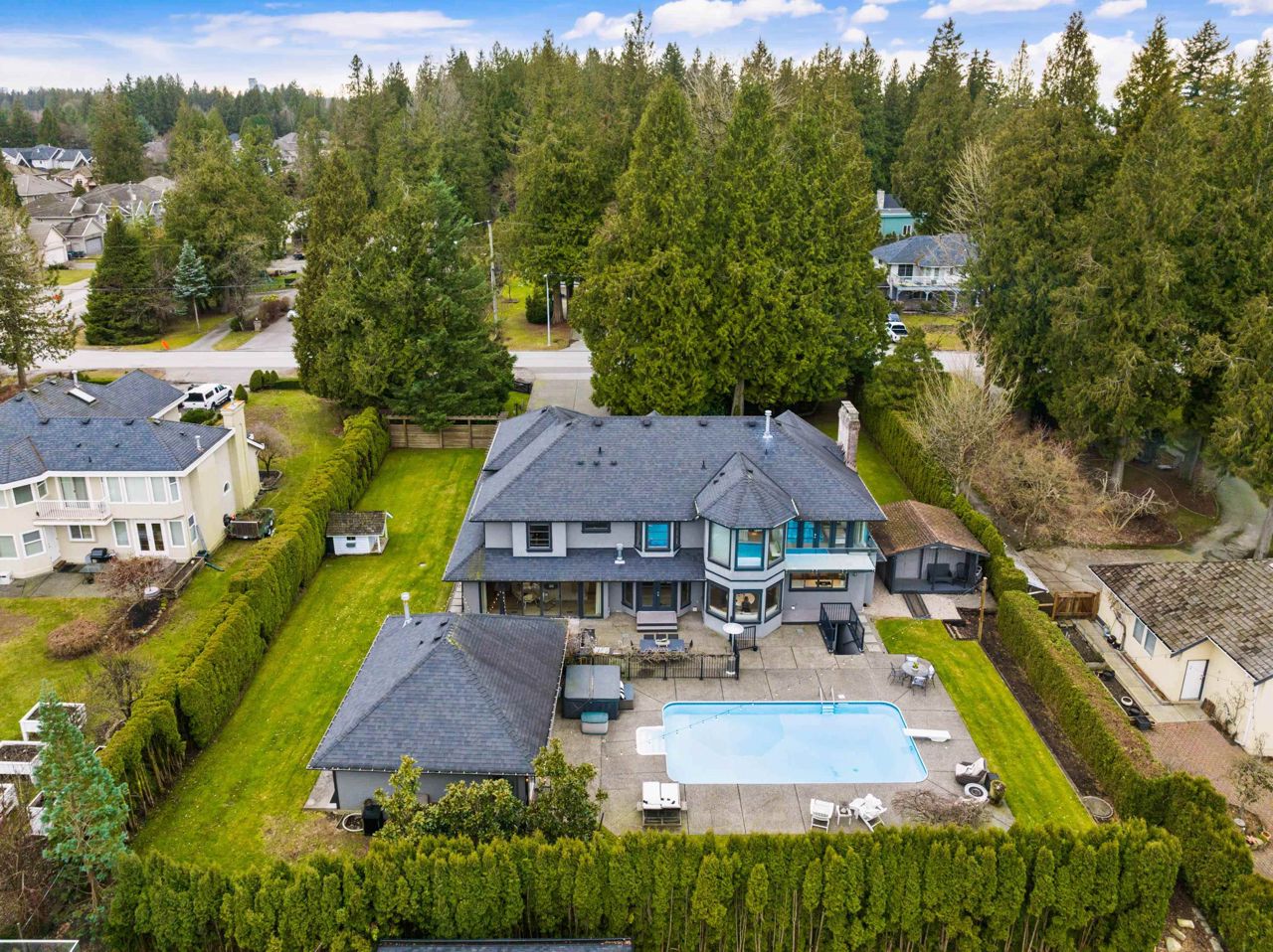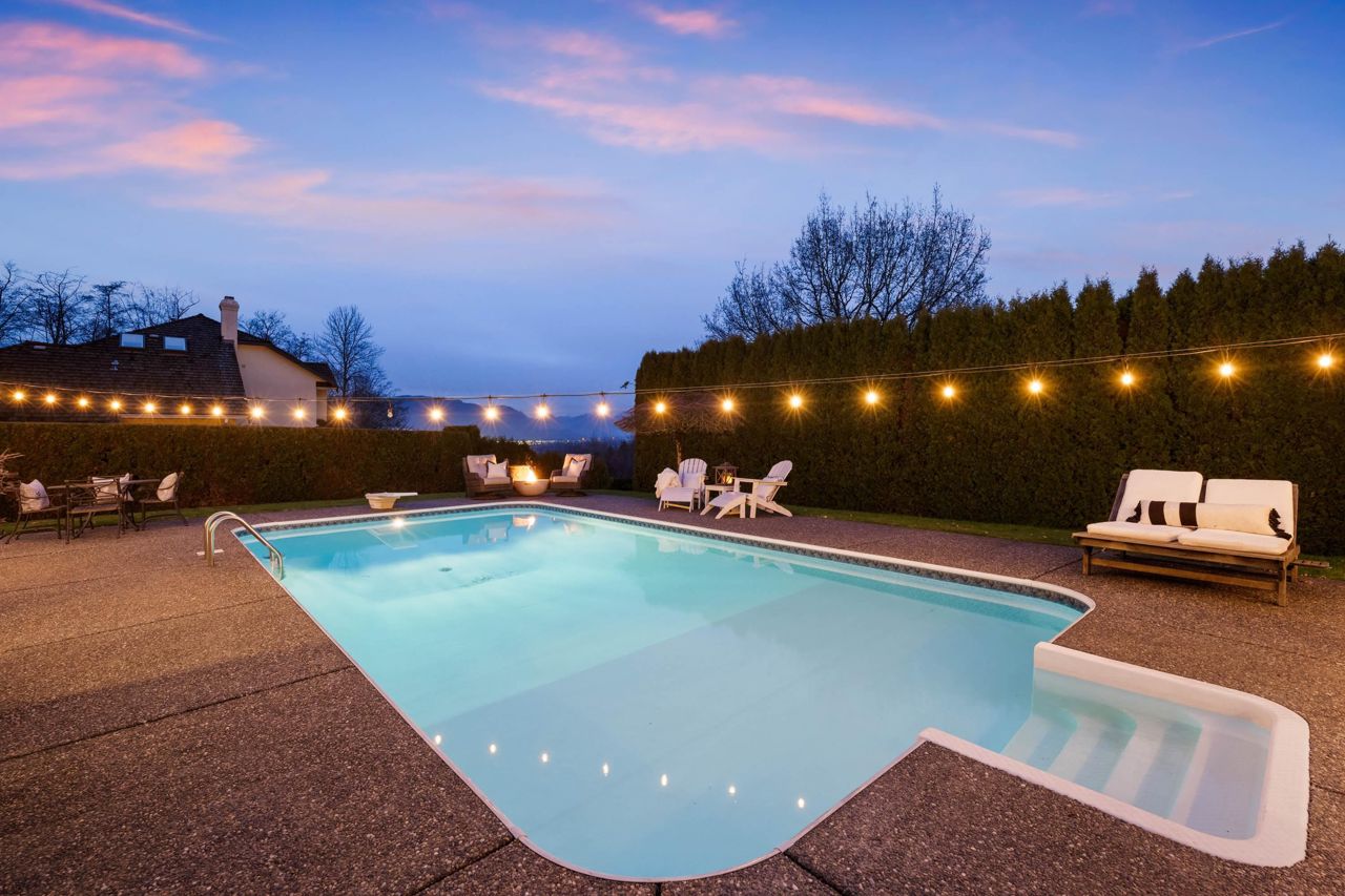 A Rare opportunity to own one of the finest residences in Fraser Heights.This stunning exclusive home is nestled on a beautiful private VIEW lot and is breathtaking from the moment you walk in the door.The open concept is an Entertainer's dream w/a thoughtful design feat a gourmet kitchen w/huge centre island & professional grade appl.Oversized custom windows & doors offer great flow to the outdoor patios.A private oasis w/swimming pool,detached 600+ sq ft cabana(gym/office),RIVER & VIEWS of Golden Ears Mountains.Elegant main floor livrm,4 bdrms & den upstairs capturing the stunning VIEWS.Tile & Hardwood,custom staircases,designer baths & part bsmnt.This home radiates timeless sophistication & offers all the space for friends and family.If you’re looking for a special home this is the one!