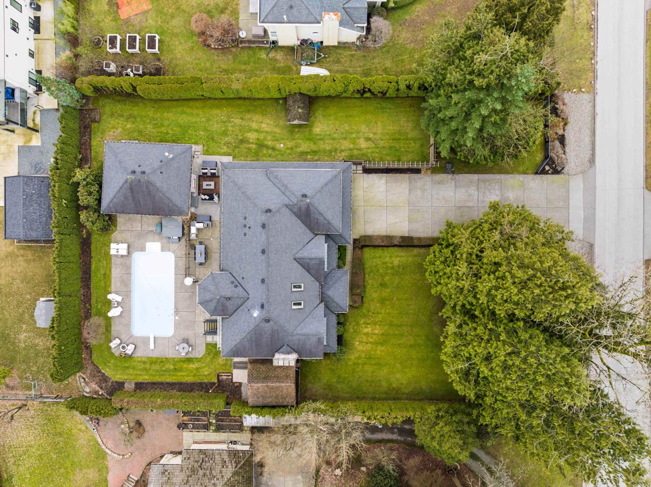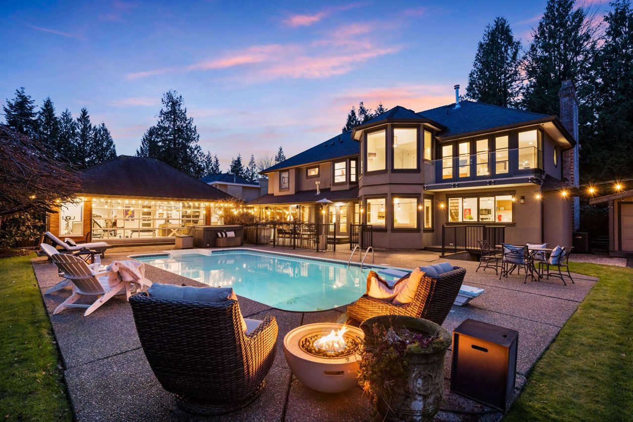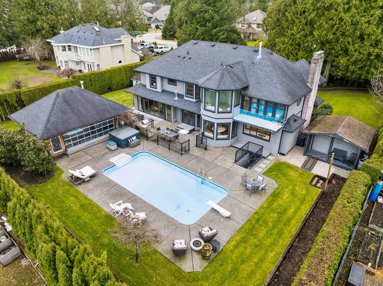 A Rare opportunity to own one of the finest residences in Fraser Heights.This stunning exclusive home is nestled on a beautiful private VIEW lot and is breathtaking from the moment you walk in the door.The open concept is an Entertainer's dream w/a thoughtful design feat a gourmet kitchen w/huge centre island & professional grade appl.Oversized custom windows & doors offer great flow to the outdoor patios.A private oasis w/swimming pool,detached 600+ sq ft cabana(gym/office),RIVER & VIEWS of Golden Ears Mountains.Elegant main floor livrm,4 bdrms & den upstairs capturing the stunning VIEWS.Tile & Hardwood,custom staircases,designer baths & part bsmnt.This home radiates timeless sophistication & offers all the space for friends and family.If you’re looking for a special home this is the one!