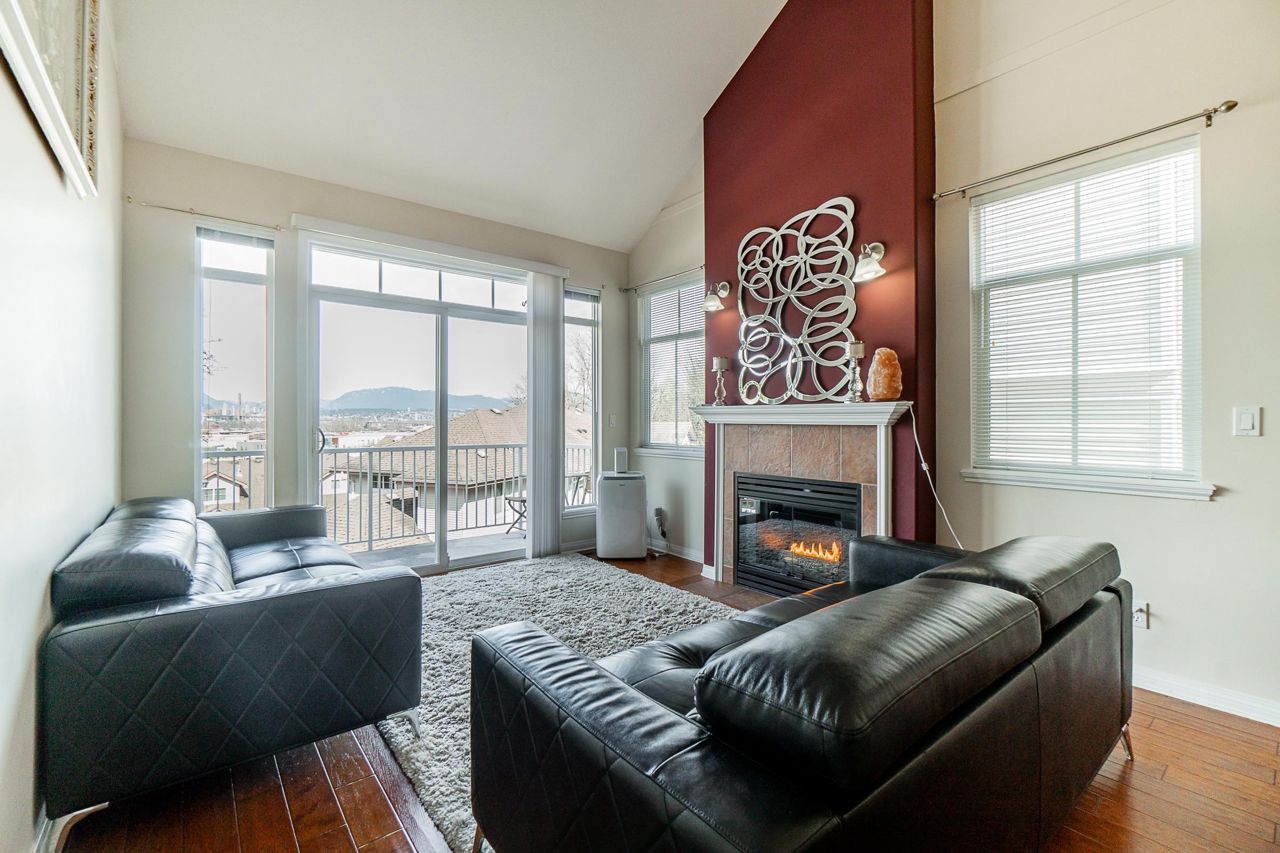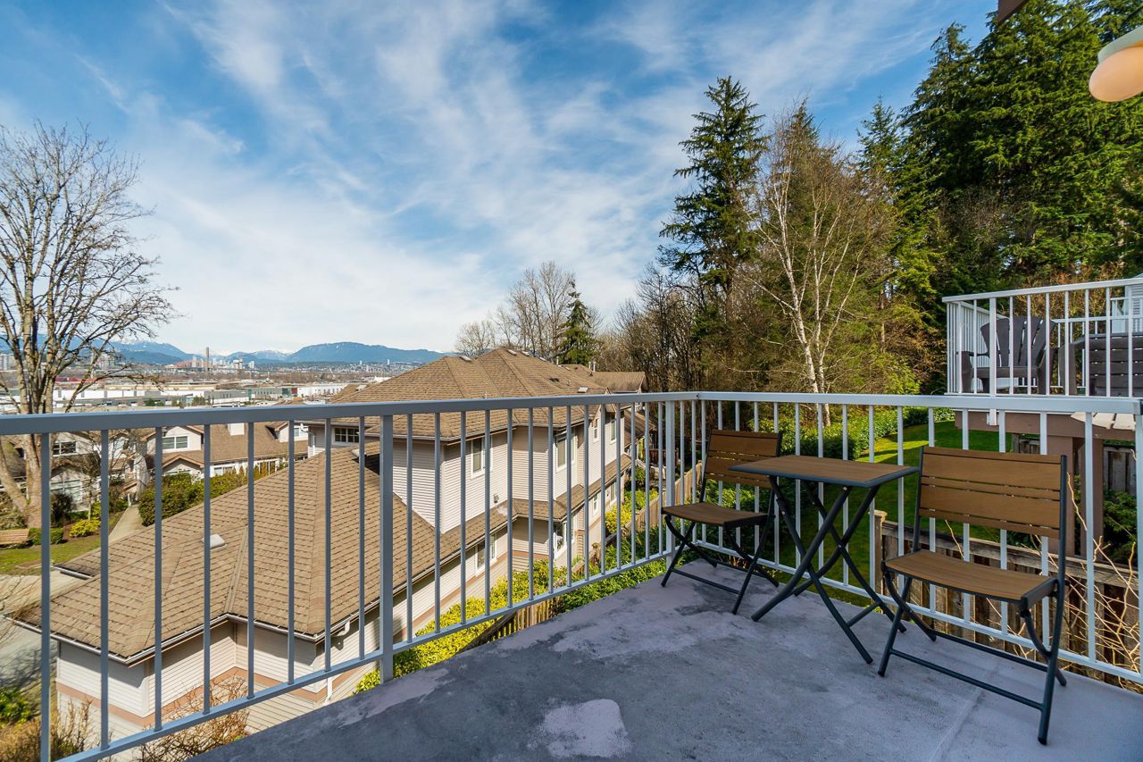 This is a 10/10! With 2,600+ sq.ft. of luxury, executive townhome living, this house is perfectly maintained and beautifully apportioned. With the Master on the main, there are 3 Bedrooms total and 4 Bathrooms with a fully finished basement, a main floor with custom hand-scraped floors and impressive vaulted ceilings in the living area. Situated at the high end of the complex lends to stunning cityscape views to the north of New Westminster and Burnaby. This is the size of home at an affordable price that you have been waiting for. Call today to book a showing. THIS UNIT HAS A NEW ROOF FULLY PAID. OPEN HOUSE SUN, MAY 14 2-4 pm.