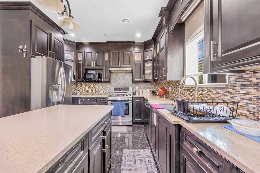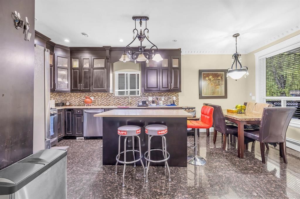 Step into the embrace of timeless elegance with this exquisite 2011 custom-crafted residence, nestled upon a sprawling 6600 sqft lot in a serene cul-de-sac.6 spacious bedrooms, 2 master sanctuaries with walk-in closets await upstairs. Granite grace welcomes in the foyer and kitchen, while laminate, tile, and quartz amplify the charm throughout. A versatile 1-2 bed ground-level suite with its entrance enhances the layout. Revel in the MASSIVE 1000 sqft covered patio, a canvas for countless future ventures. The 2-car garage flaunts a 240-volt outlet, extra sink, plus a 9-car driveway. The front exudes elegance with its stunning ledge-stone exterior. A heartbeat away from the skytrain & bus stop. Welcome to a home where every detail resonates with grace and promise.Call now for your showings!