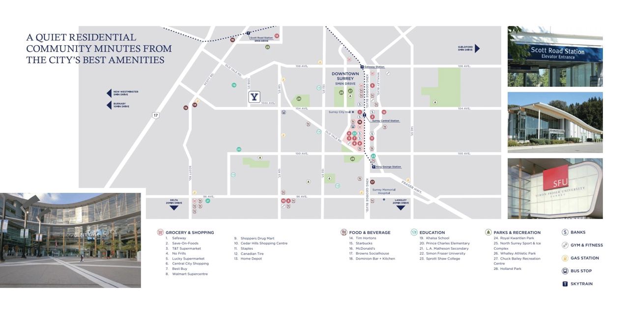 Introducing YALE GARDENS - BRAND NEW DEVELOPMENT, an exceptional townhome community in North Surrey. This 3-level, 4-bed, 3.5-bath home offers a modern open concept layout with high-end finishes, including stainless steel appliances, gas ranges, and quartz countertops, Custom Millwork, soft close cabinets. The separate entry suite provides flexibility and rental potential. Enjoy custom millwork, a built-in bar cabinet, energy-efficient heating & Air Conditioning. CENTRALLY LOCATED to nearby restaurants, groceries parks, & School, Scott Road, Surrey Central Station, Patullo Bridge, SFU Surrey & proposed UBC Campus, Guildford Mall. Amenities include a courtyard, playground, and gym. Don't miss this opportunity to own in the future Surrey Downtown masterplan. Call today for more information!