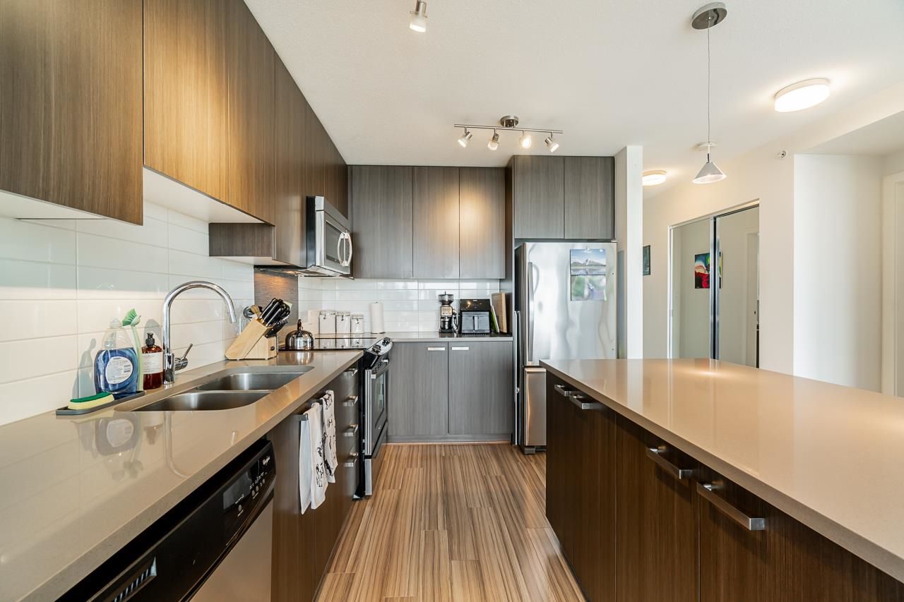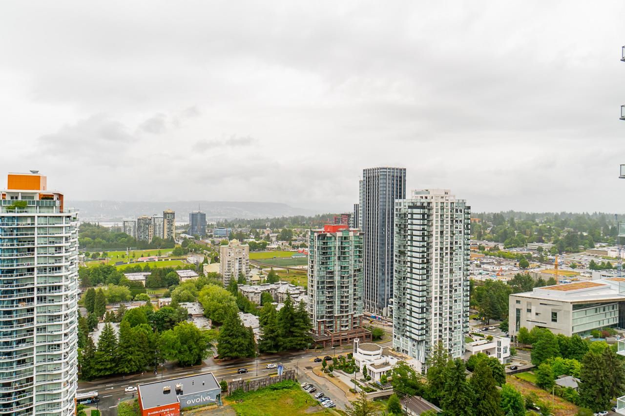 CALLING ALL INVESTORS & FIRST TIME HOME BUYERS. Discover the perfect urban retreat in downtown Surrey with this stylish 2-bed, 2-bath corner unit condo. Spanning 918 sqft, this well-designed residence offers an open concept layout flooded with natural light and showcasing breathtaking mountain and water views. Step inside to a welcoming living area that seamlessly blends with the dining space, providing a perfect setting for entertaining. Generous sized bedrooms, including a Primary Bed with its own ensuite bath. The modern kitchen boasts sleek stainless steel appliances and ample counter space, combining style and functionality. Easy access to shops, restaurants, entertainment venues, and public transportation. COMES WITH 2 PARKING & 2 STORAGE LOCKERS. Call today! This won't last!!