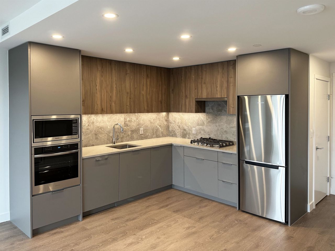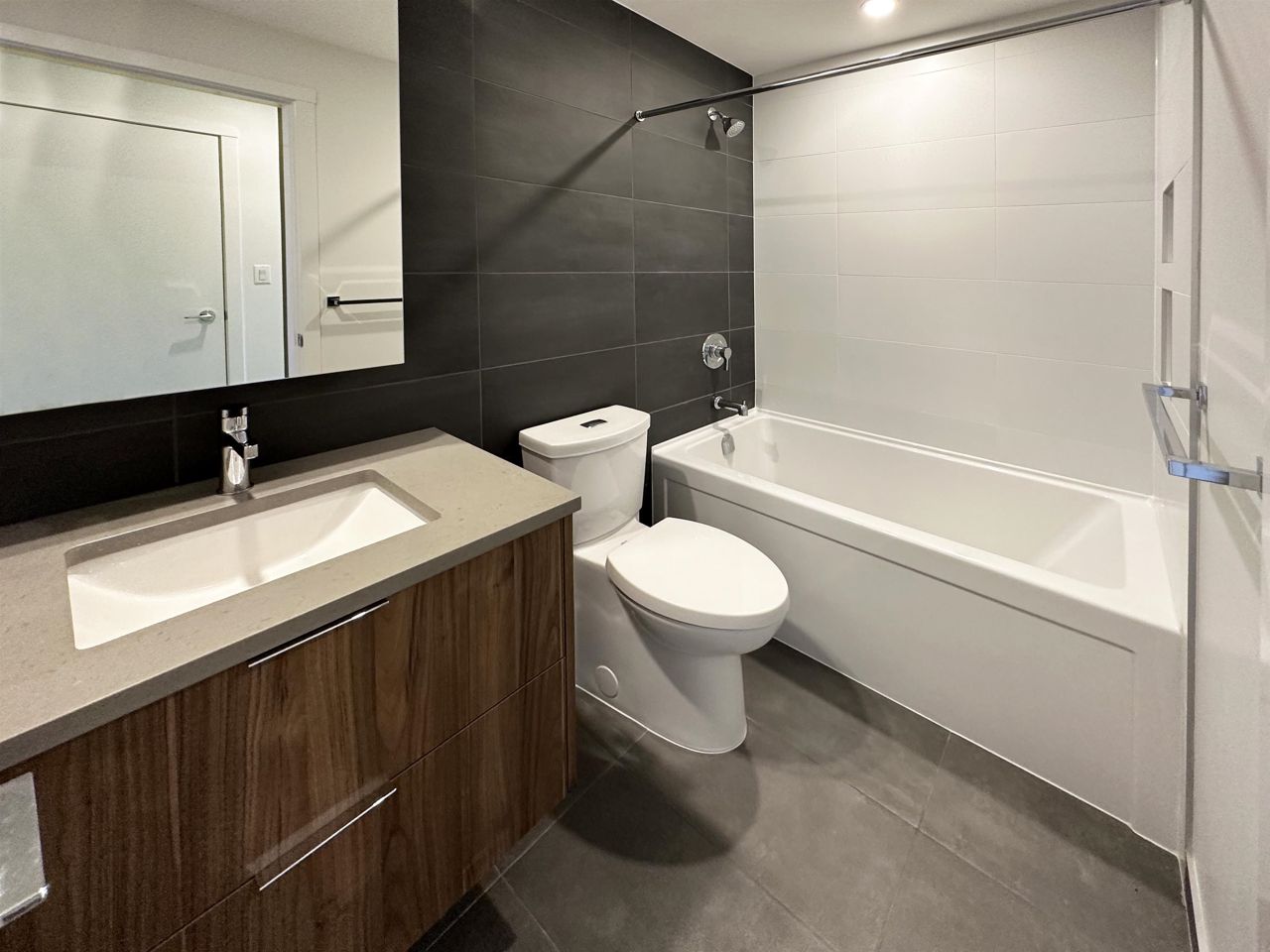 Bright and beautiful 1-besroom condo in The Holland - the newest addition to the Surrey skyline! Featuring 150 sq.ft. balcony, gas cook-top, built-in oven, quartz countertops and much more! Stay cool in Summer and warm in Winter with state of the art heat-pump. Situated within few steps to SFU campus, Surrey Centre, sky-train station and Holland Urban Park. Amenities include concierge service, gym, yoga studio, guest suite, indoor/outdoor social & dining lounge. Pleasure to show!
