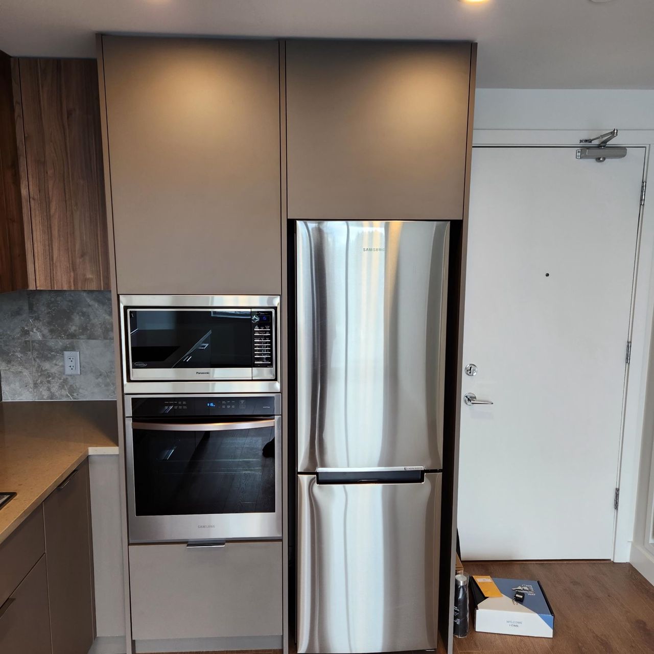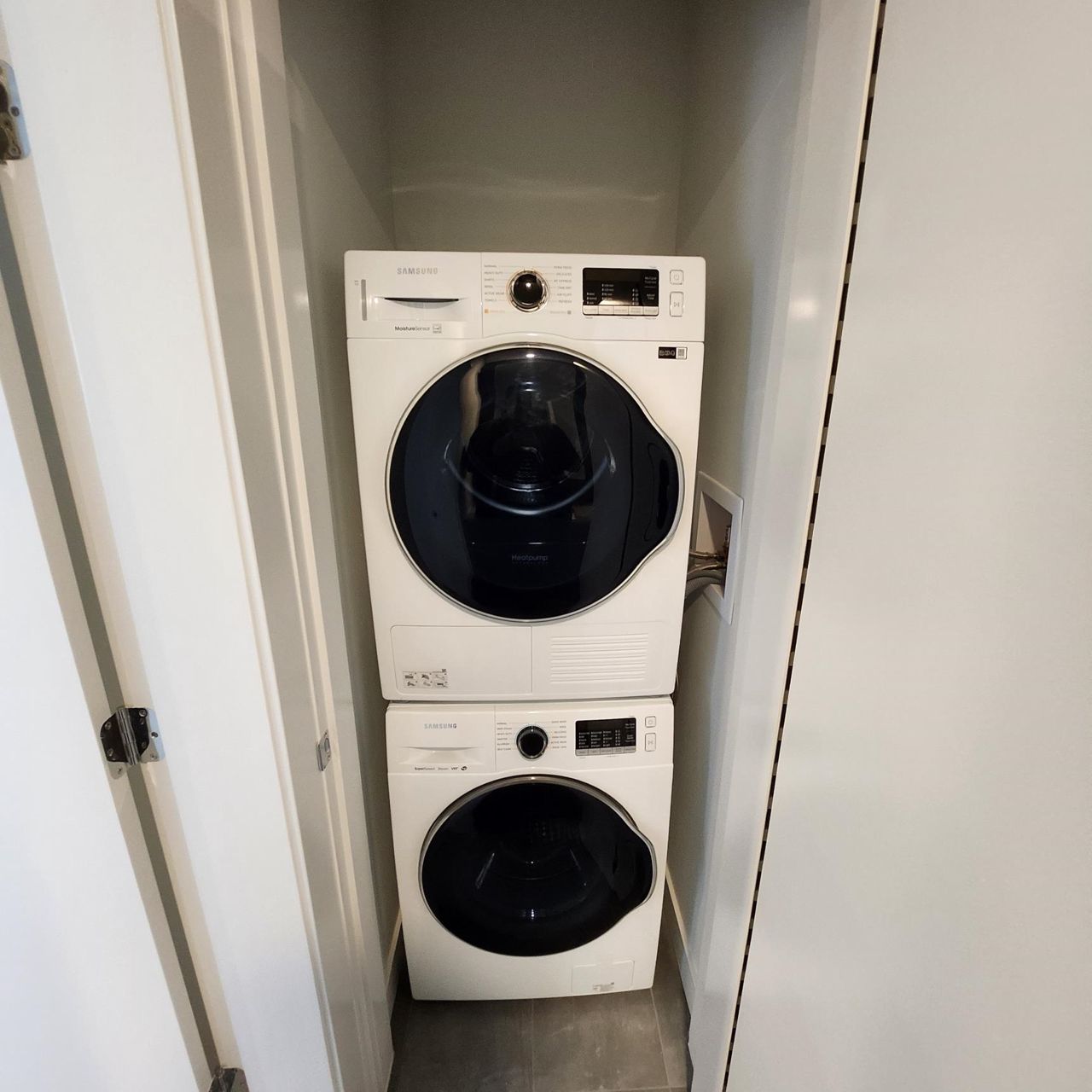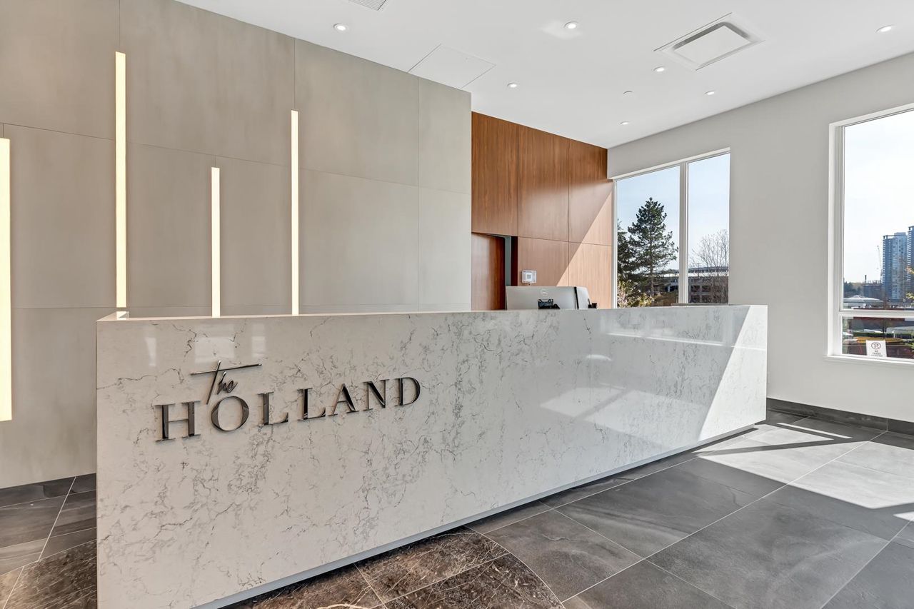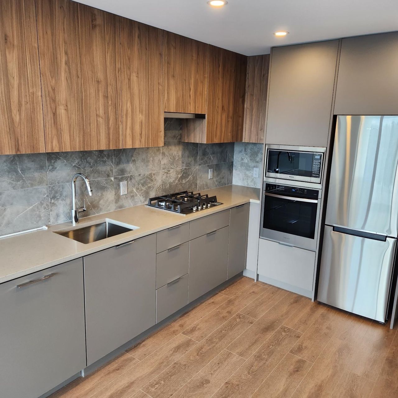THE HOLLAND by TOWNLINE in the heart of Surrey City Centre. 1 BED 1 BATH apartment on the 5th floor. Huge Balcony 150 sqft. Kitchen with Samsung appliance package, with an opulent tiled backsplash, under-cabinet lighting, and two-tone cabinets, suitable for all your storage needs. The primary bedroom offers room for a queen size bed with two end tables. A/C, over-height ceilings. 13,000 sf of building amenities include a Music room, Bussiness Lounge, Gym, and Social Lounge. The social lounge includes an indoor huge kitchen and lots of space for your guest to enjoy and outdoor BBQ stations. Just a walk to Surrey Central Skytrain stations & access to all of City Centre's retailers ensures an effortless day-to-day lifestyle. Rentals & Pets Allowed.