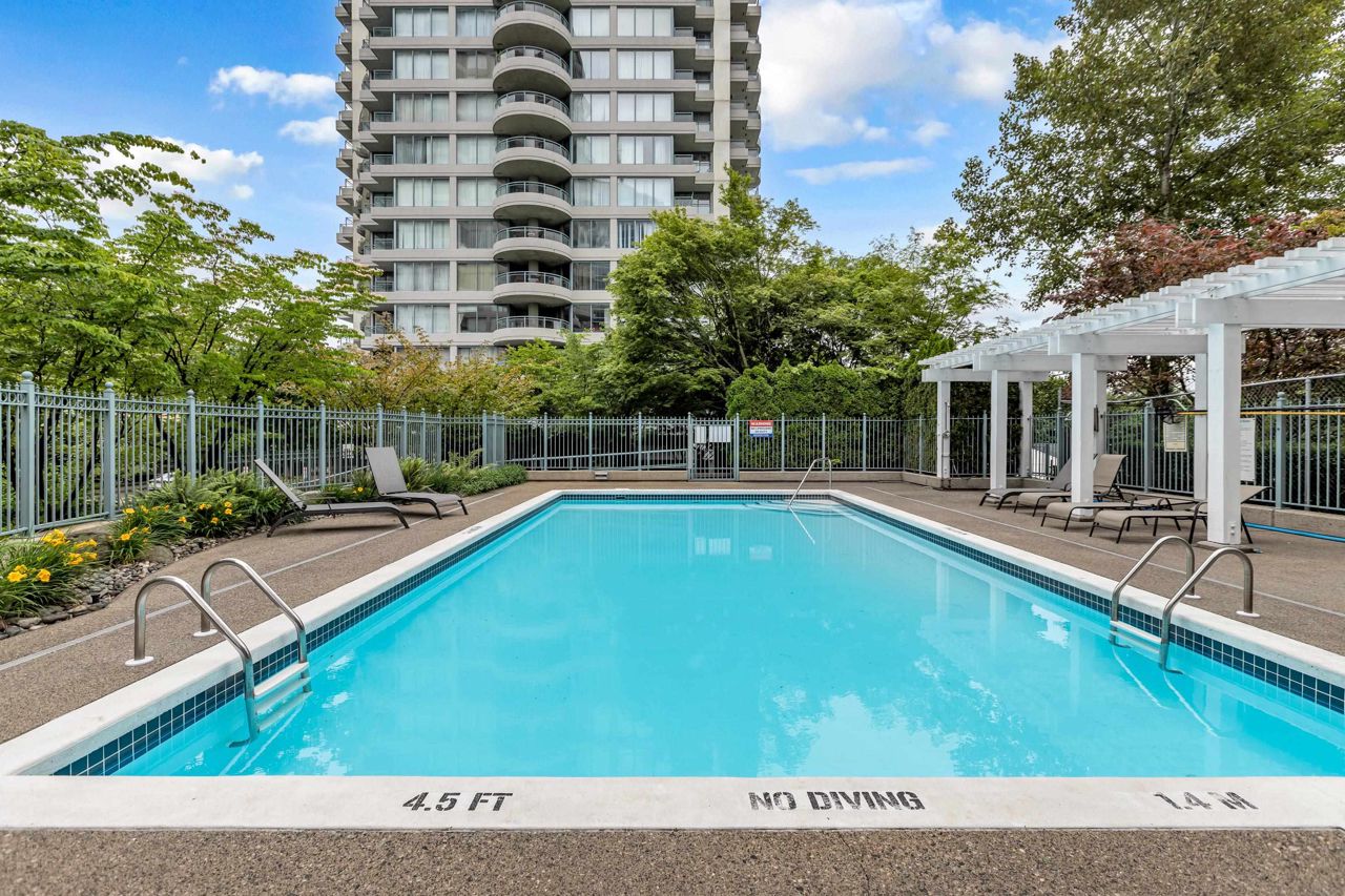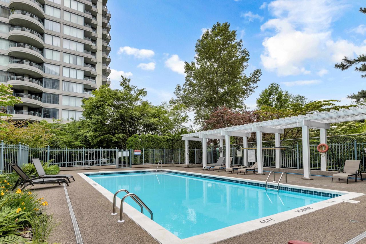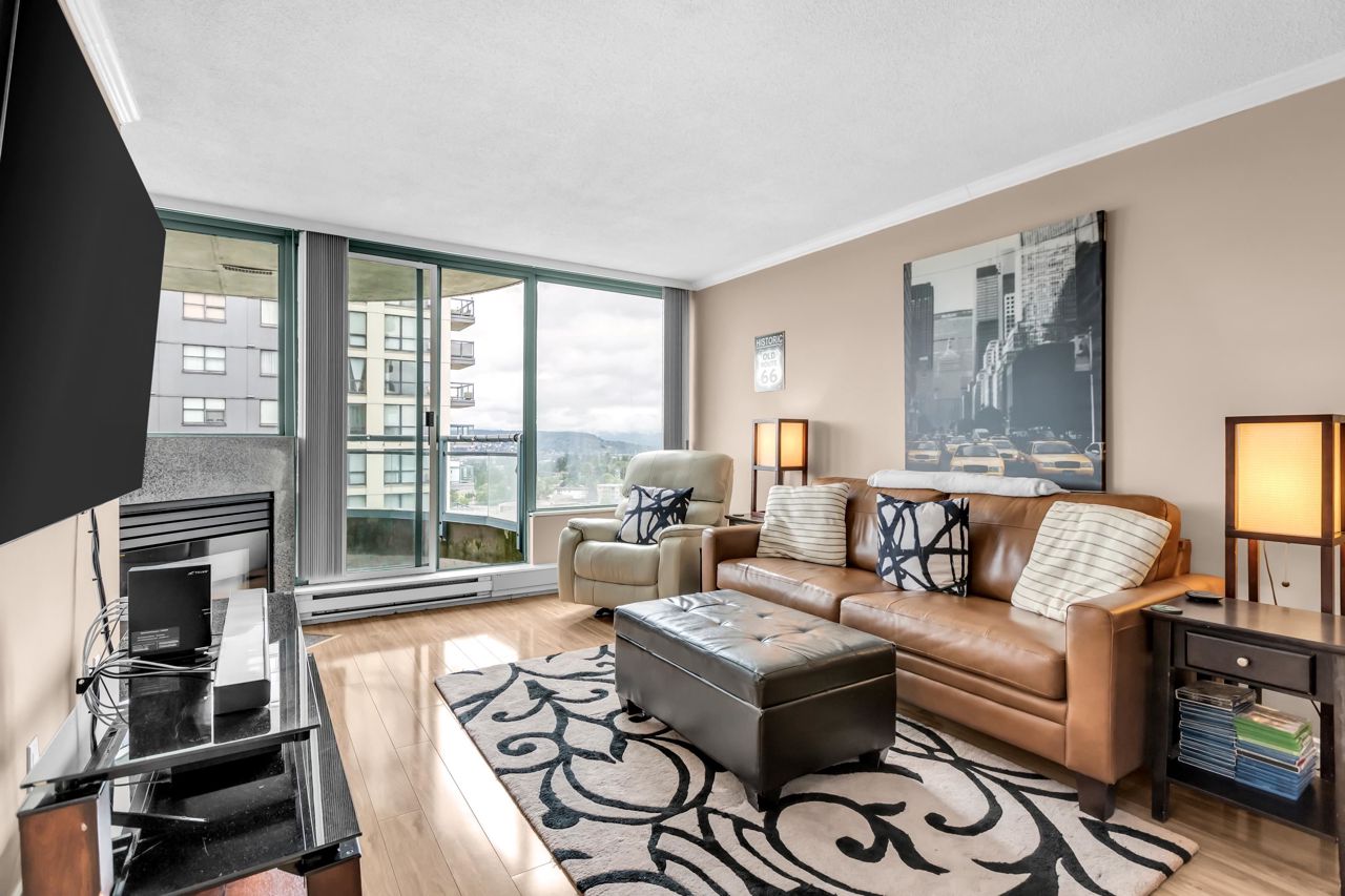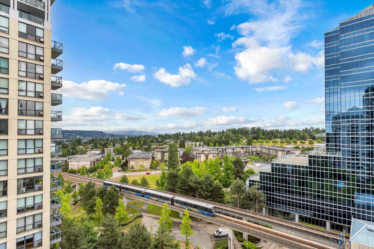 Stunning one bedroom condo in Cornerstone building. This functionally laid out home has been meticulously maintained and will not disappoint! Lots of closet space and in-suite laundry. Located above the city on the 13th floor the large floor to ceiling windows and over sized private covered patio showcase panoramic views of the North Shore Mountains, SFU and city! This home has 1 secure underground Parking stall and the building amenities are endless featuring an outdoor pool, gym, games room, hot tub and more! Commuting is a breeze with the Gateway Skytrain station just steps away, walking distance to Rec Center, parks, shopping restaurants and more!