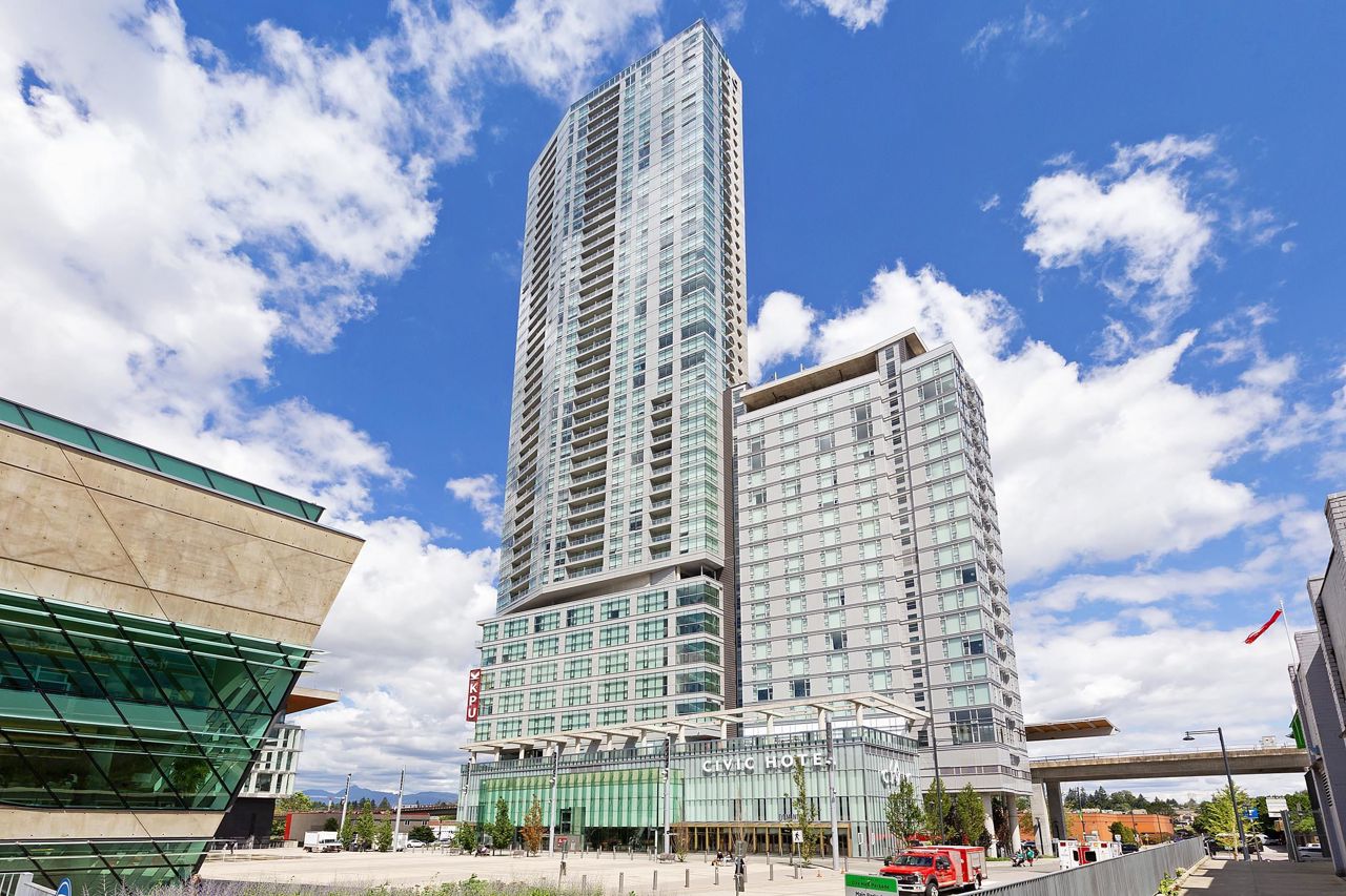 Welcome to 3 Civic Plaza, Surrey's tallest high-rise gem! Step into the grand lobby with access to Prado Café & Dominion Restaurant. Enjoy breathtaking mountain & city views through floor-to-ceiling windows. modern kitchen boasts European-style cabinets, stainless steel appliances, and quartz stone countertops. The spa-inspired bathroom exudes elegance. Stay comfortable with geothermal heating/cooling. Prime location near SkyTrain, City Center Mall, and universities. Includes 1 parking & 1 locker. Rentals Allowed . Elevate your lifestyle at 3 Civic Plaza today!
