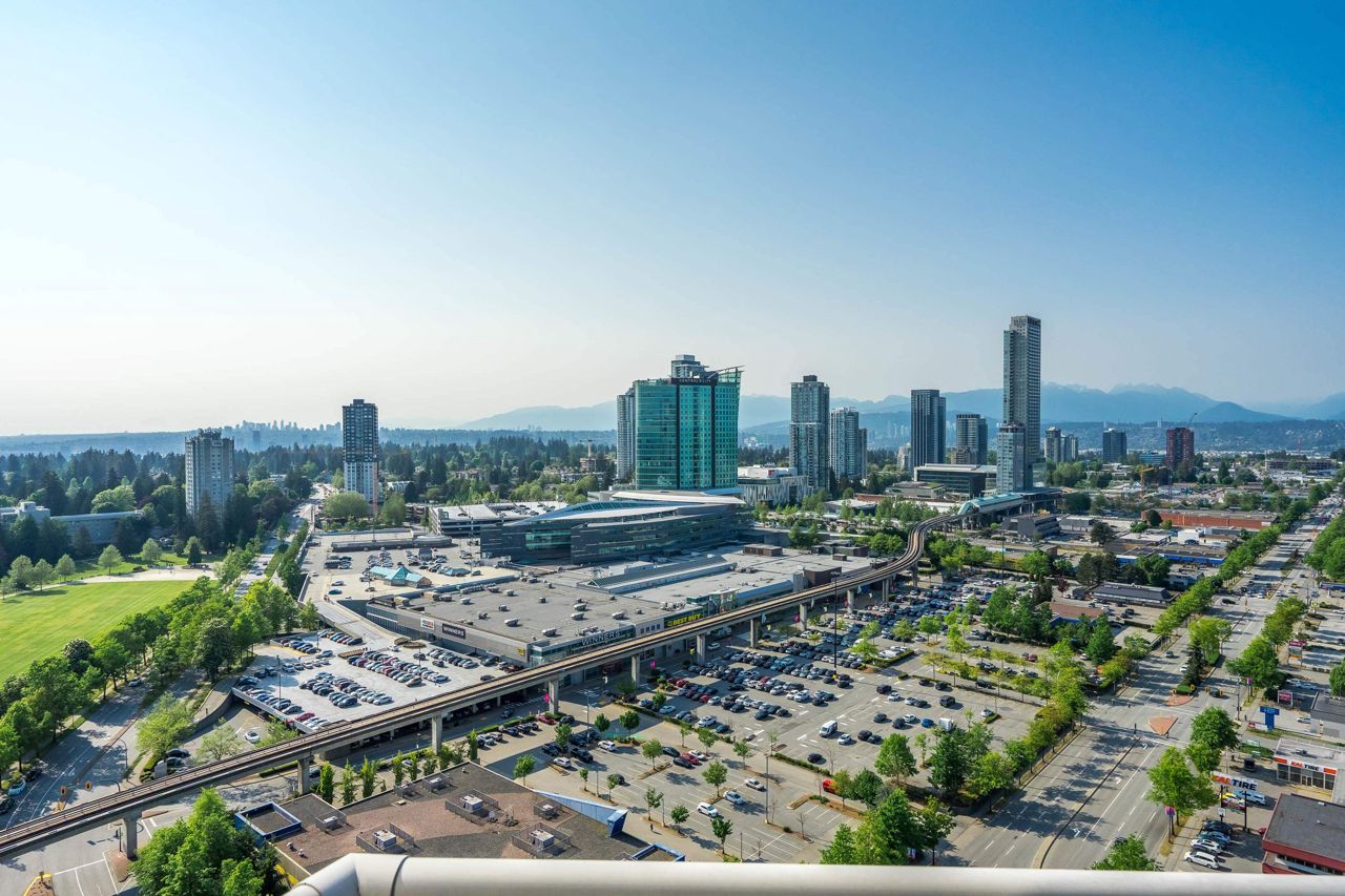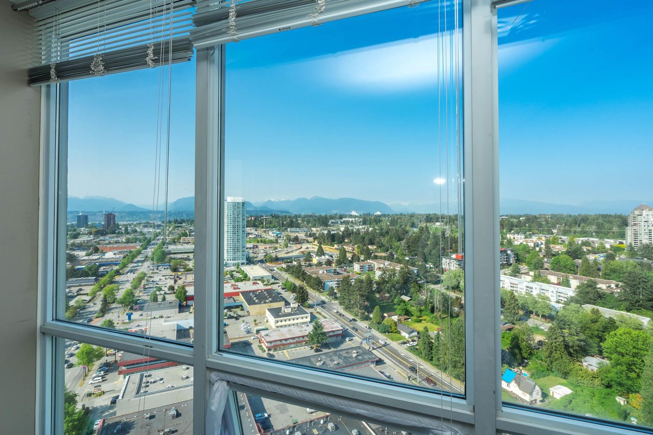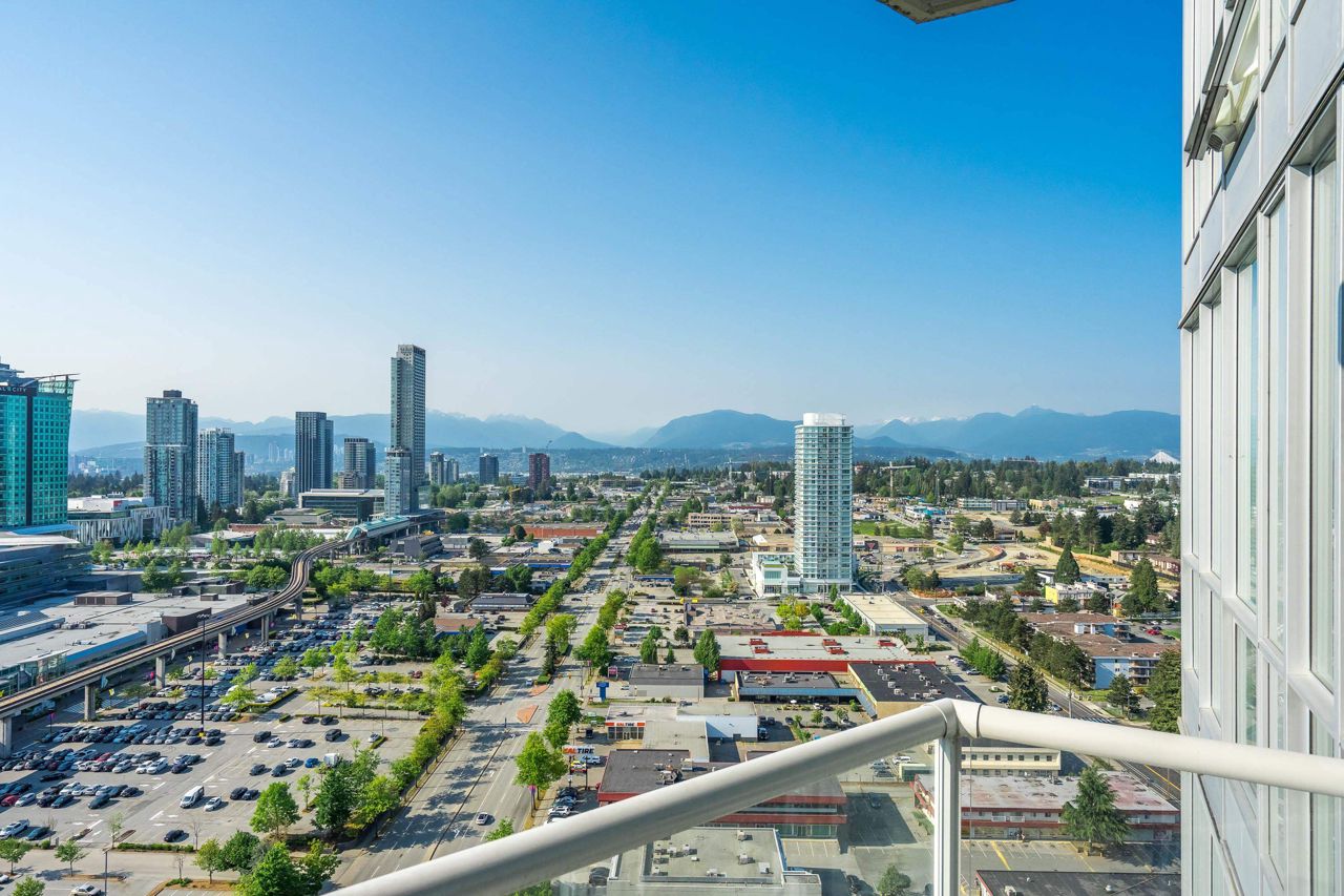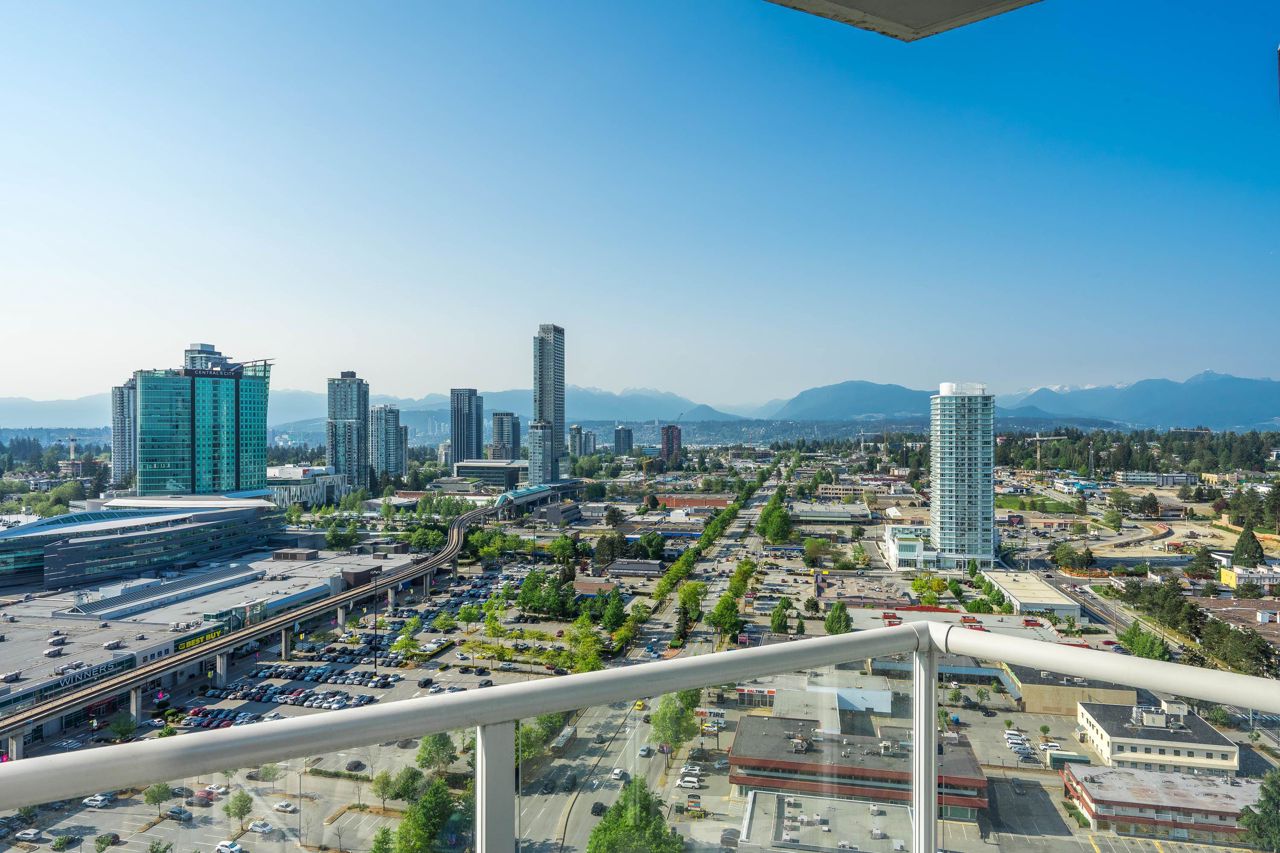 AMAZING VIEWS!! This spacious 28th floor corner condo faces North East with floor to ceiling windows in both bedrooms and the living room give loads of natural light. Enjoy the open kitchen concept with granite counters, an eating bar and a dining area makes it perfect for dinner parties or just hanging out with friends. Centrally located in Surrey Central you are walking distance to everything! Shopping, restaurants, entertainment and Skytrain. 1 underground parking. 2 Pets allowed (dogs and cats). Nice size balcony!