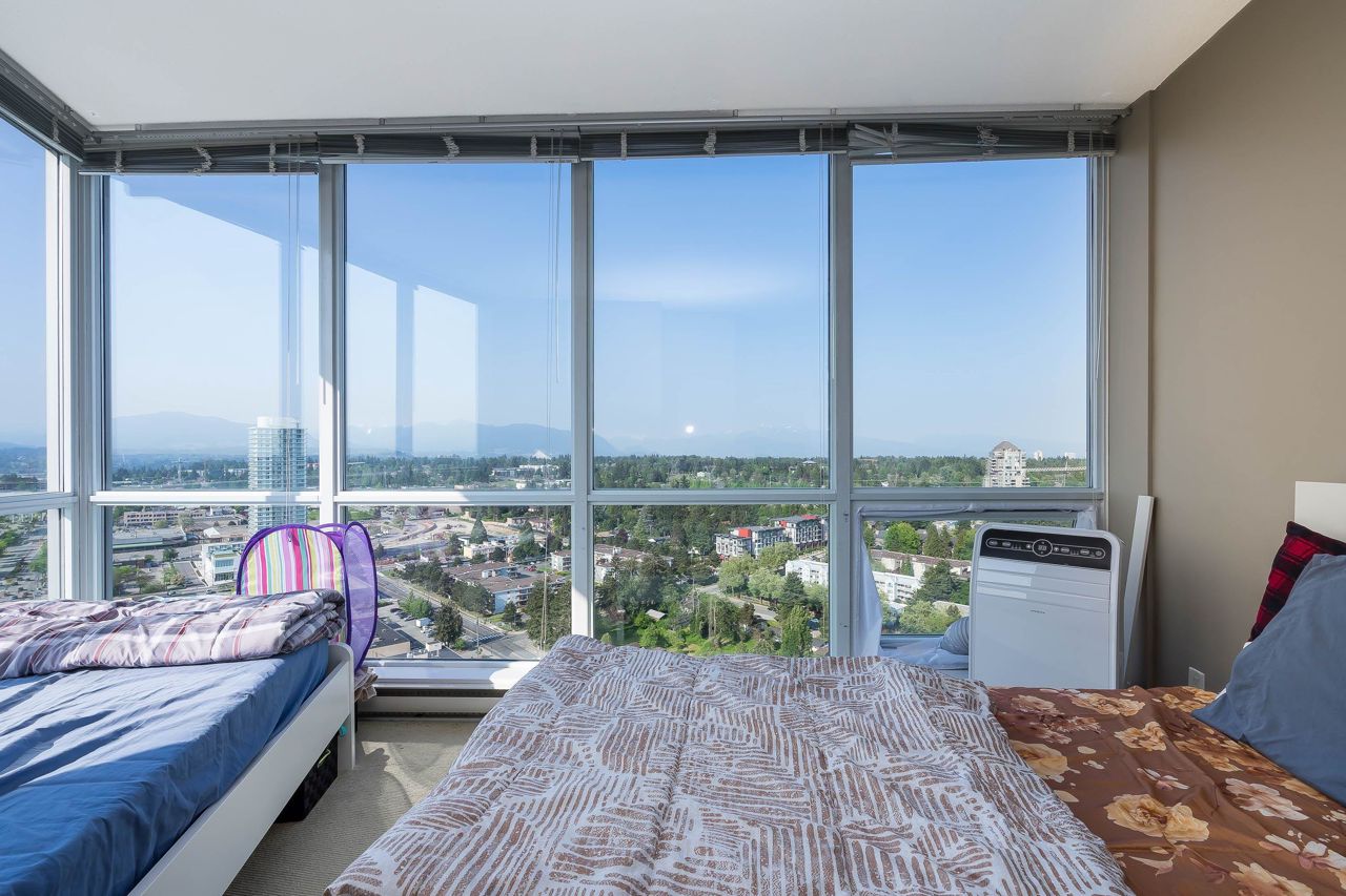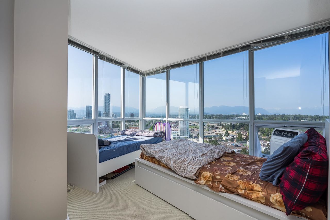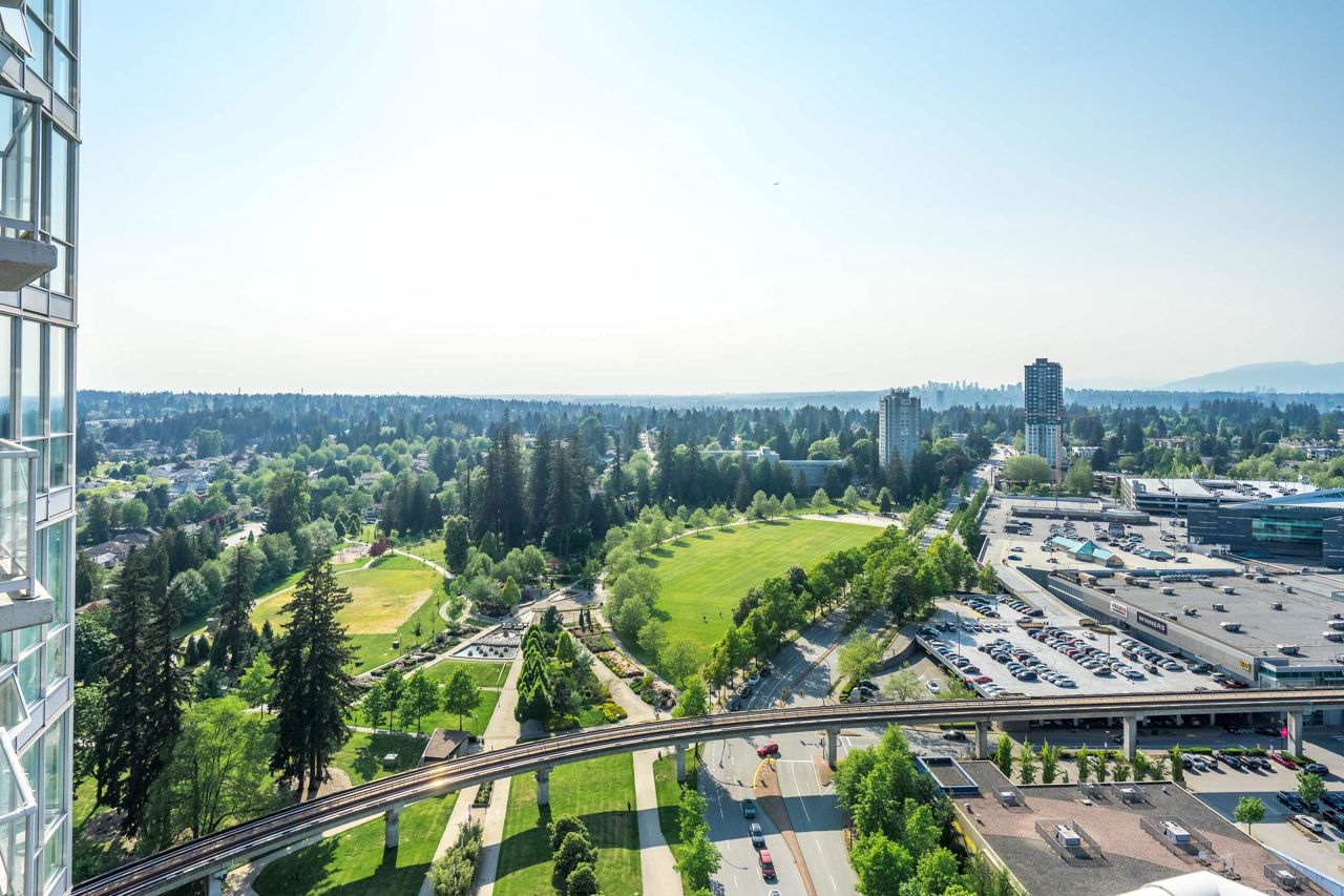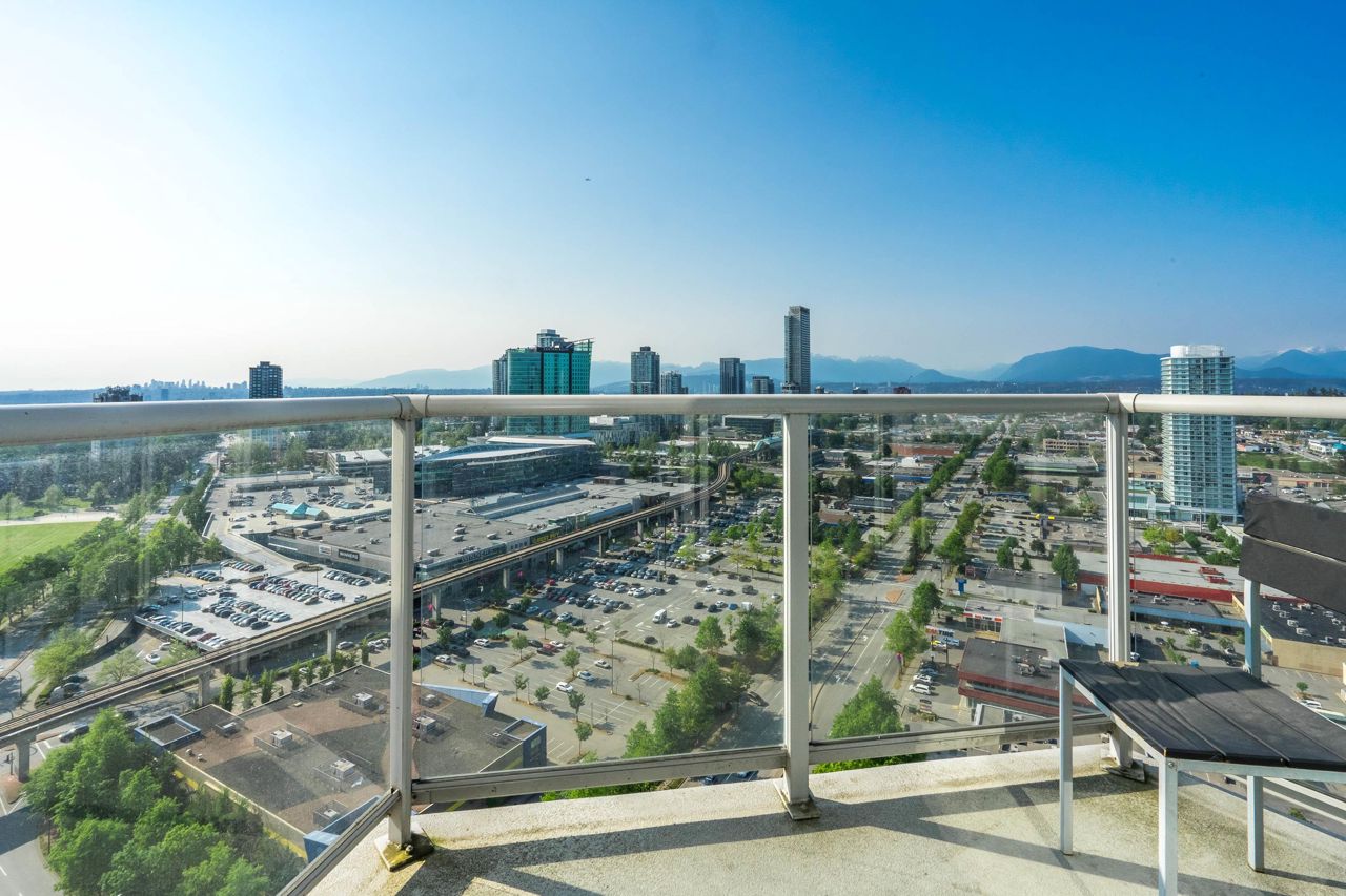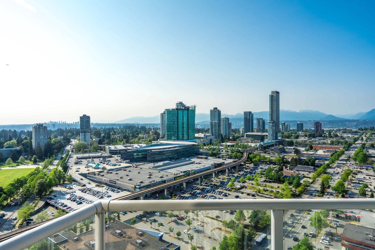 AMAZING VIEWS!! This spacious 28th floor corner condo faces North East with floor to ceiling windows in both bedrooms and the living room give loads of natural light. Enjoy the open kitchen concept with granite counters, an eating bar and a dining area makes it perfect for dinner parties or just hanging out with friends. Centrally located in Surrey Central you are walking distance to everything! Shopping, restaurants, entertainment and Skytrain. 1 underground parking. 2 Pets allowed (dogs and cats). Nice size balcony!