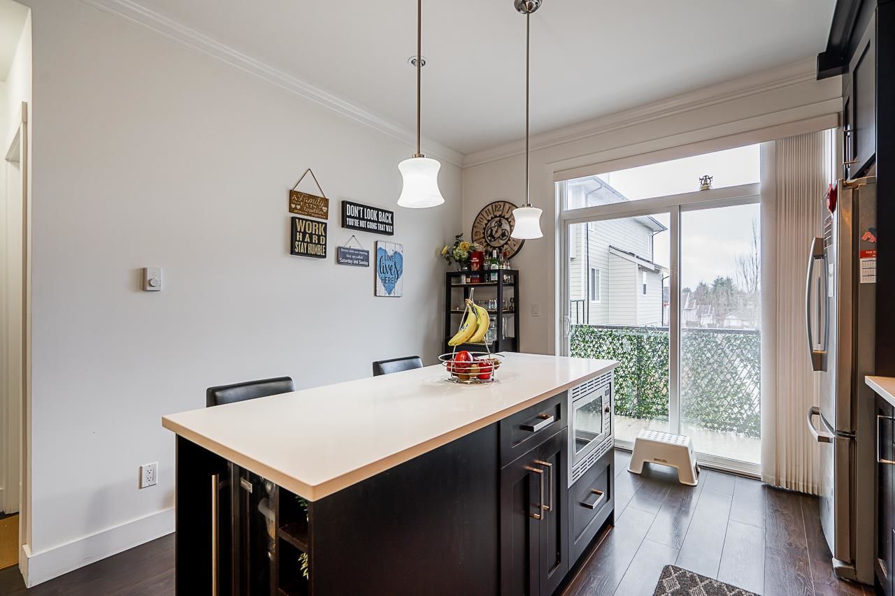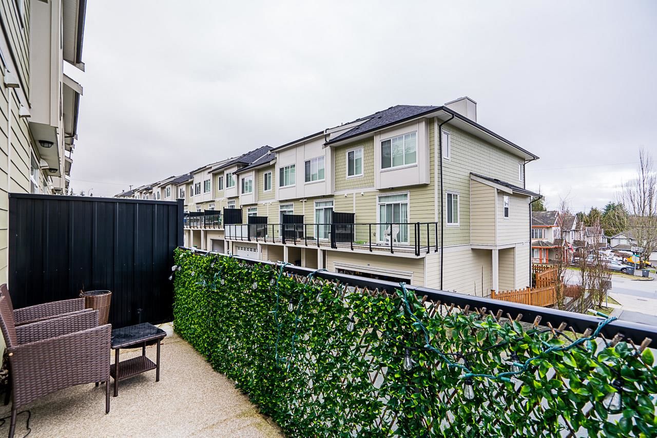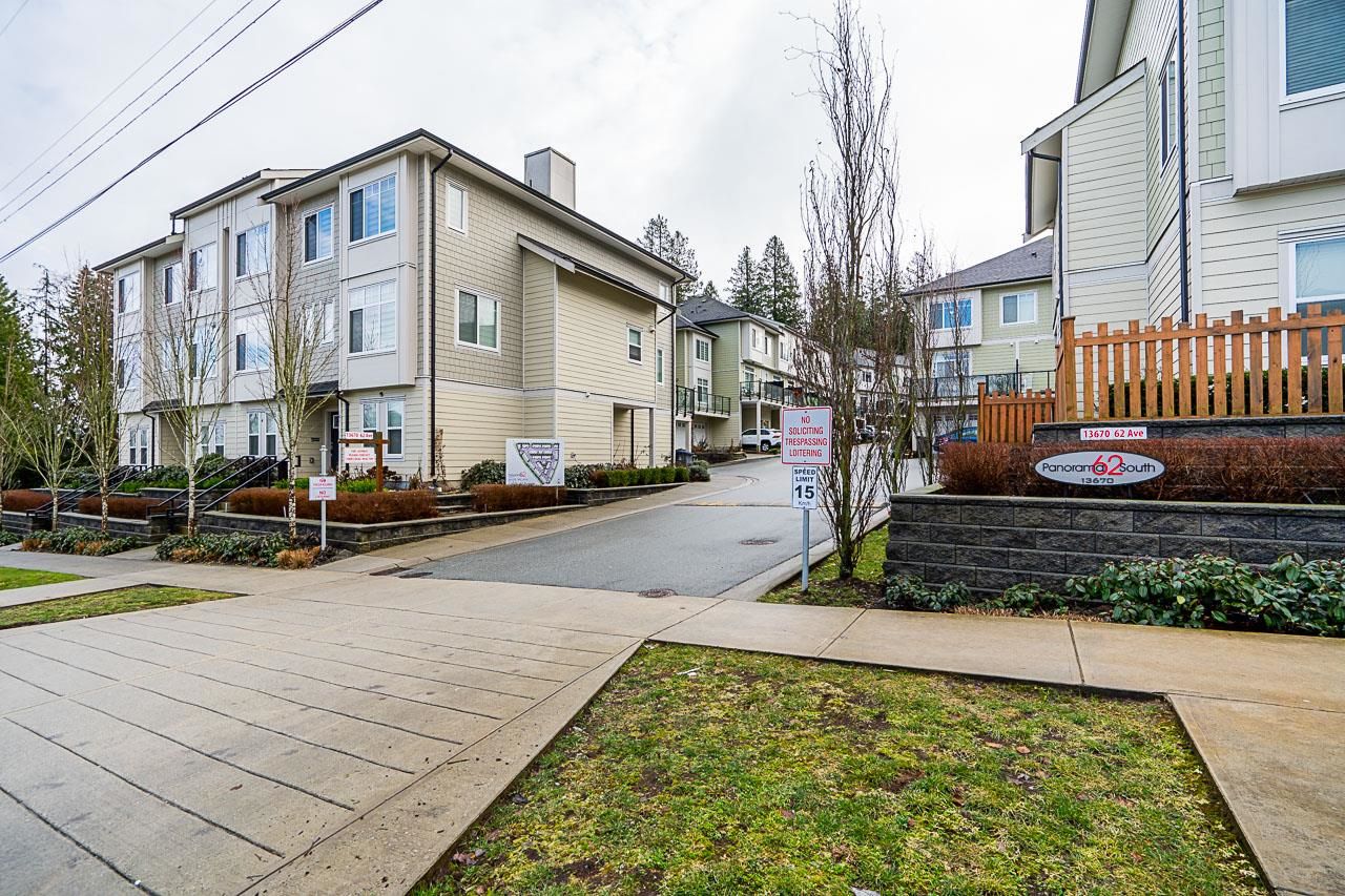 CORNER UNIT -DOUBLE SIDE BY SIDE GARAGE!! Welcome to Panorama 62! This is a beautiful corner unit townhouse offers 4 bedrooms & 4 bathrooms. Open concept kitchen with an island that offers a built-in beverage cooler, customary lighting, granite counter tops, stainless steel appliances. A spacious living room and dining room create an inviting atmosphere. The unit has mountain views from Kitchen and Primary Bedroom. Basement offers full Bath and Recroom/Bedroom. Steps away from King George Blvd & public transit. Near all levels of schools, Parks, Grocery stores, and Restaurants.