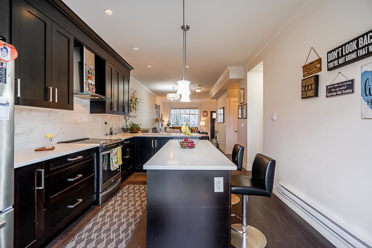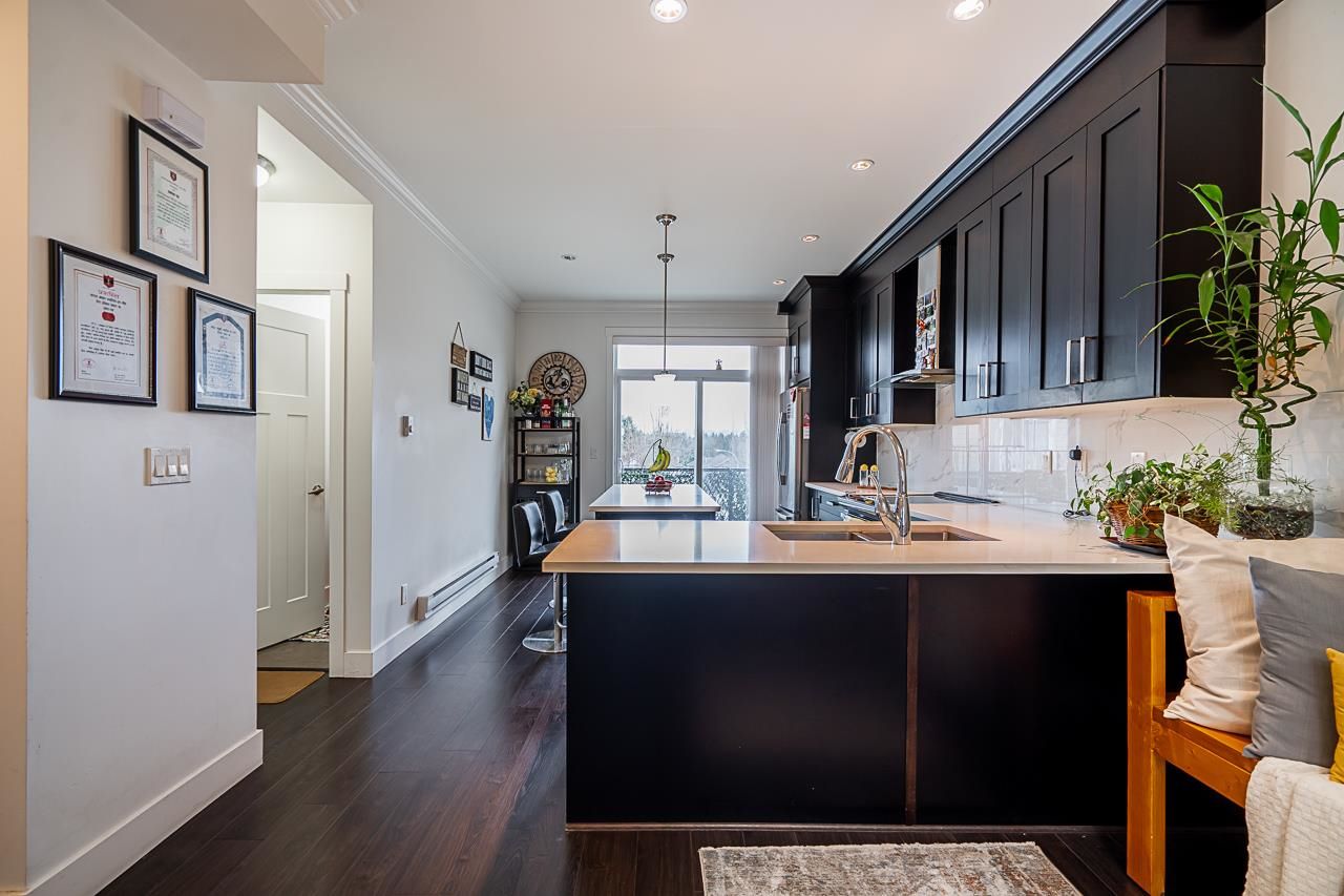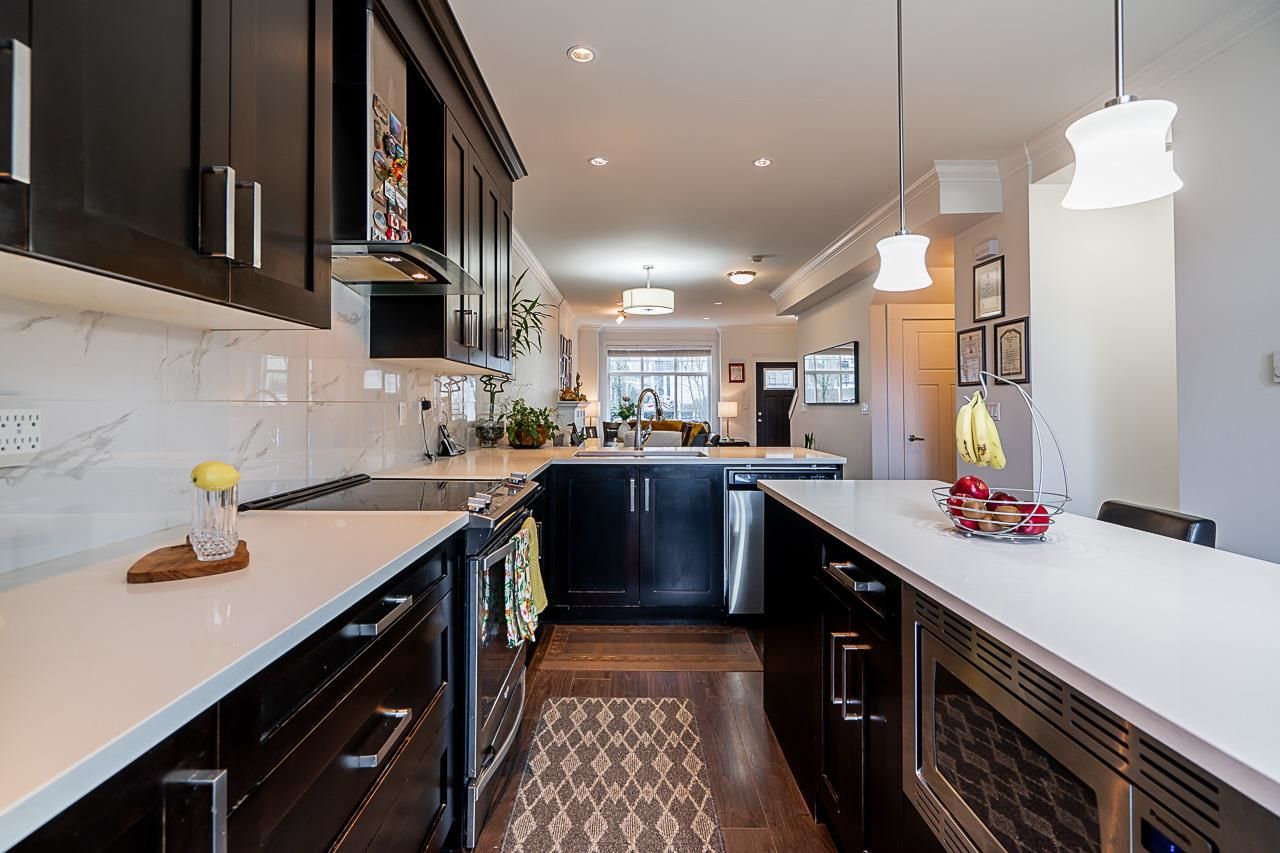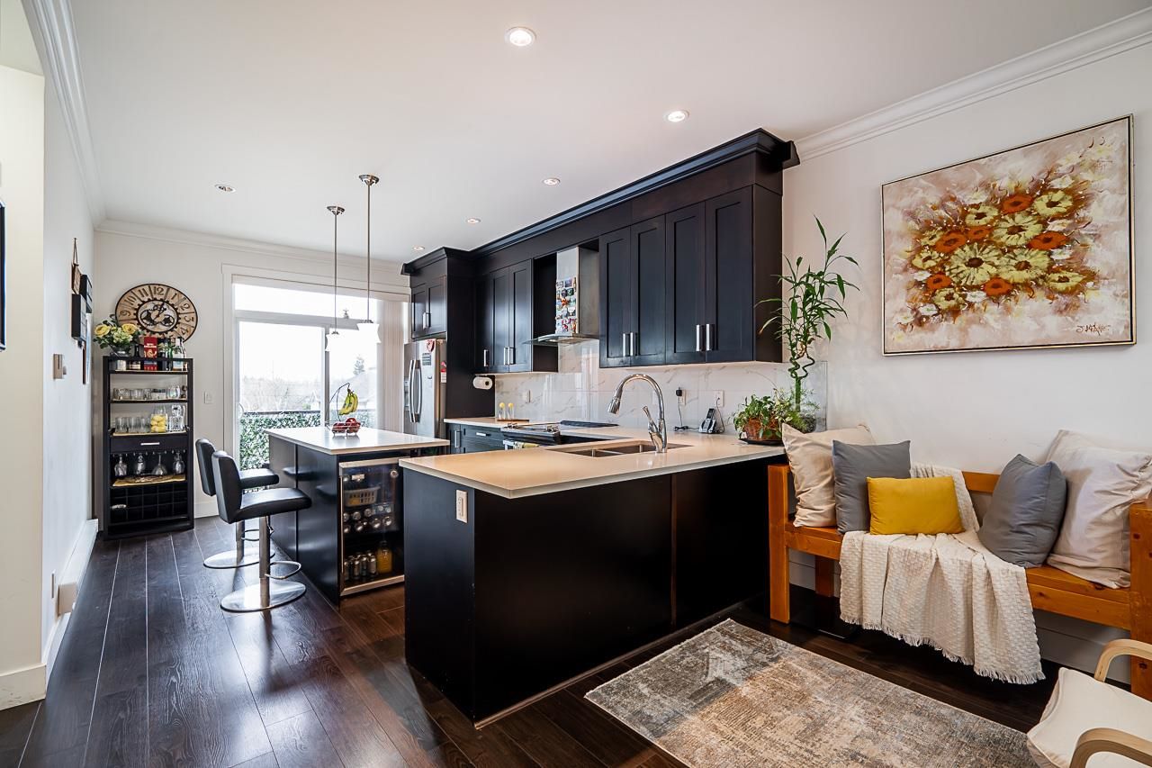 CORNER UNIT -DOUBLE SIDE BY SIDE GARAGE!! Welcome to Panorama 62! This is a beautiful corner unit townhouse offers 4 bedrooms & 4 bathrooms. Open concept kitchen with an island that offers a built-in beverage cooler, customary lighting, granite counter tops, stainless steel appliances. A spacious living room and dining room create an inviting atmosphere. The unit has mountain views from Kitchen and Primary Bedroom. Basement offers full Bath and Recroom/Bedroom. Steps away from King George Blvd & public transit. Near all levels of schools, Parks, Grocery stores, and Restaurants.