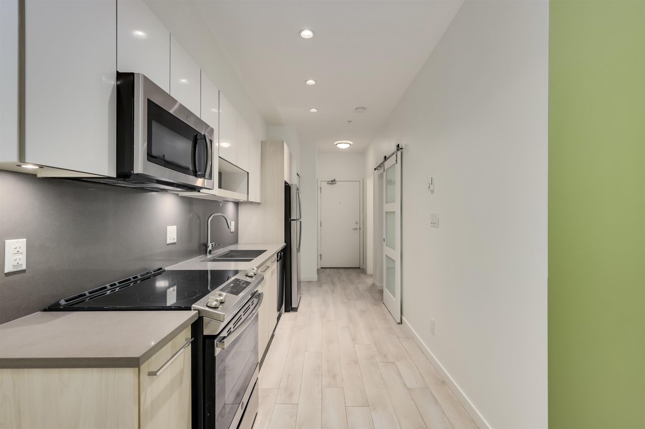 Attention first-time buyers and savvy investors!Discover a perfect opportunity at VENUE,located in the heart of Whalley/Central Surrey.This modern 1 bed condo is a hidden on rear,quiet & raised side of building with a walk-out garden patio overlooking lush greenspace.9-foot ceilings,sleek quartz countertops,& stainless-steel appliances.In-suite laundry,pets & rentals friendly,1 parking/storage. Amenities:indoor lounge,rooftop deck,outdoor kitchen/BBQ area,courtyard,full gym, & garden.Gateway Skytrain station,SFU campus,Centre City Mall,Recreation Centre all within walking distance.Neighbourhood is in the midst of becoming a planned city core,there is no better time to invest in this up &coming metropolitan area.Showings STRICTLY by appointment with your realtor.