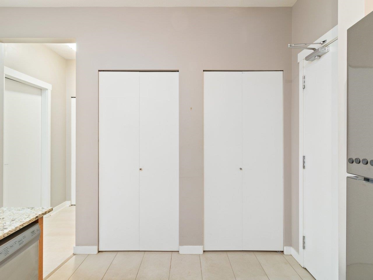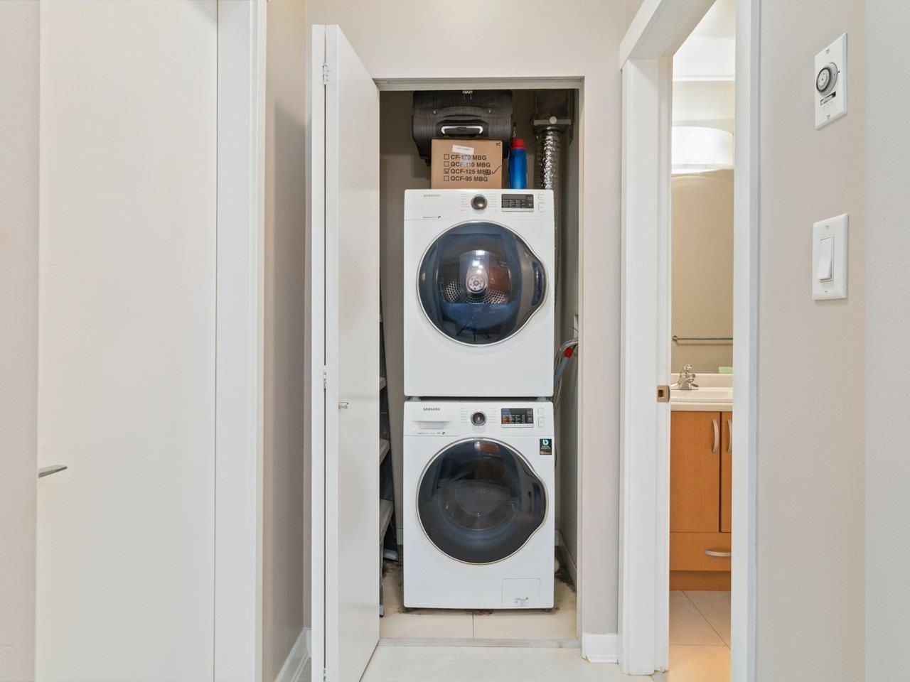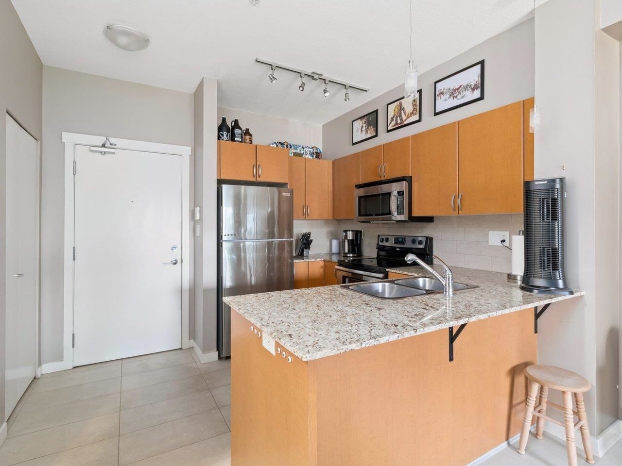 The Quattro 2 in North Surrey - 565 sq ft cool North facing 1 bed and 1 bath apartment home. Very bright and spacious! Features laminate flooring, stainless stee lappliances, open concept kitchen, in-suite laundry and a large covered balcony with garden views. Comes with 1 parking and 1 locker. Amenities in this lovely building include an exercise centre, a children's playground and a quiet court yard. Centrally located close to Skytrain, recreation, parks, schools and shopping. Rentals allowed and a great choice rental home for the investor or an affordable choice for first time buyers. 1 cat or 1 dog allowed, no size restrictions.